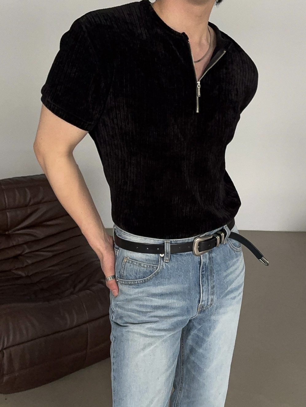 -심플한 포인트의 지퍼 헨리넥 디자인