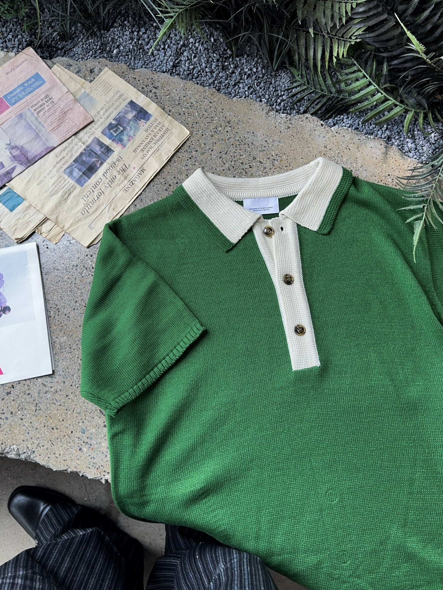 -부드럽고 촘촘한 짜임새로 제작된 반팔 니트