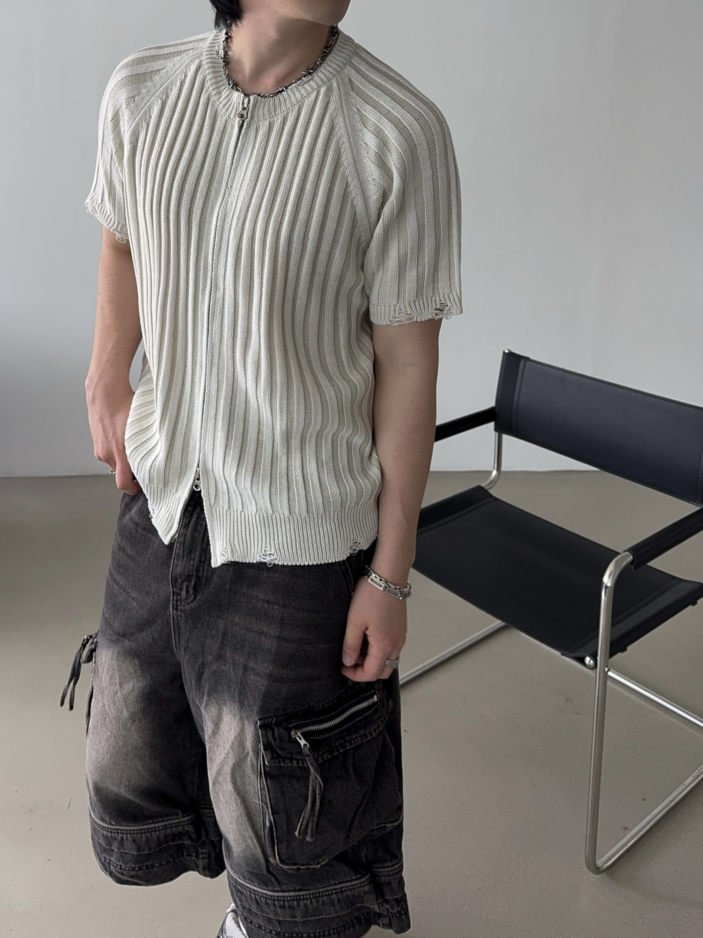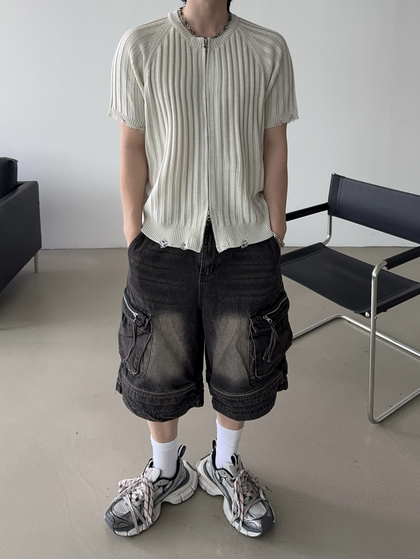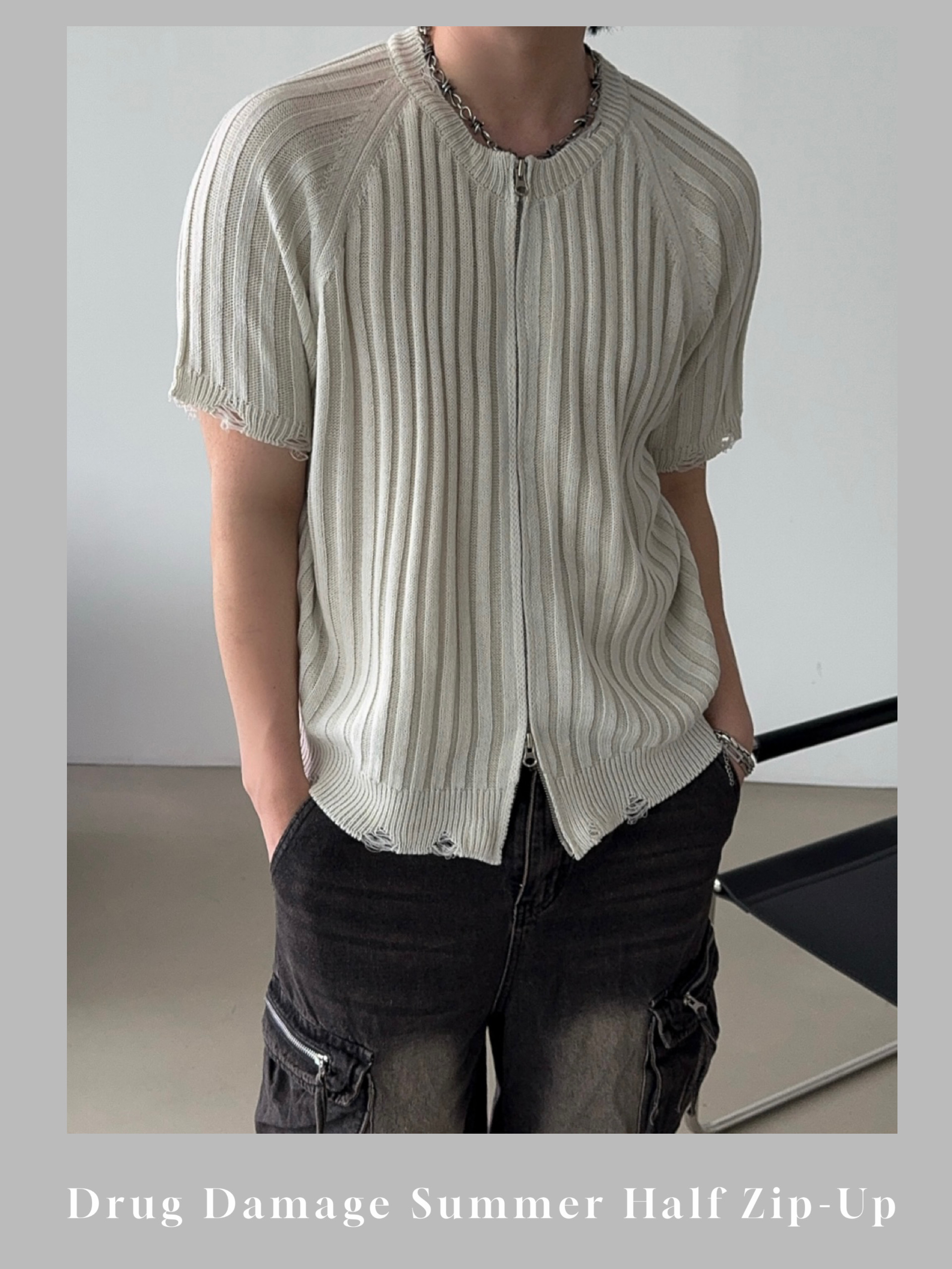 -반응 좋았던 콘트러스트 데미지 집업 하프 버전 집업