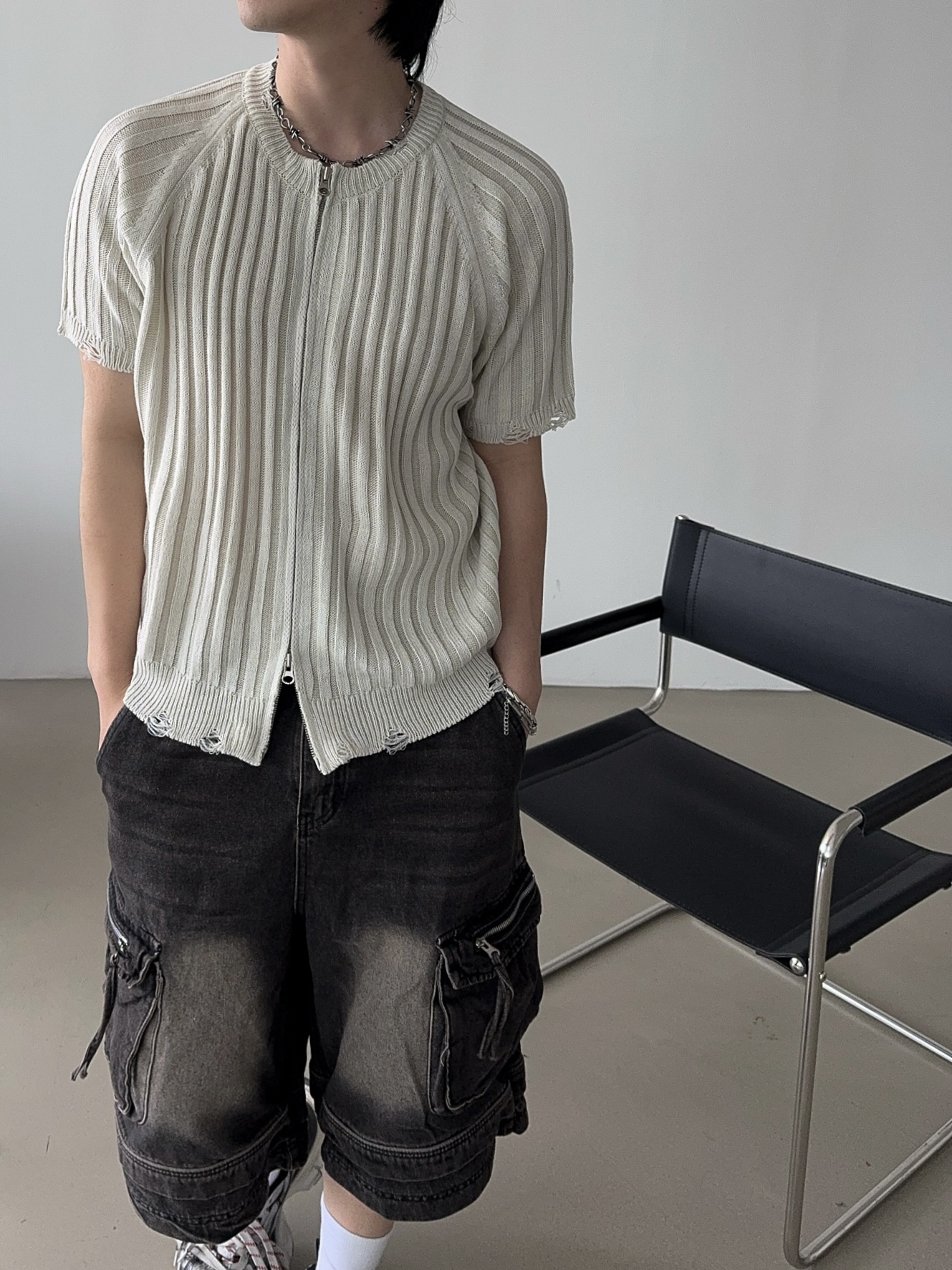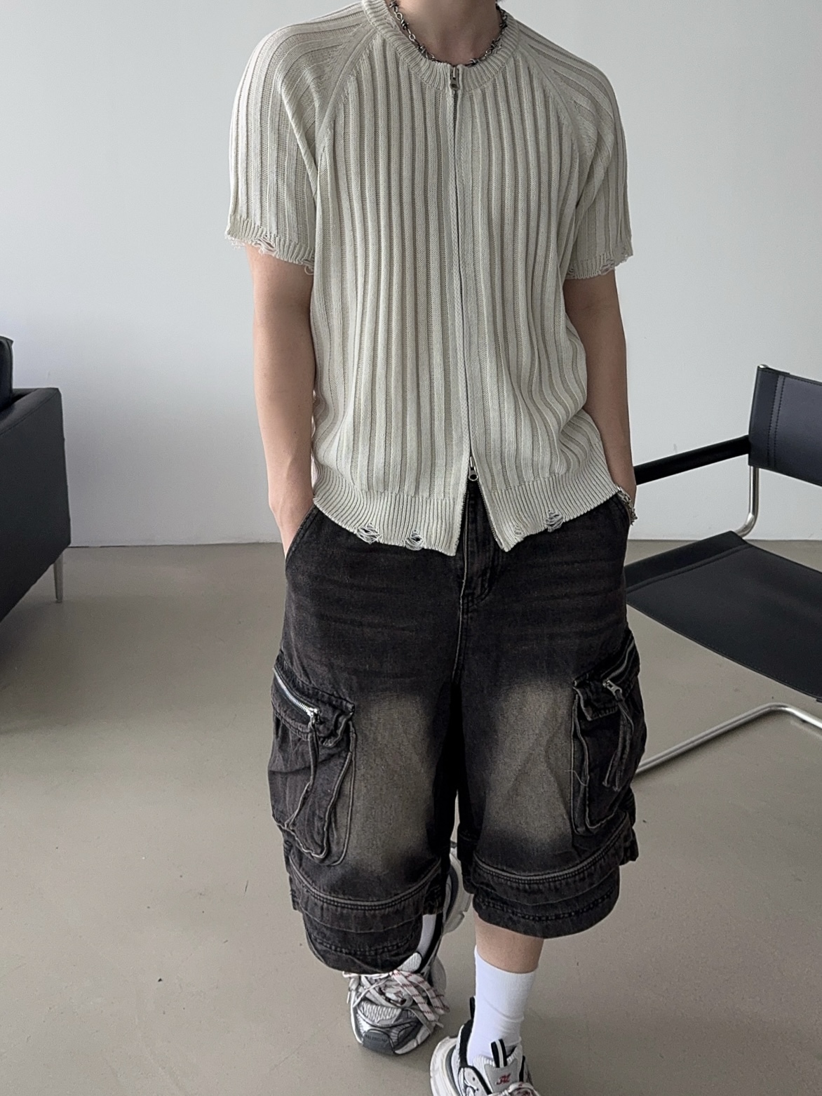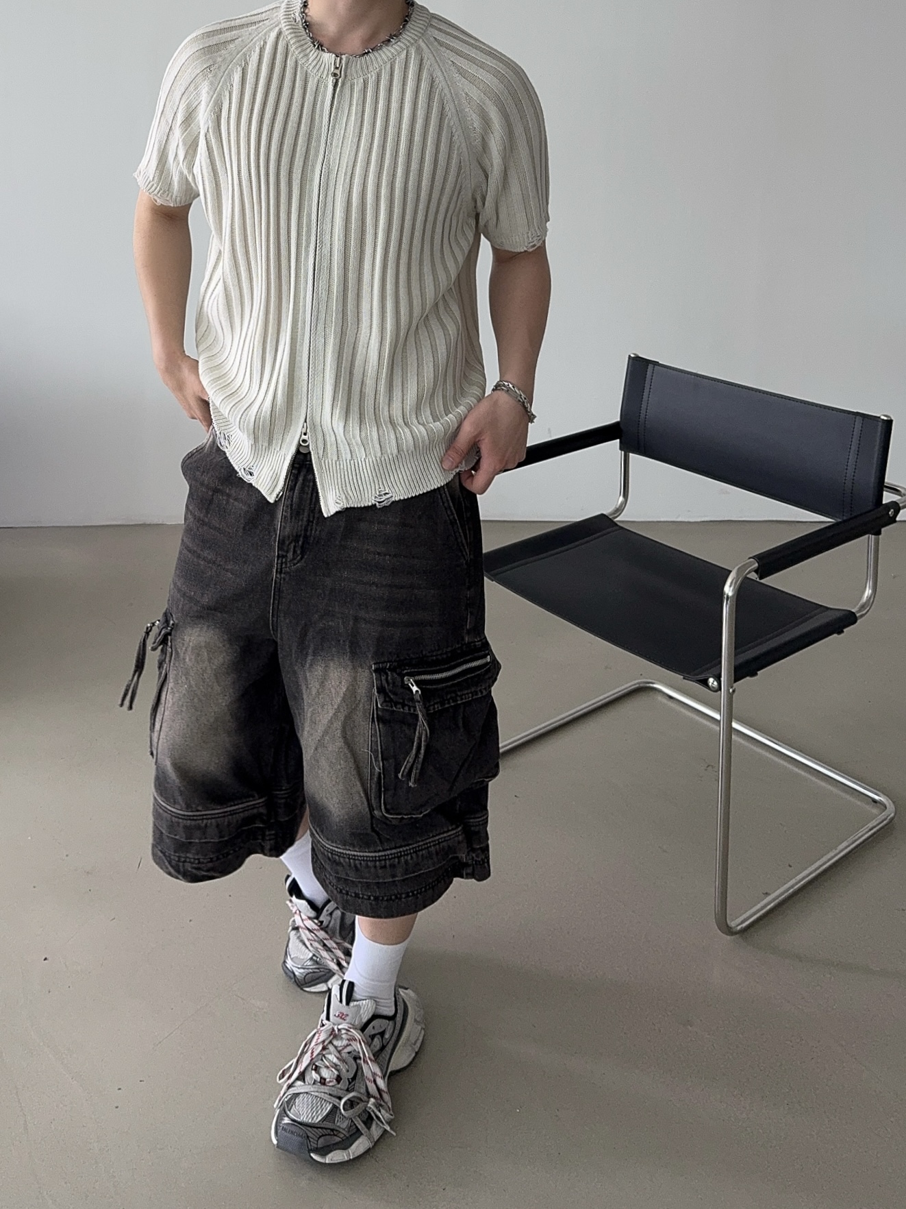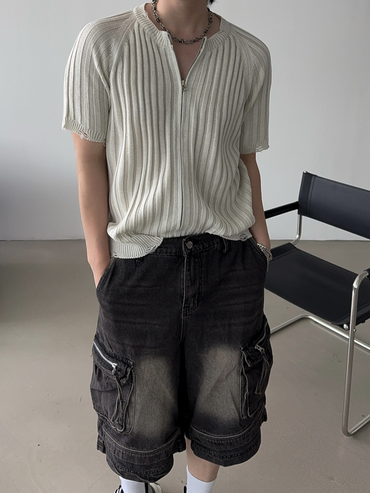 -반응 좋았던 콘트러스트 데미지 집업 하프 버전 집업
