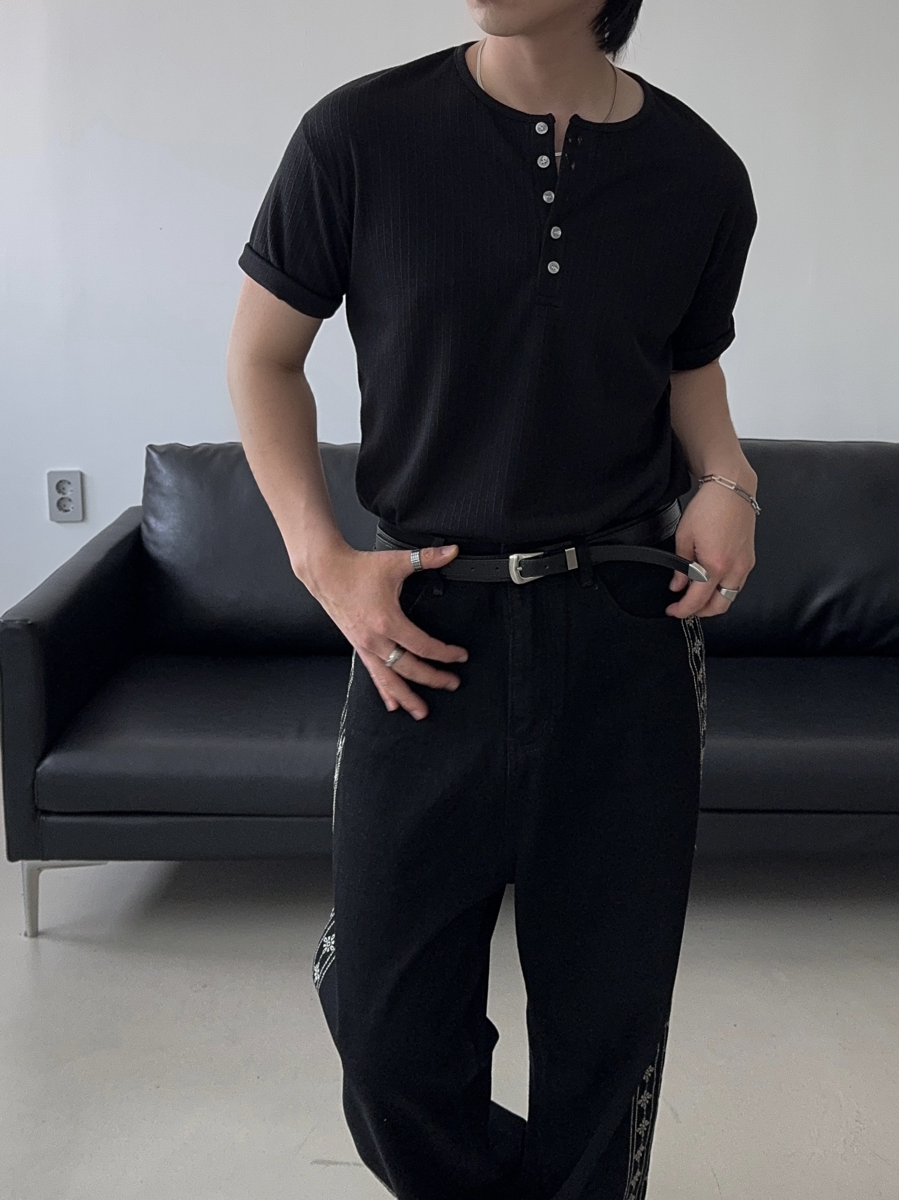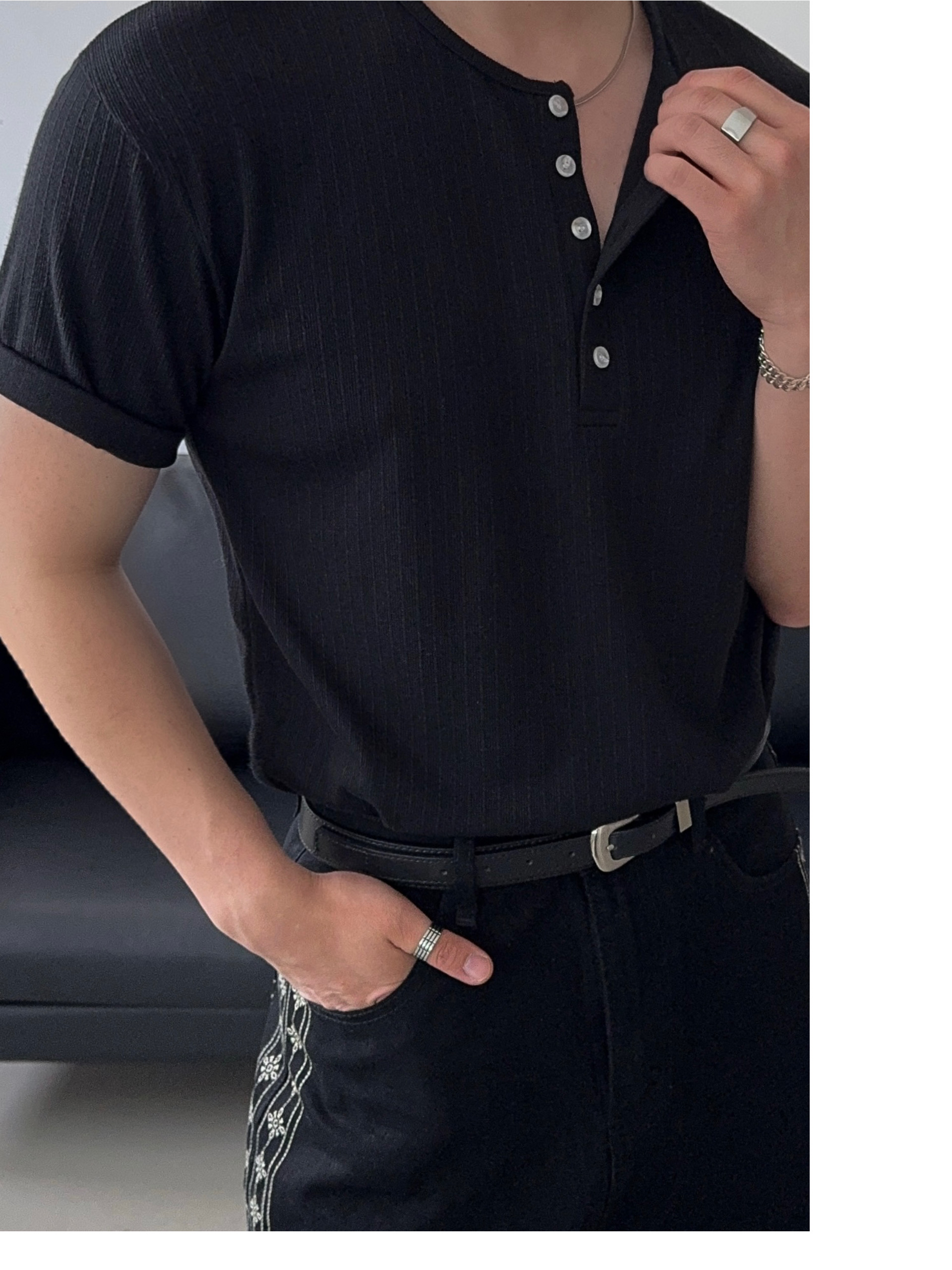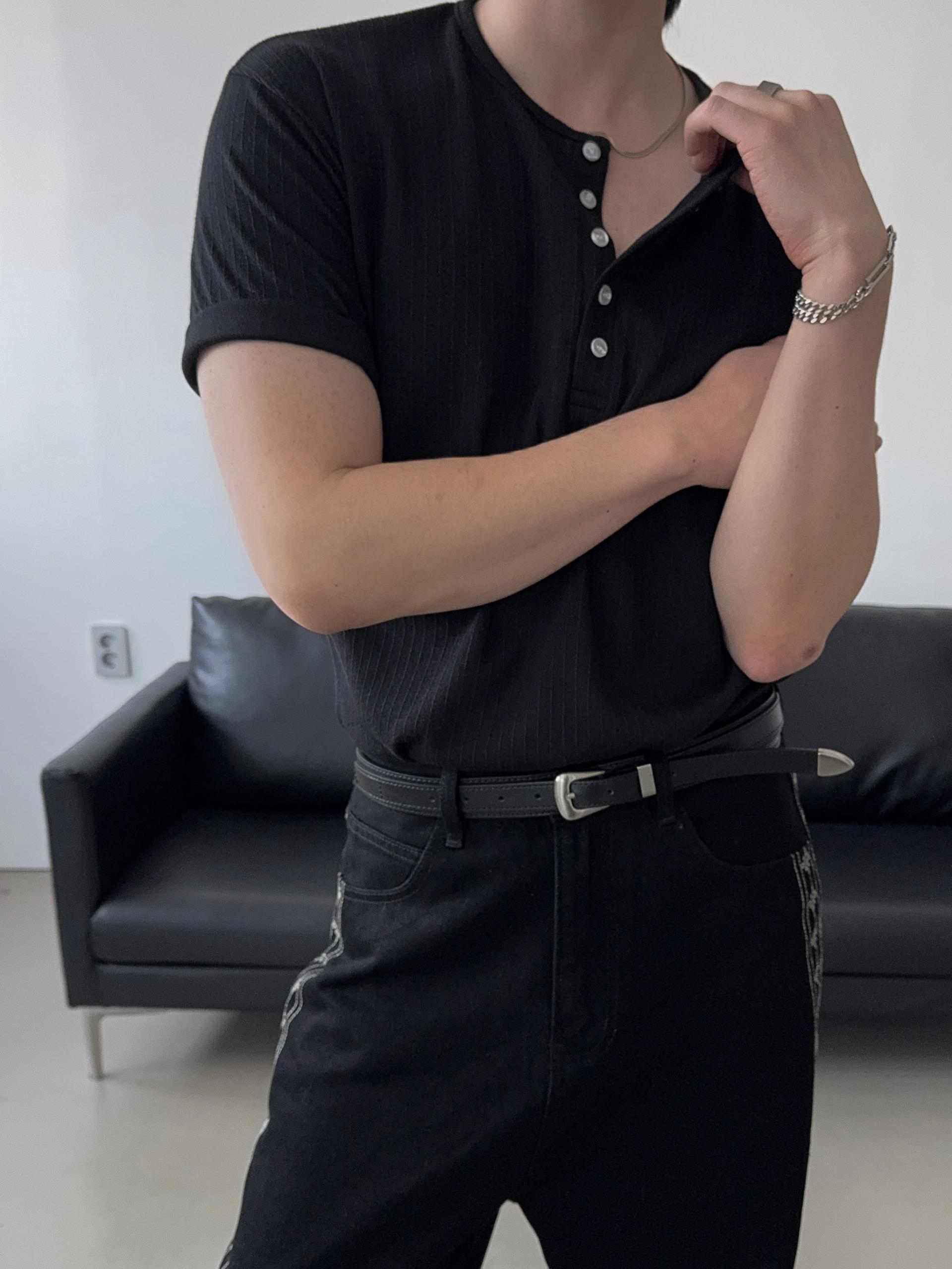 -딥한 헨리넥으로 멋스러운 디자인
