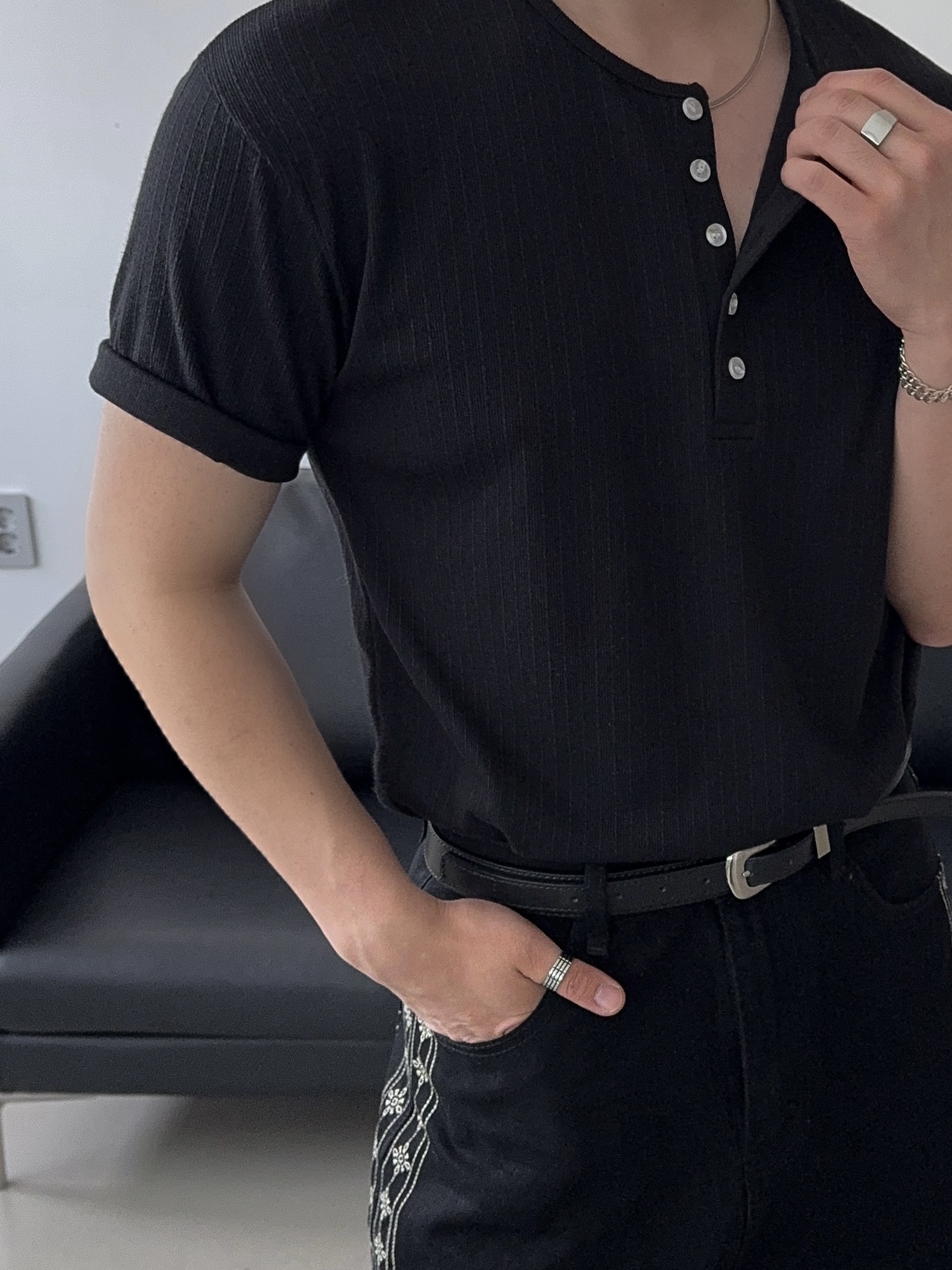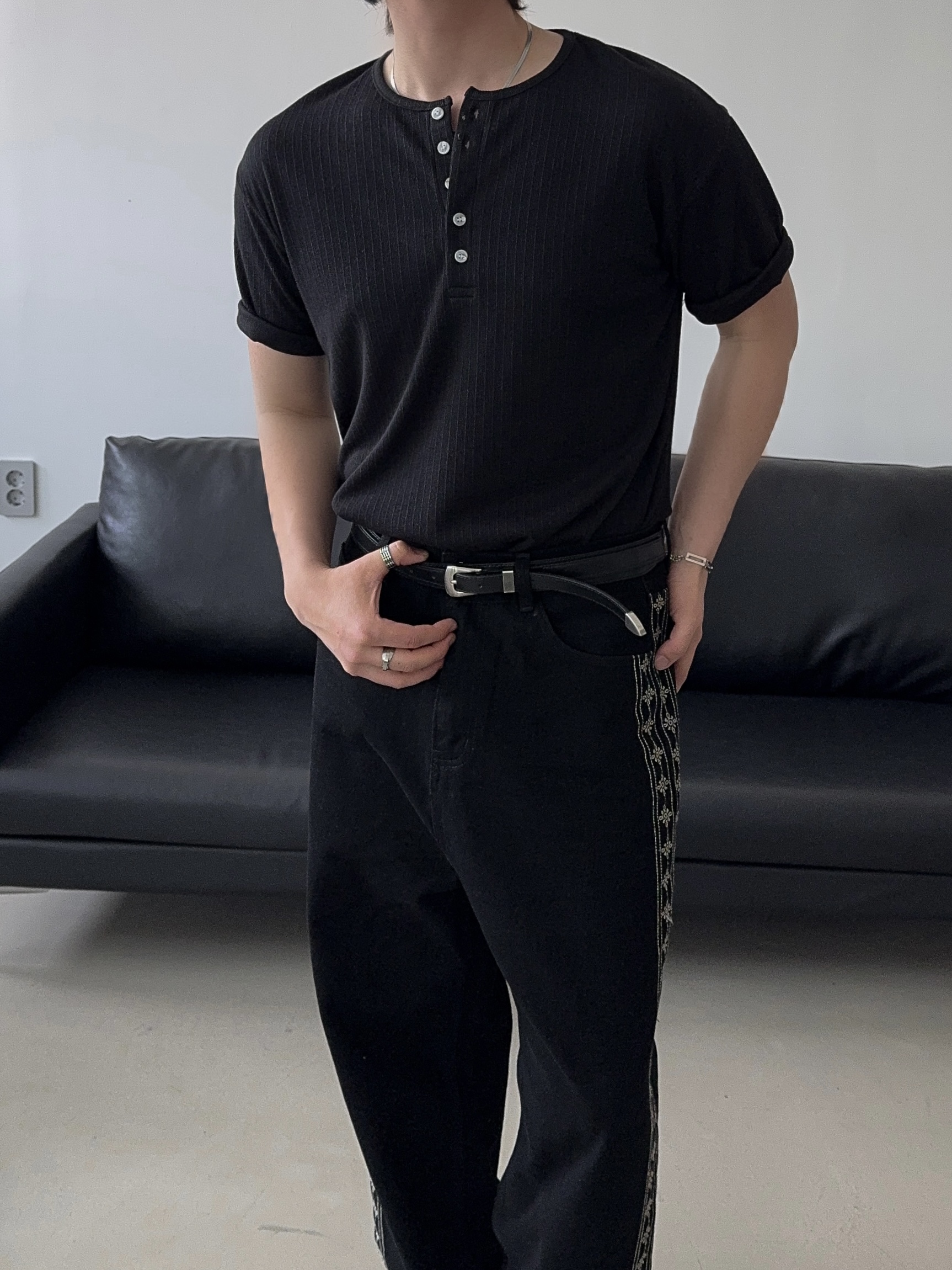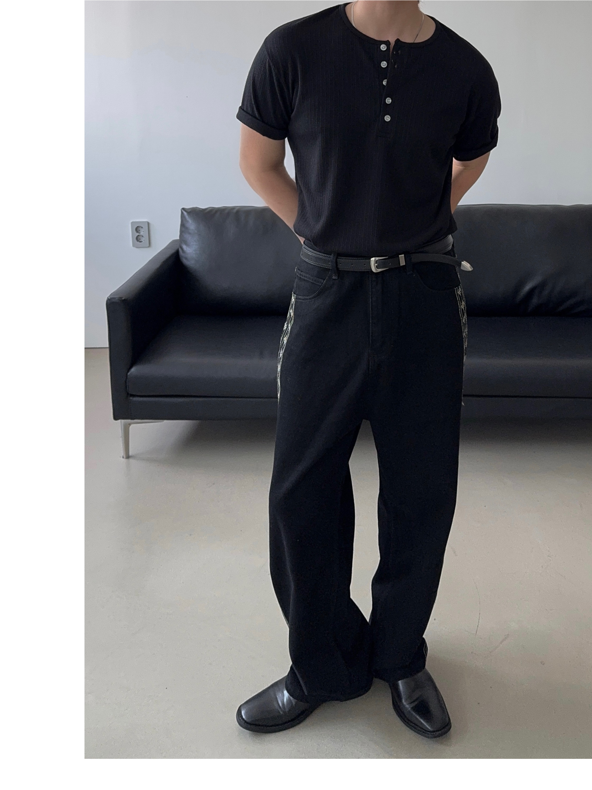 -딥한 헨리넥으로 멋스러운 디자인