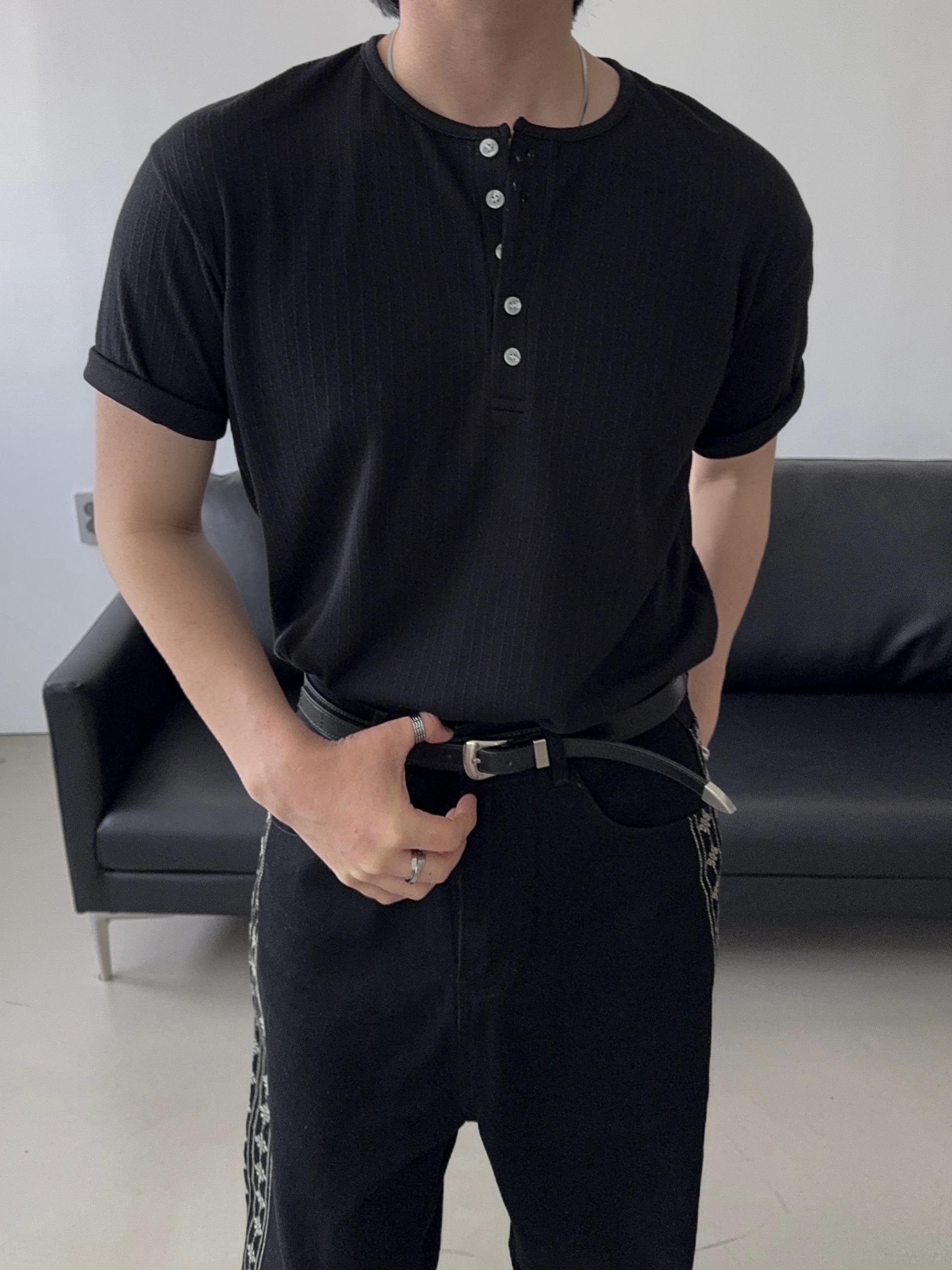 -구김이 잘 생기지 않은 소프트한 헨리넥 티셔츠