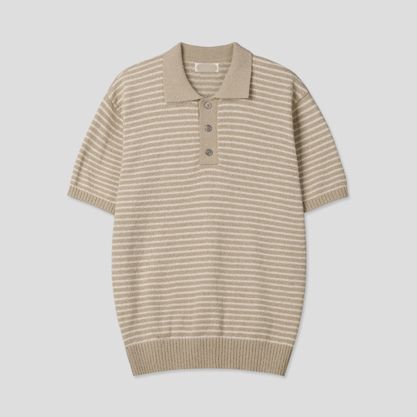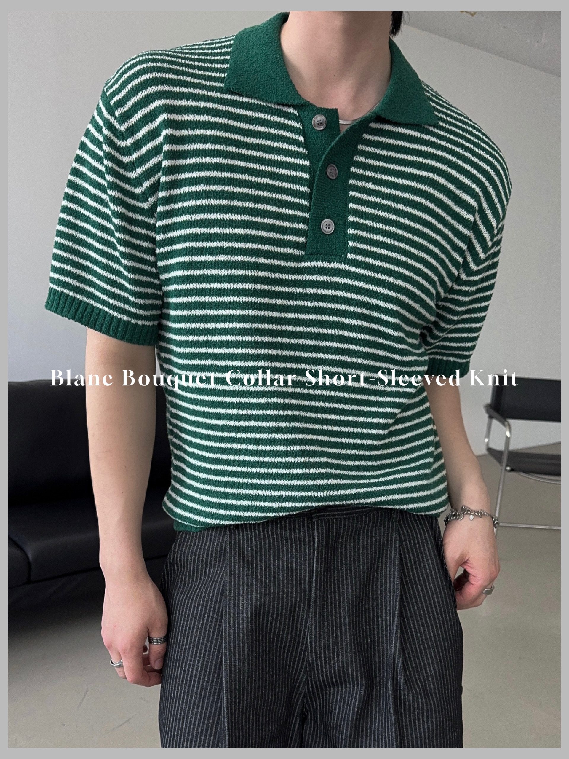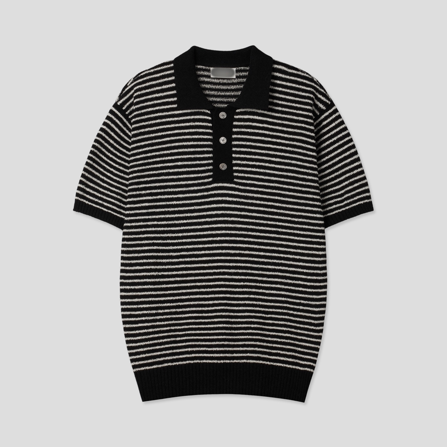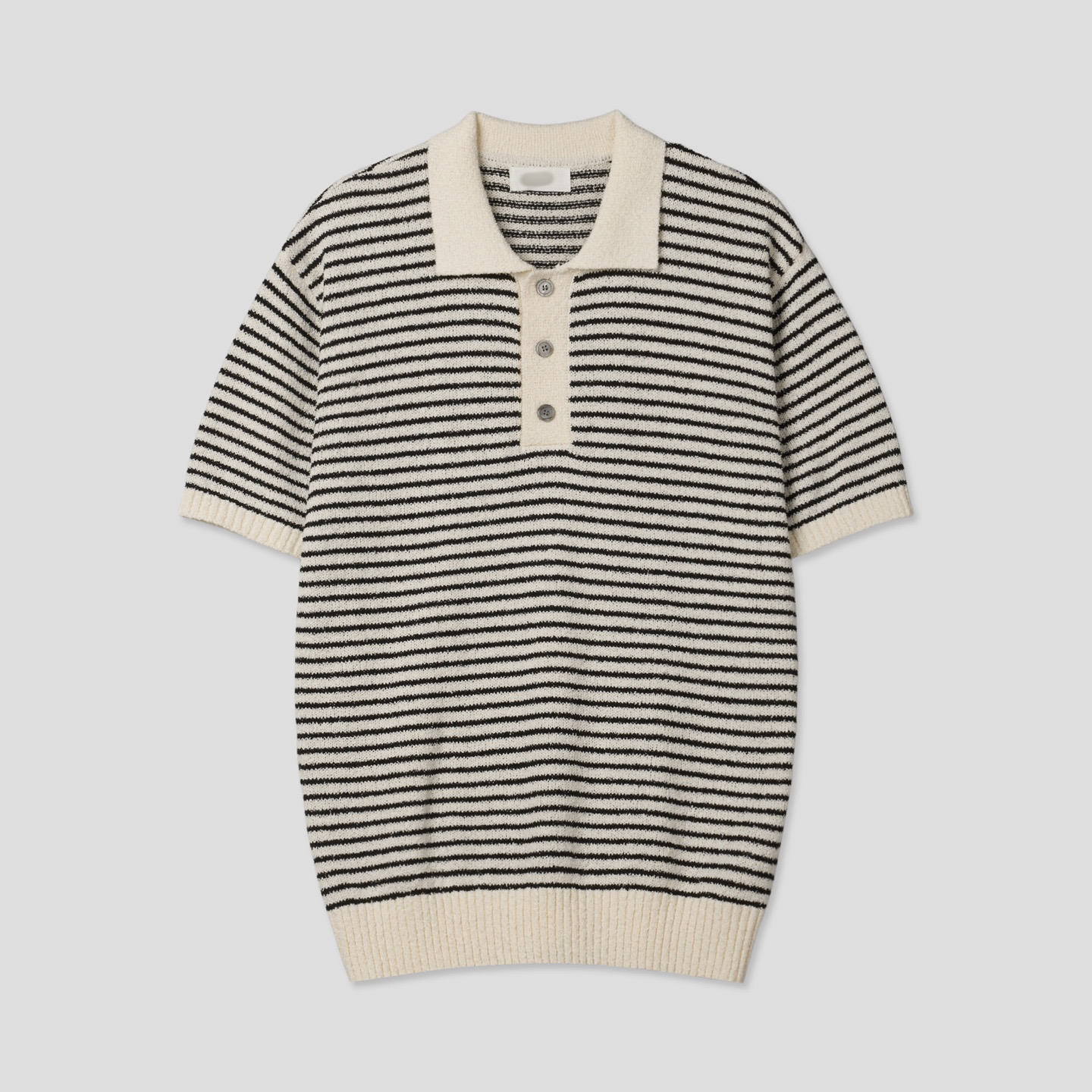 -프리미엄 부클 원사로 제작된 반팔 카라 니트