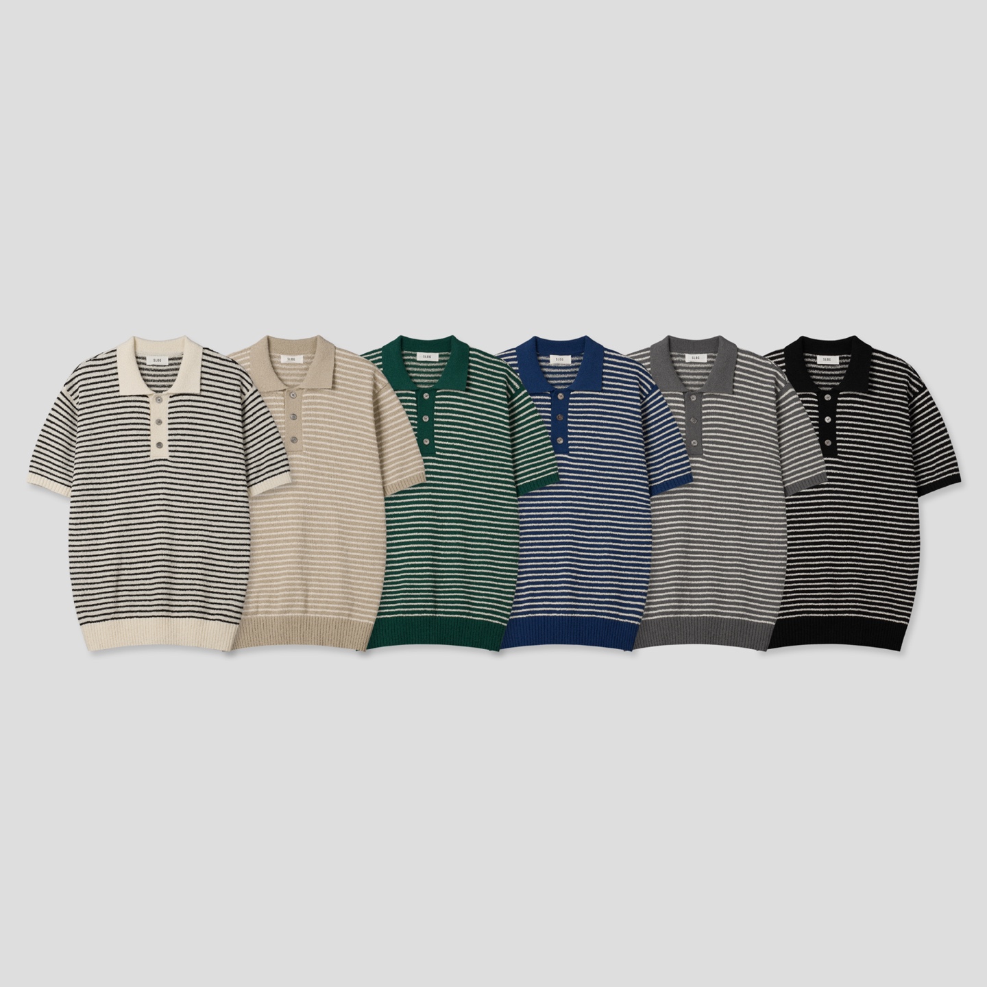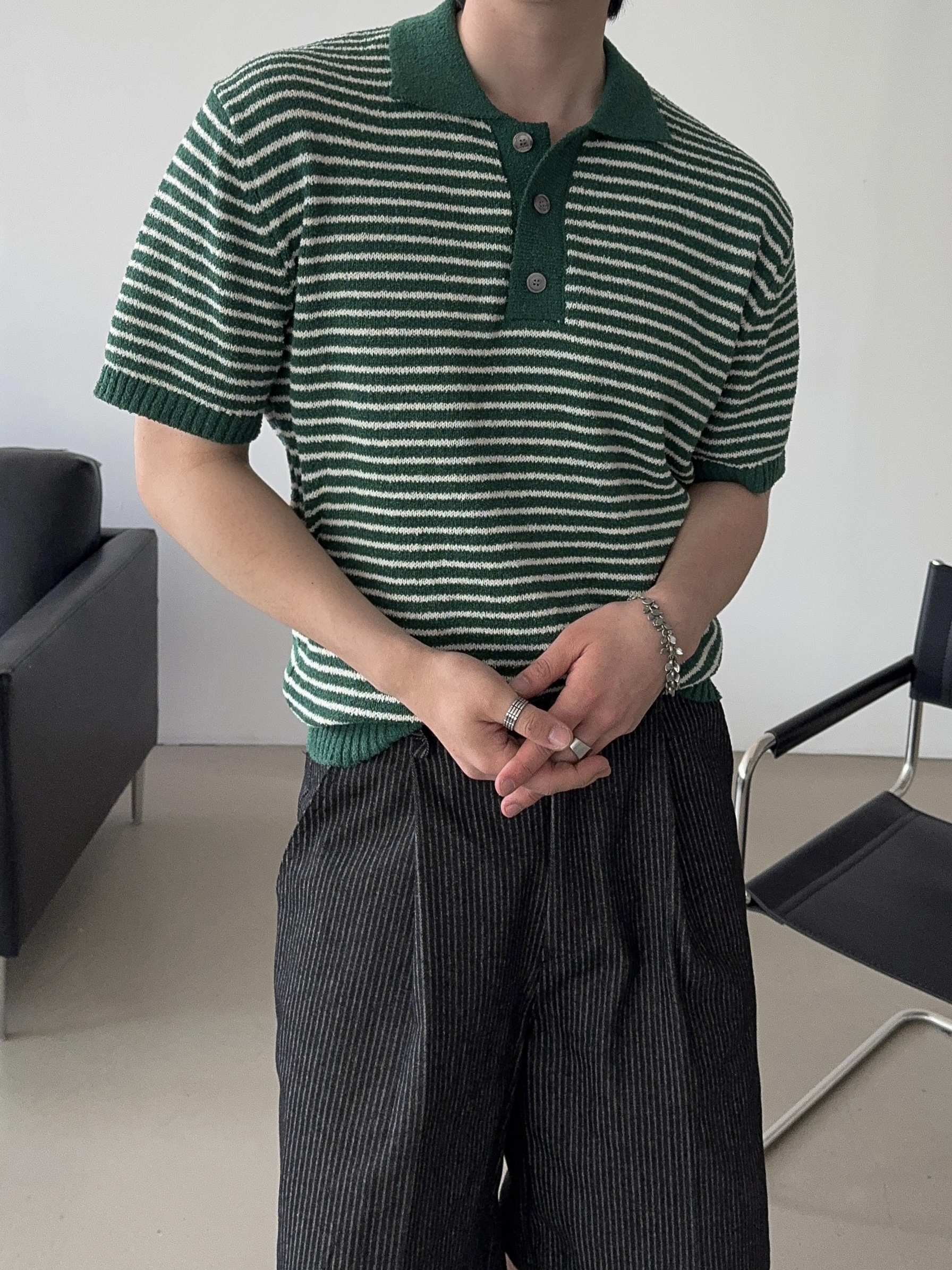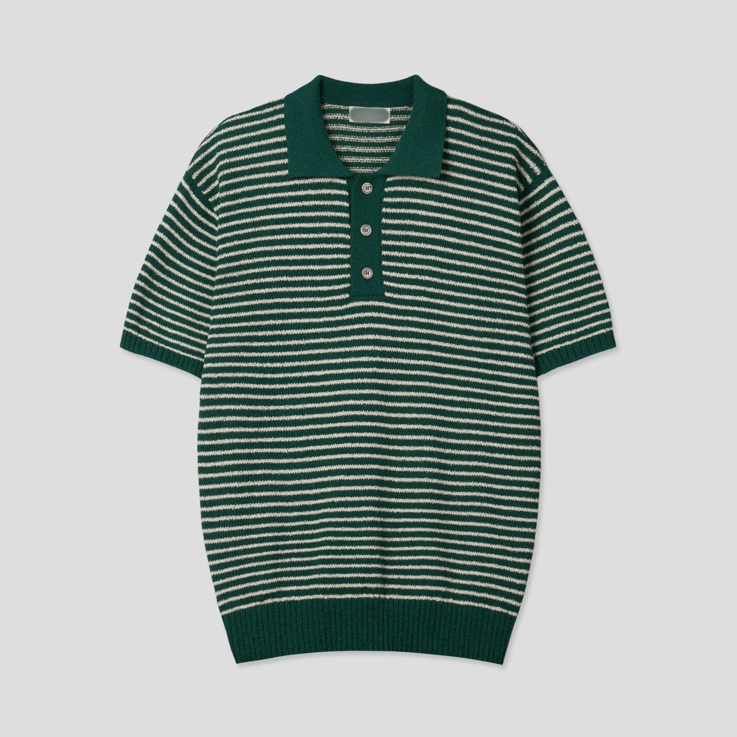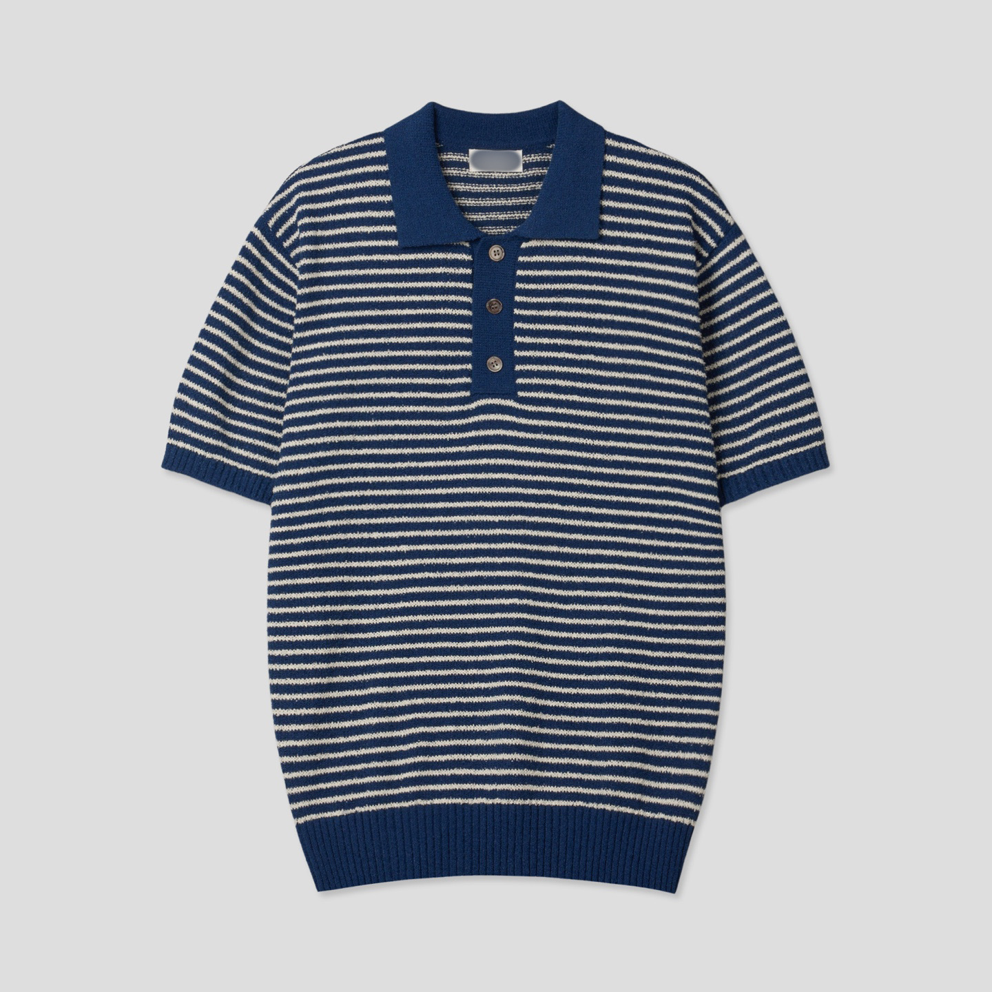 -프리미엄 부클 원사로 제작된 반팔 카라 니트