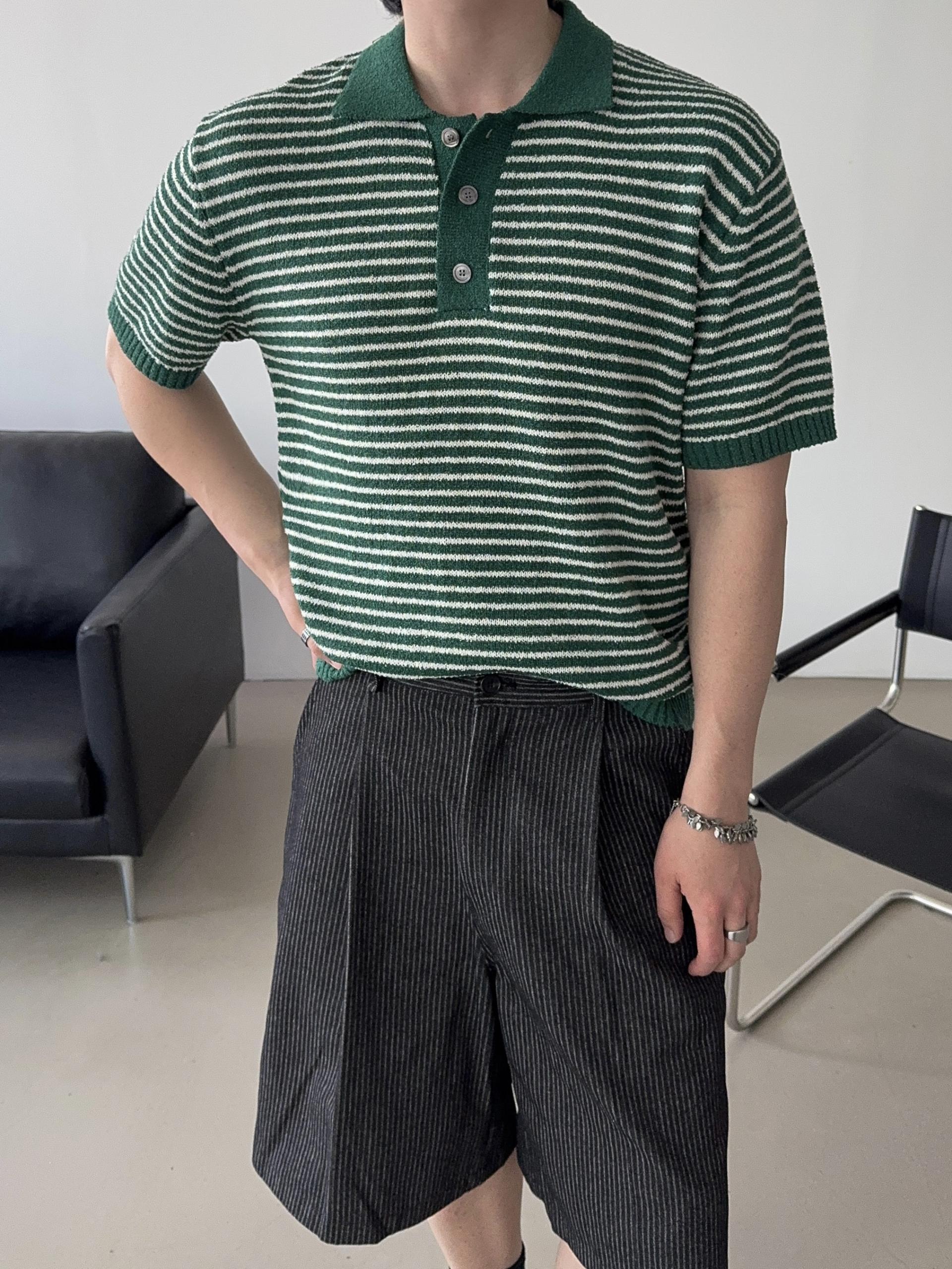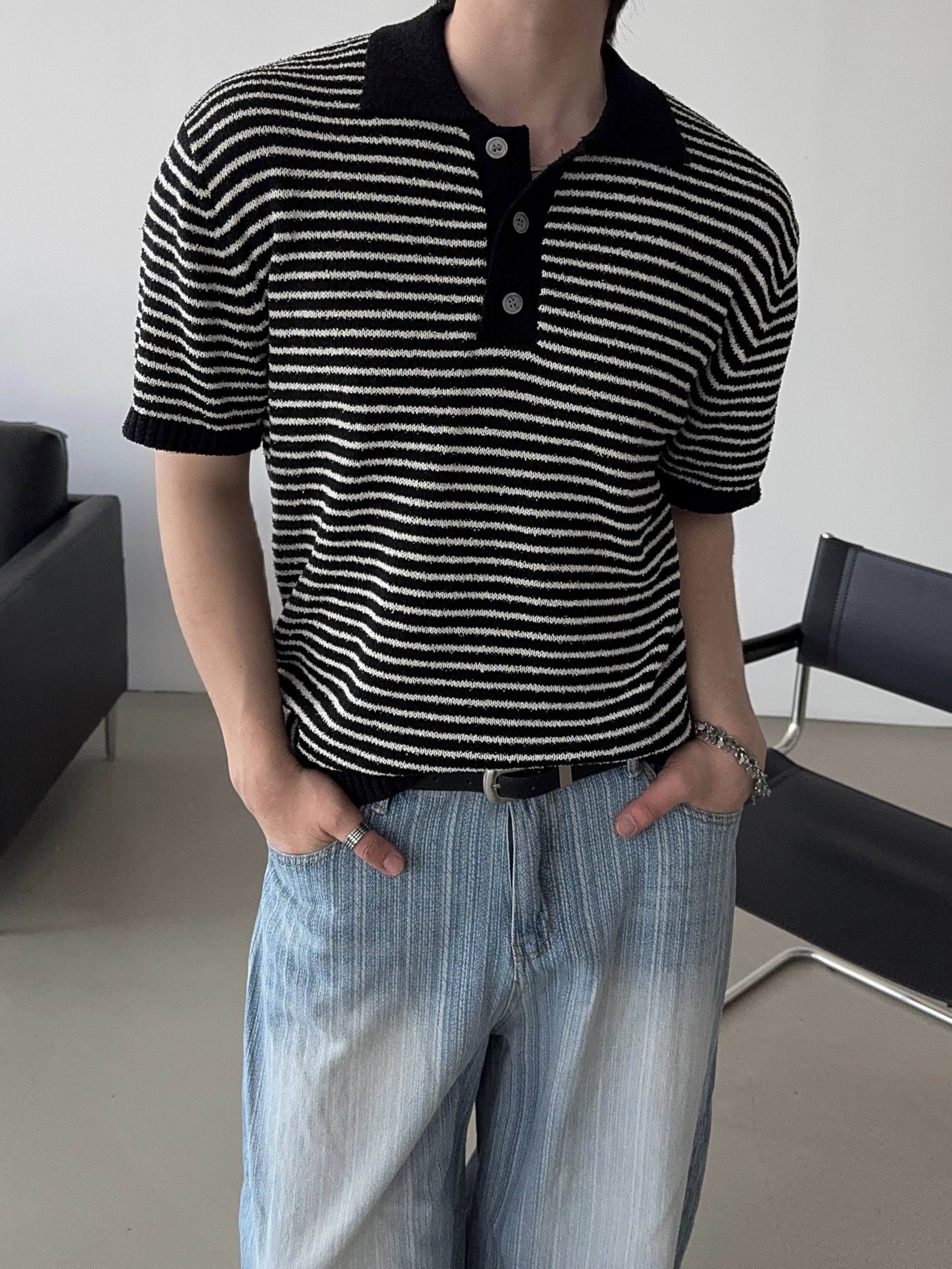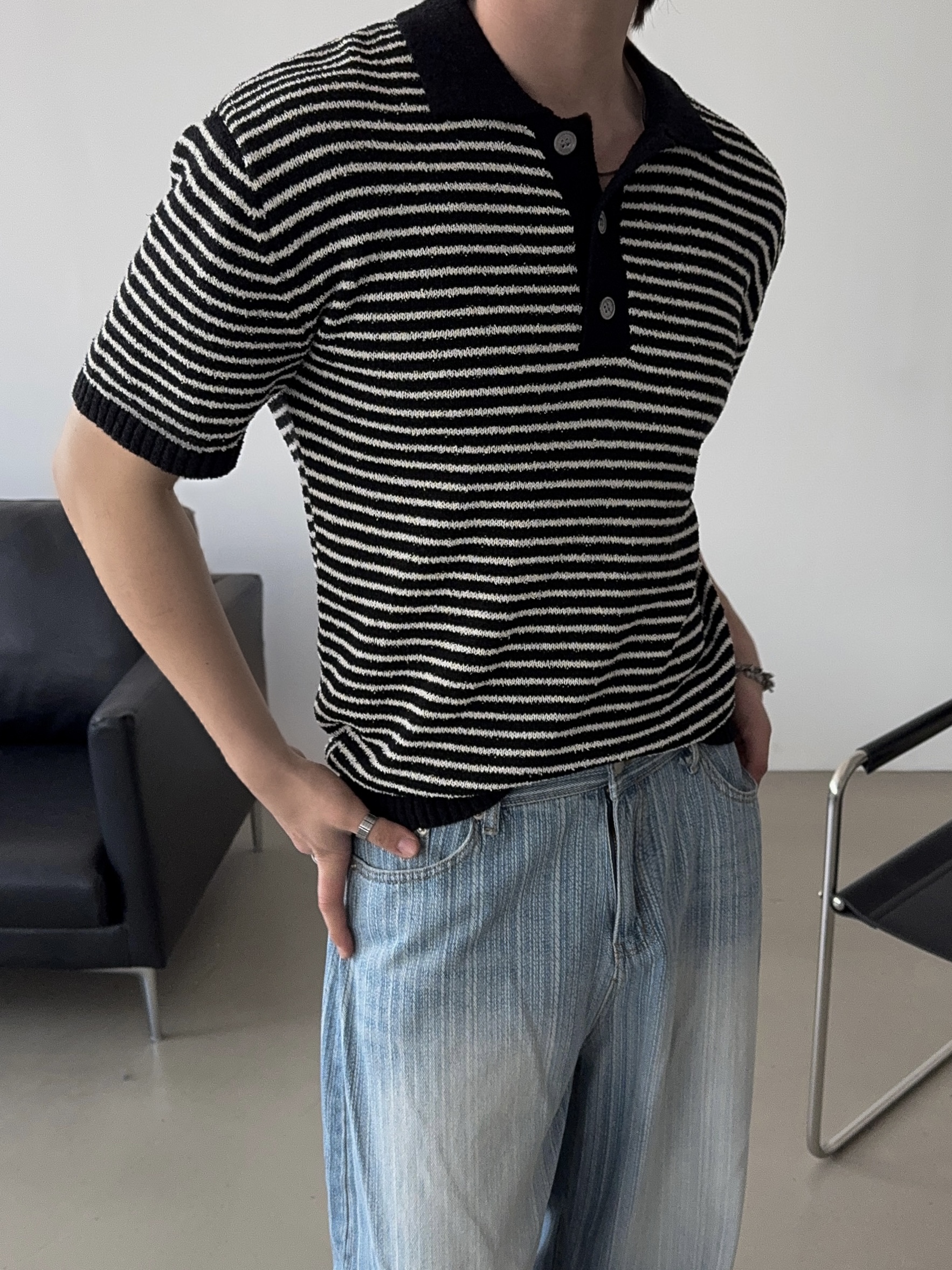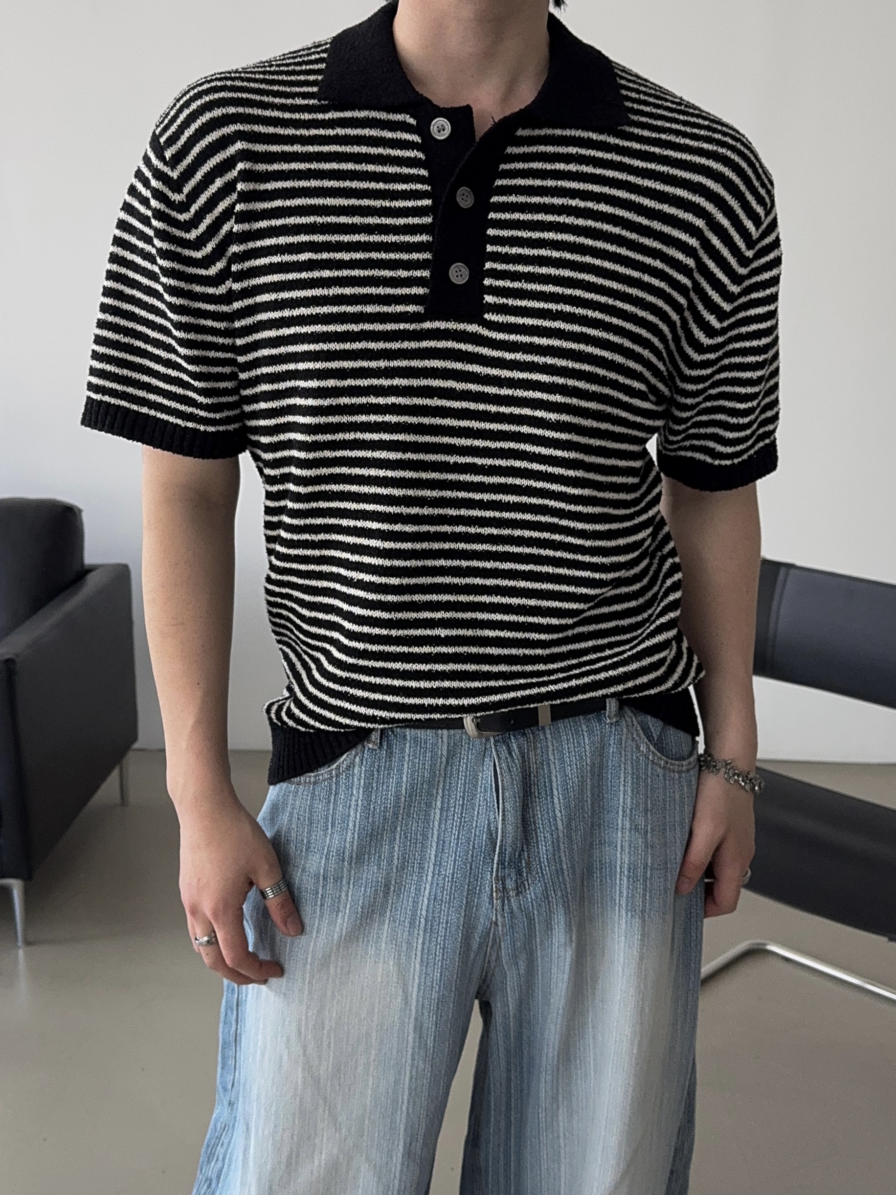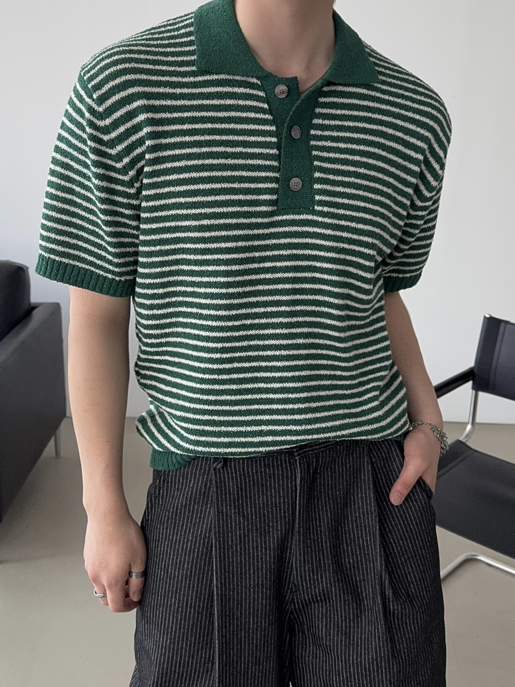 -프리미엄 부클 원사로 제작된 반팔 카라 니트