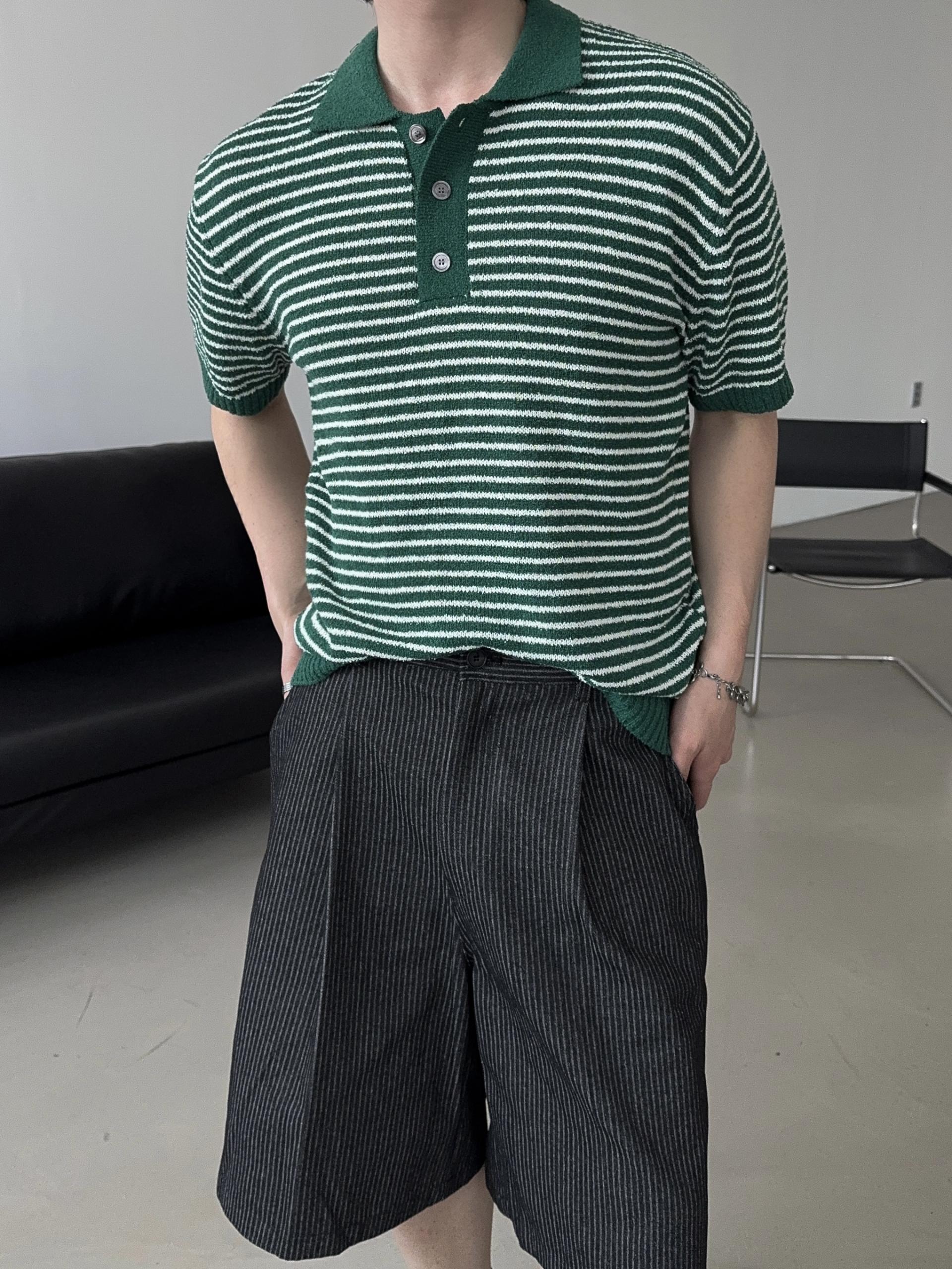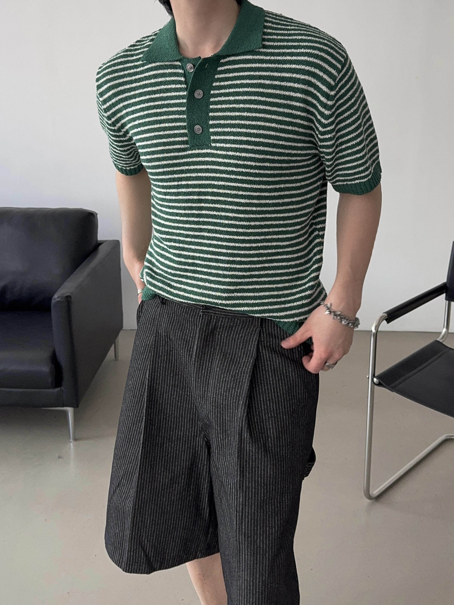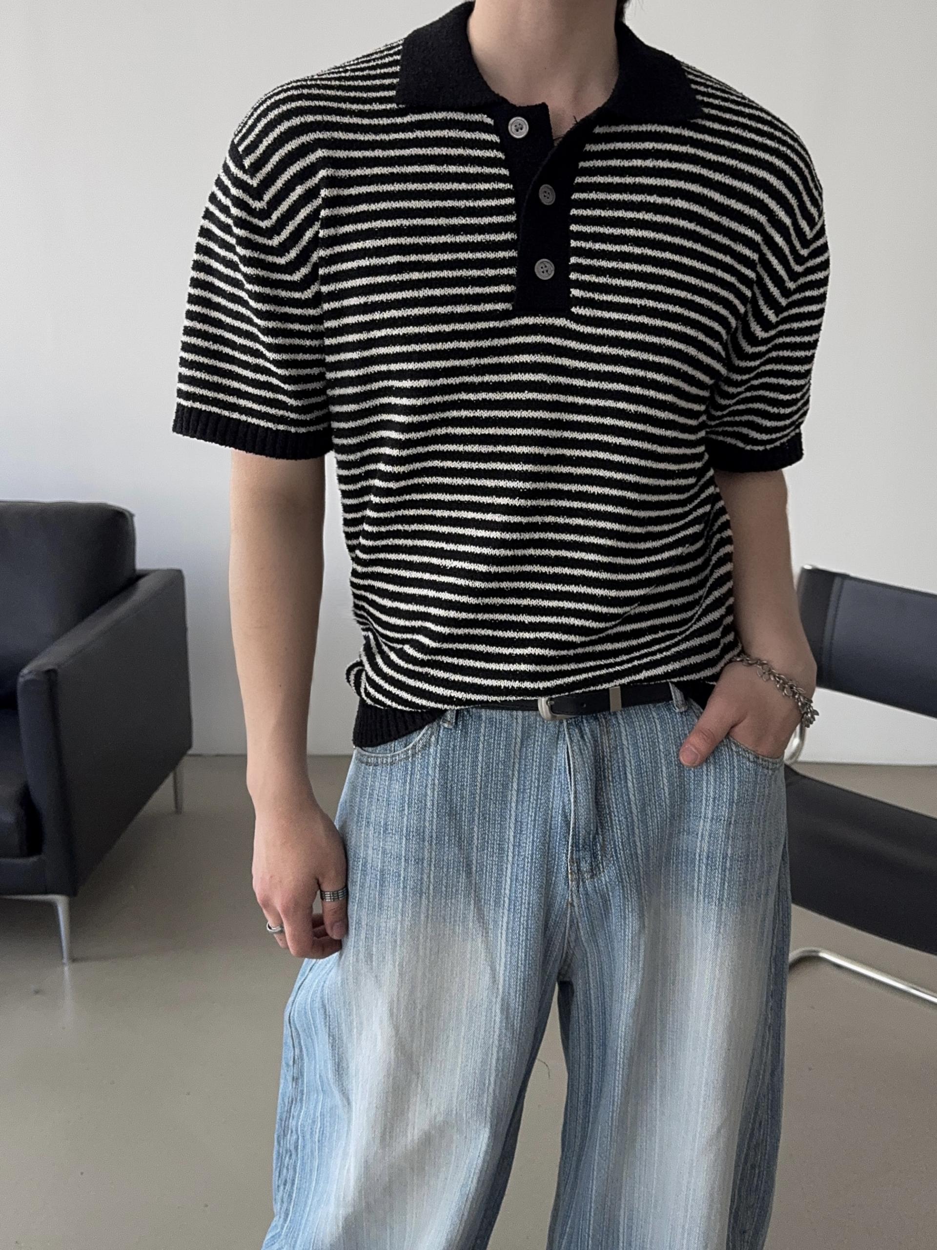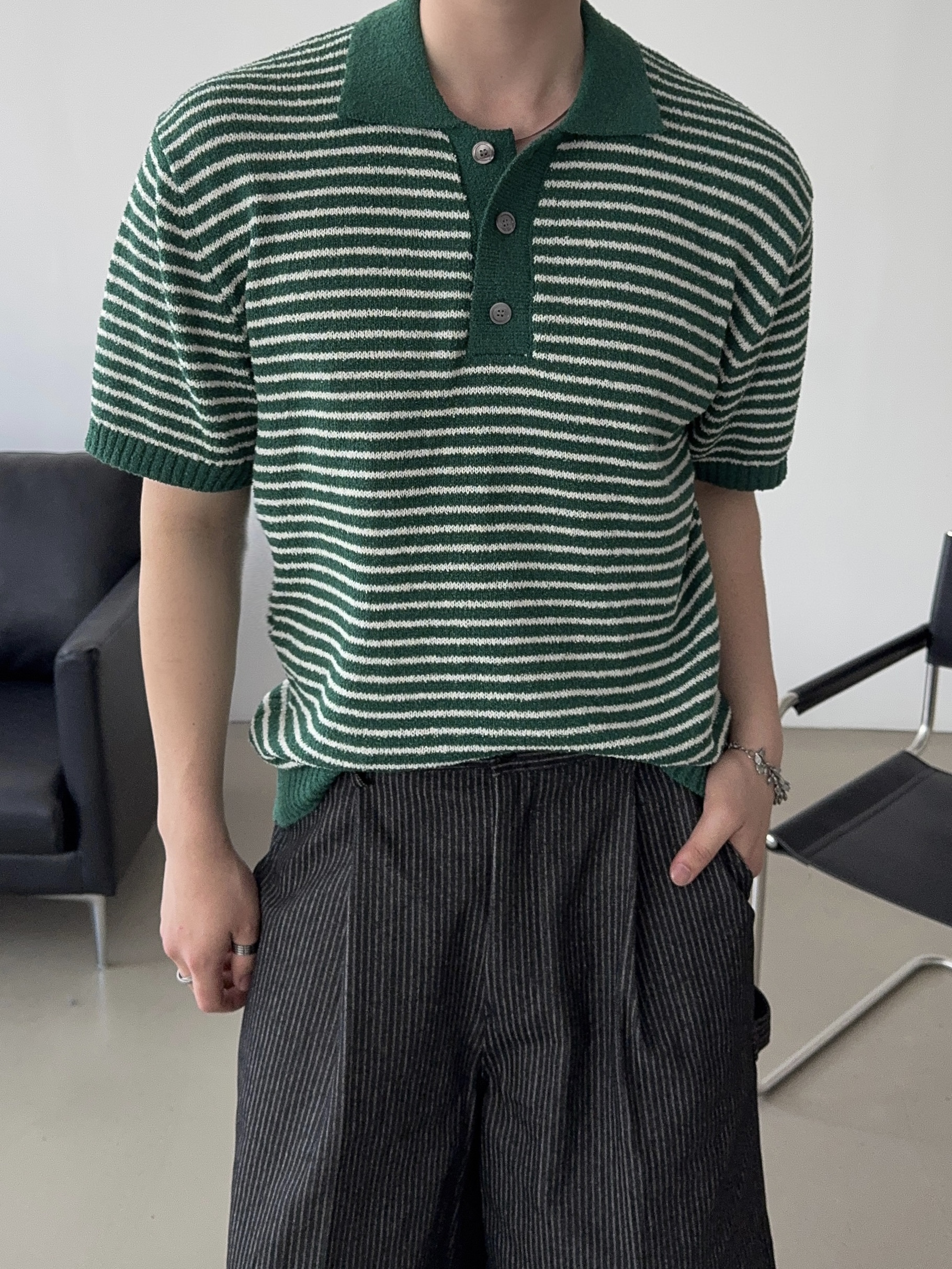 -프리미엄 부클 원사로 제작된 반팔 카라 니트