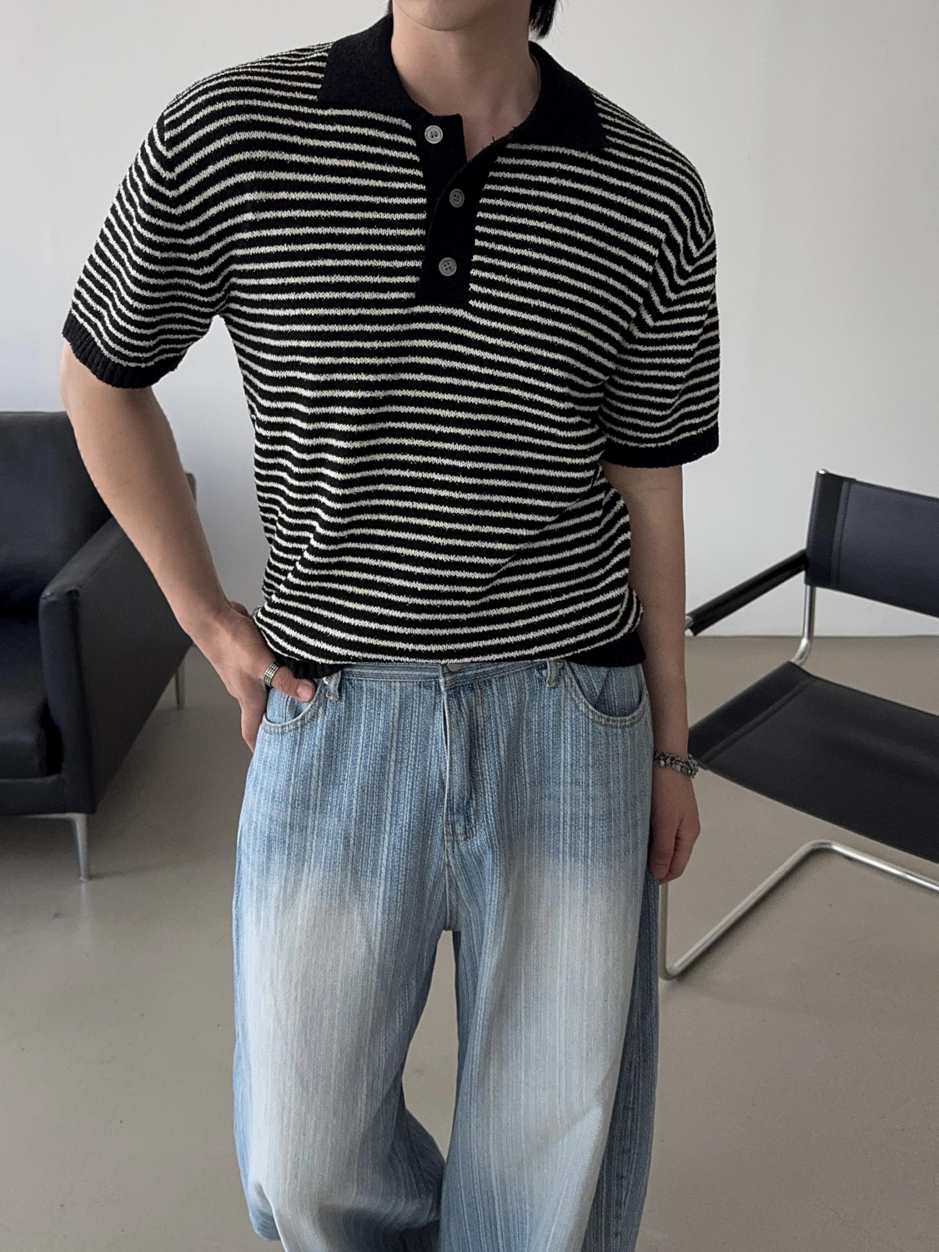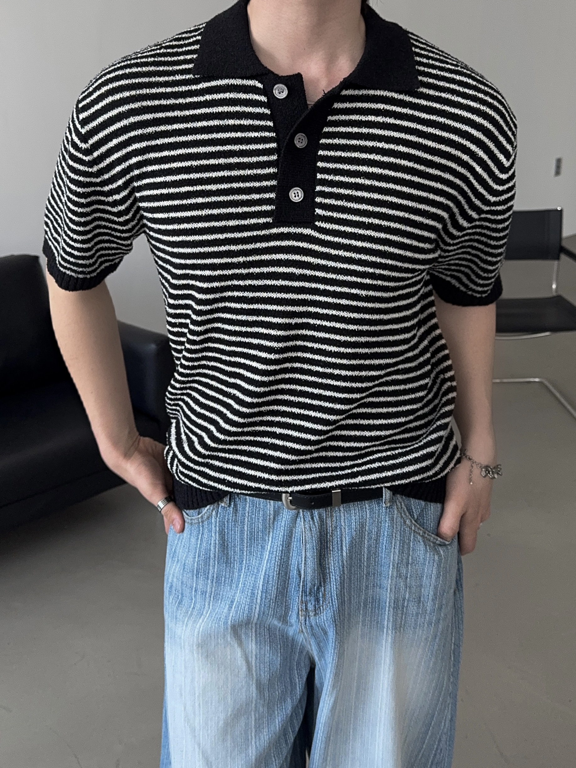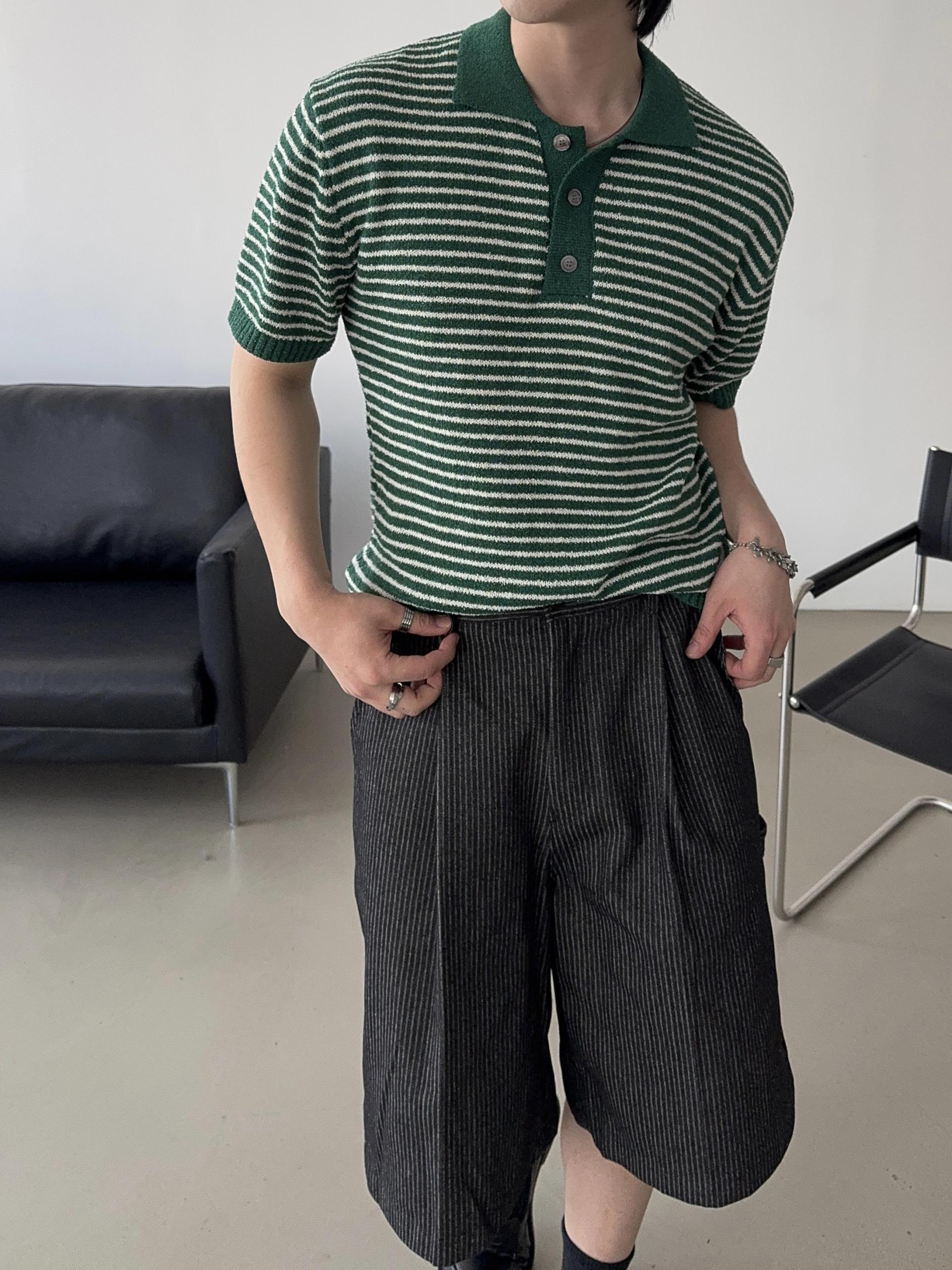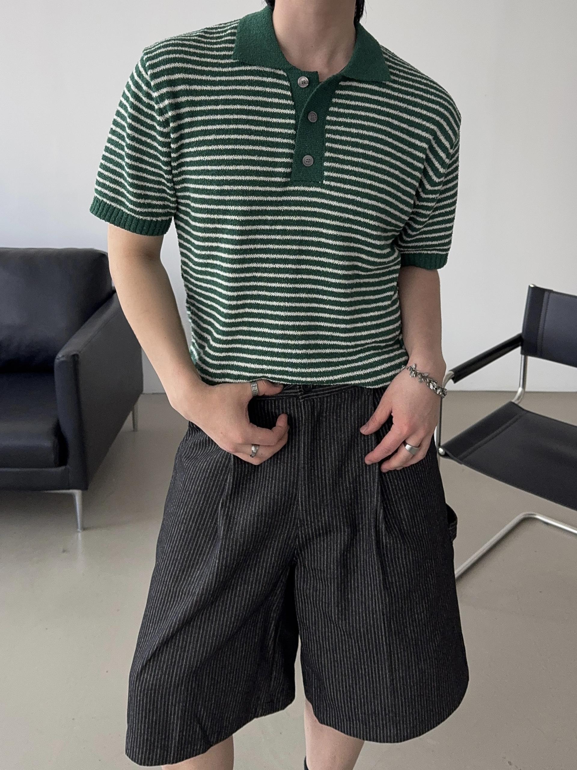 -프리미엄 부클 원사로 제작된 반팔 카라 니트
