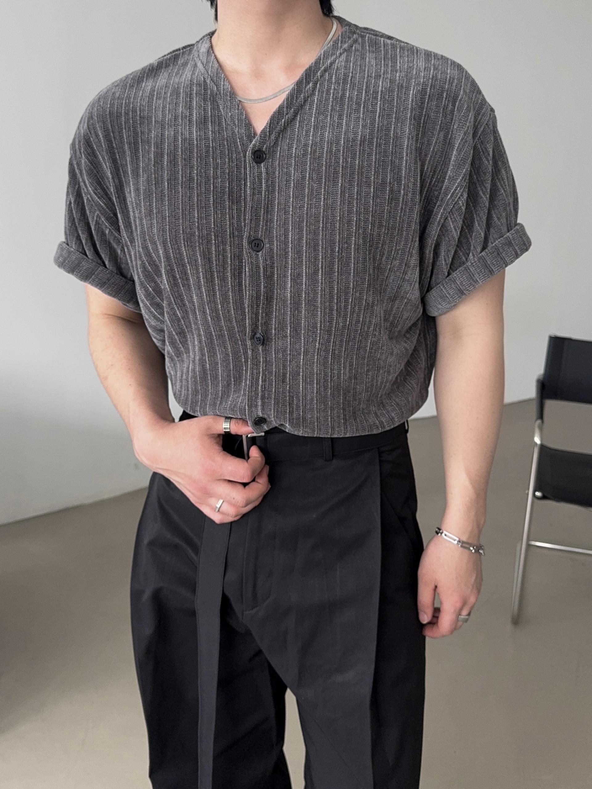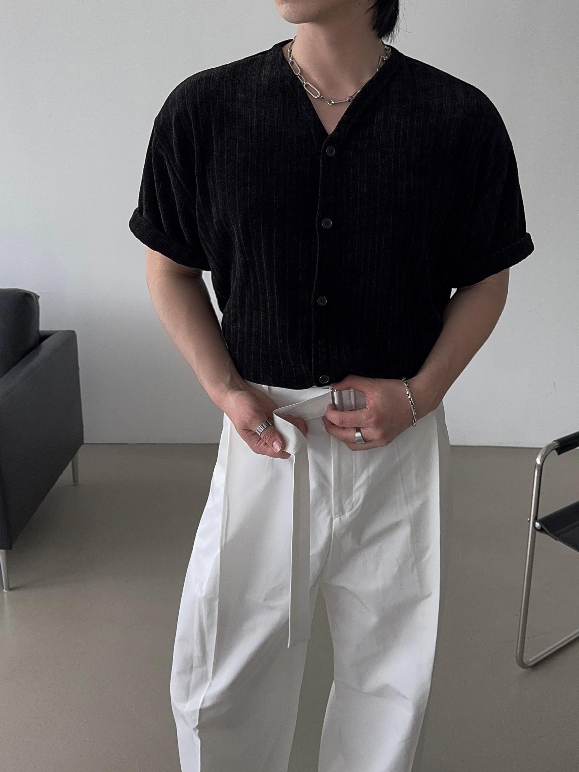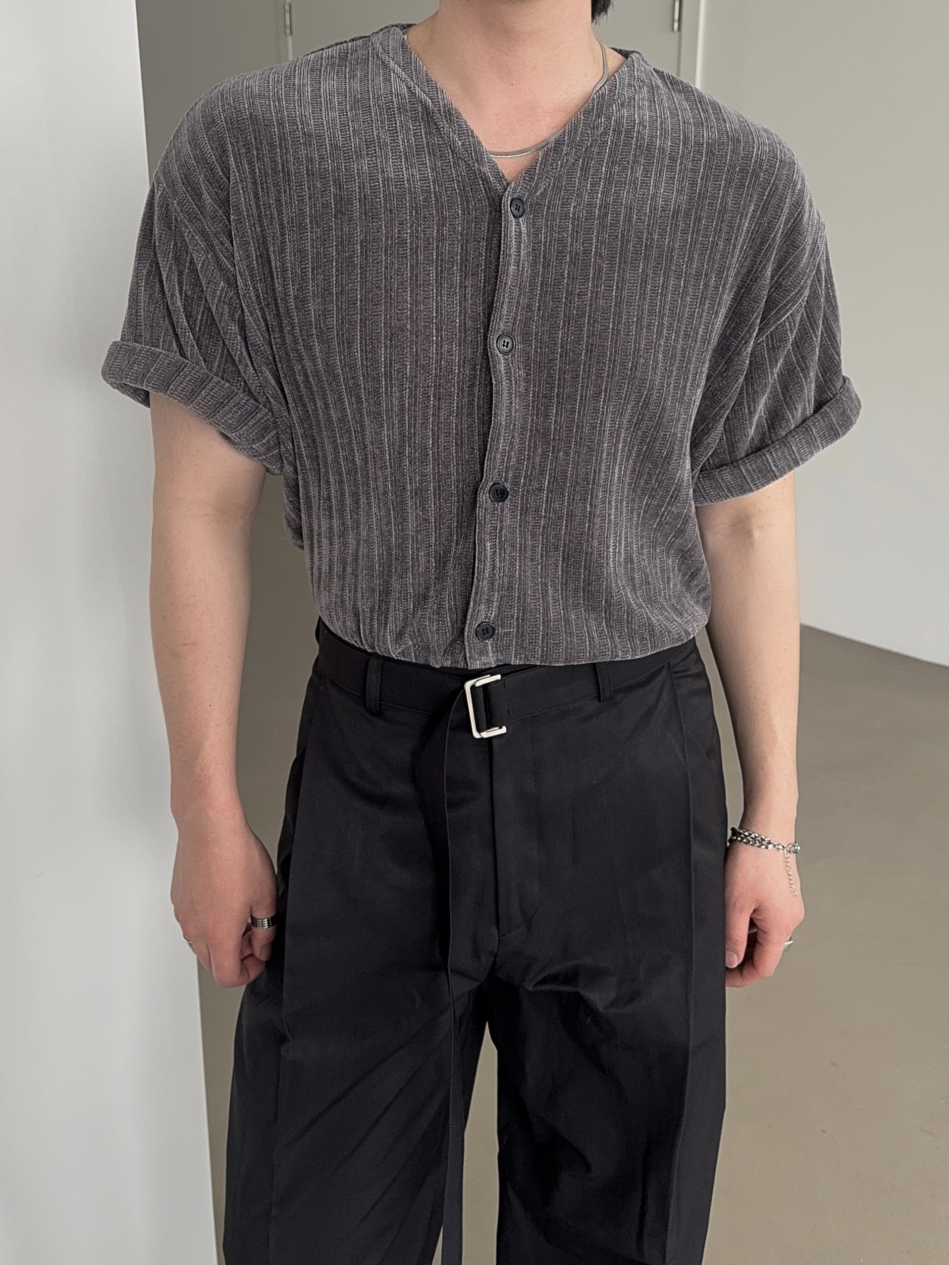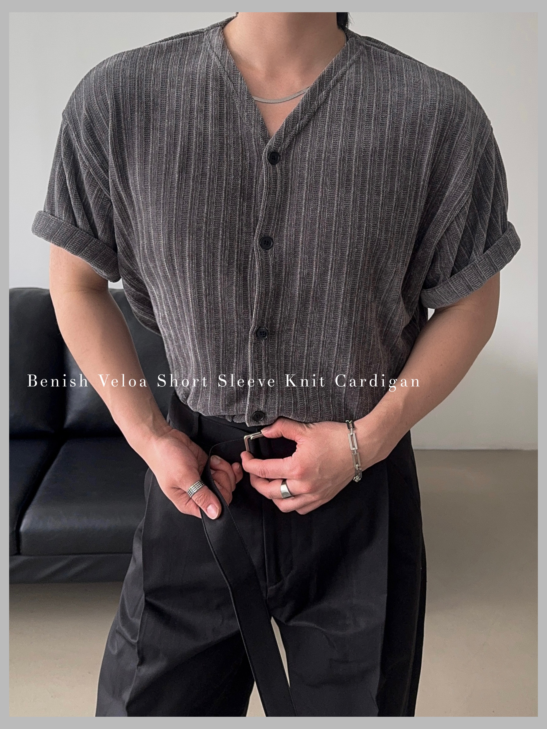-깔끔한 아웃핏이 돋보이는 벨로아 반팔 가디건