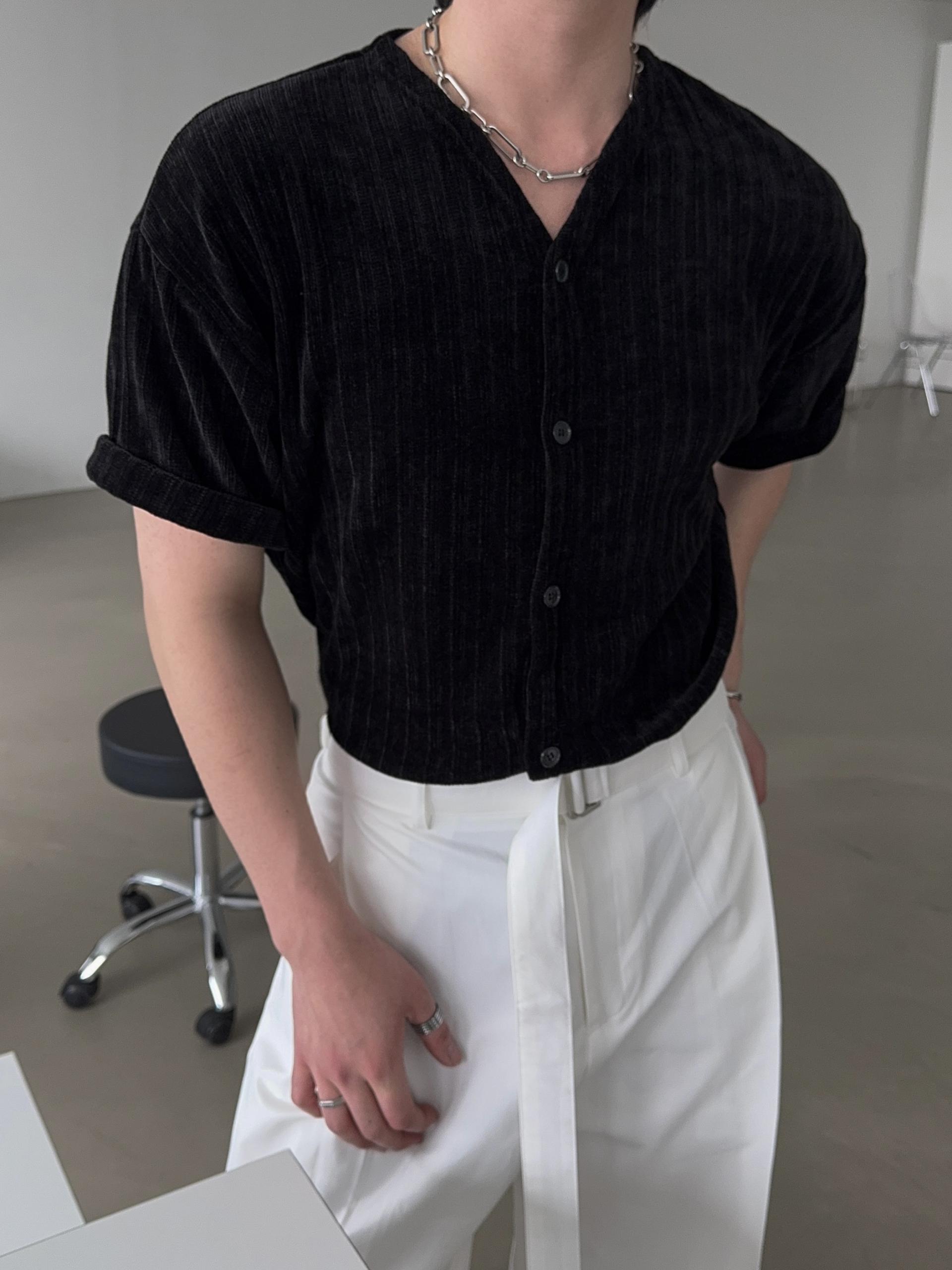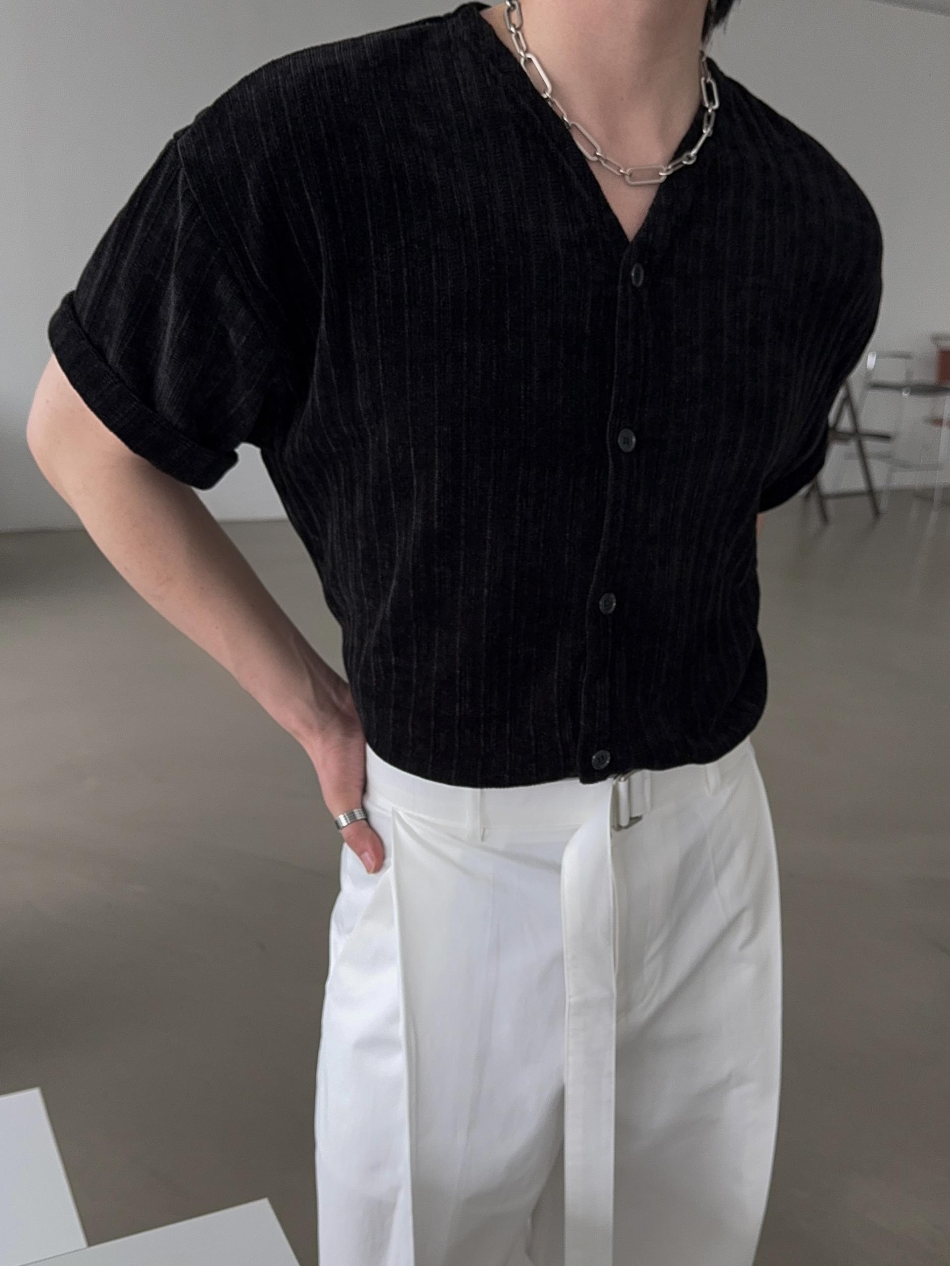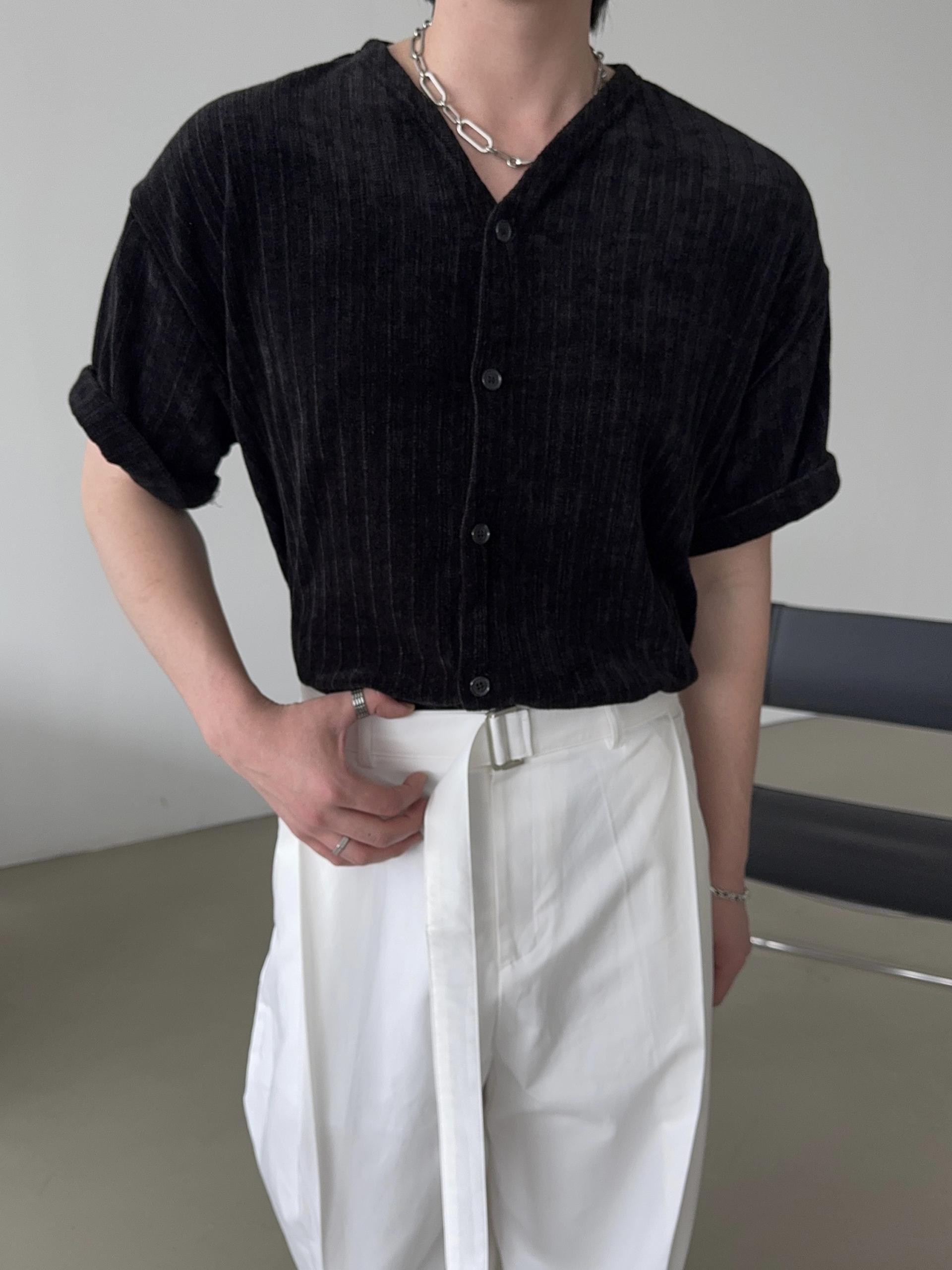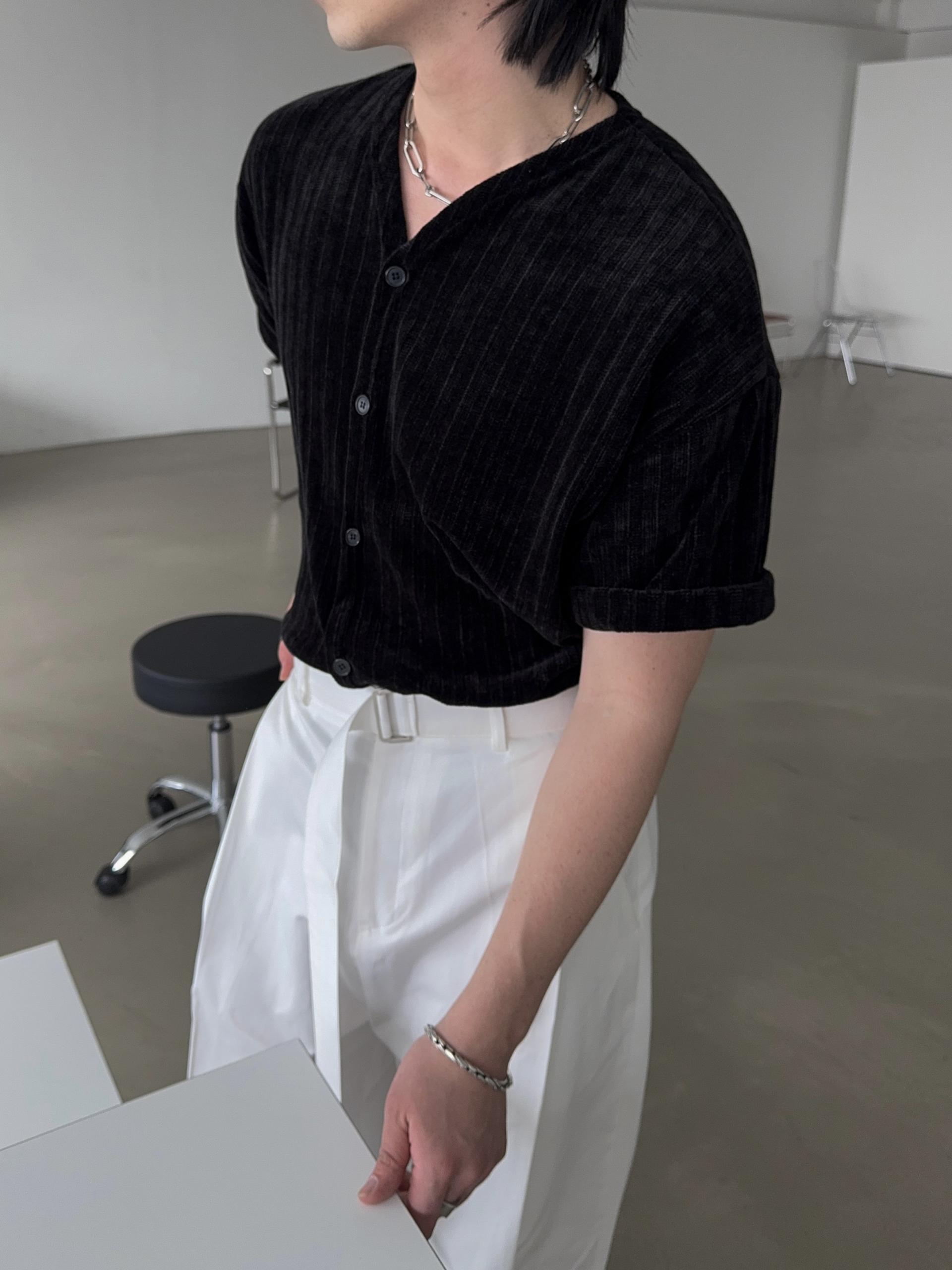 -소재가 돋보이는 벨로아 소재로 제자된 반팔 가디건