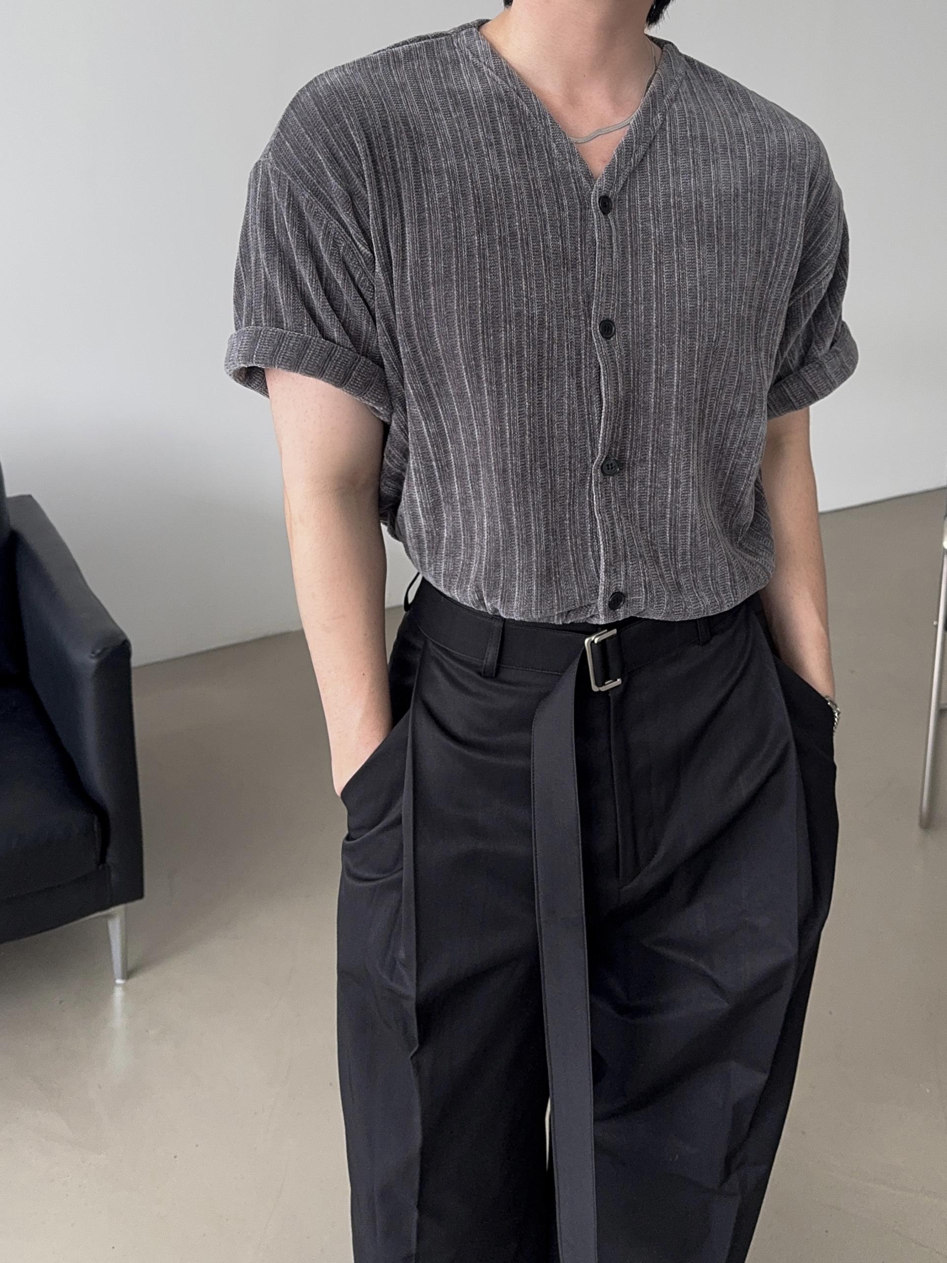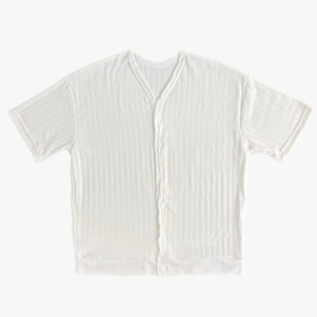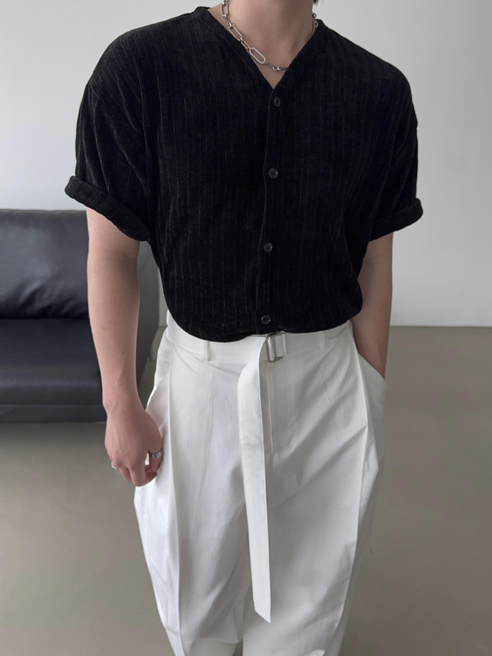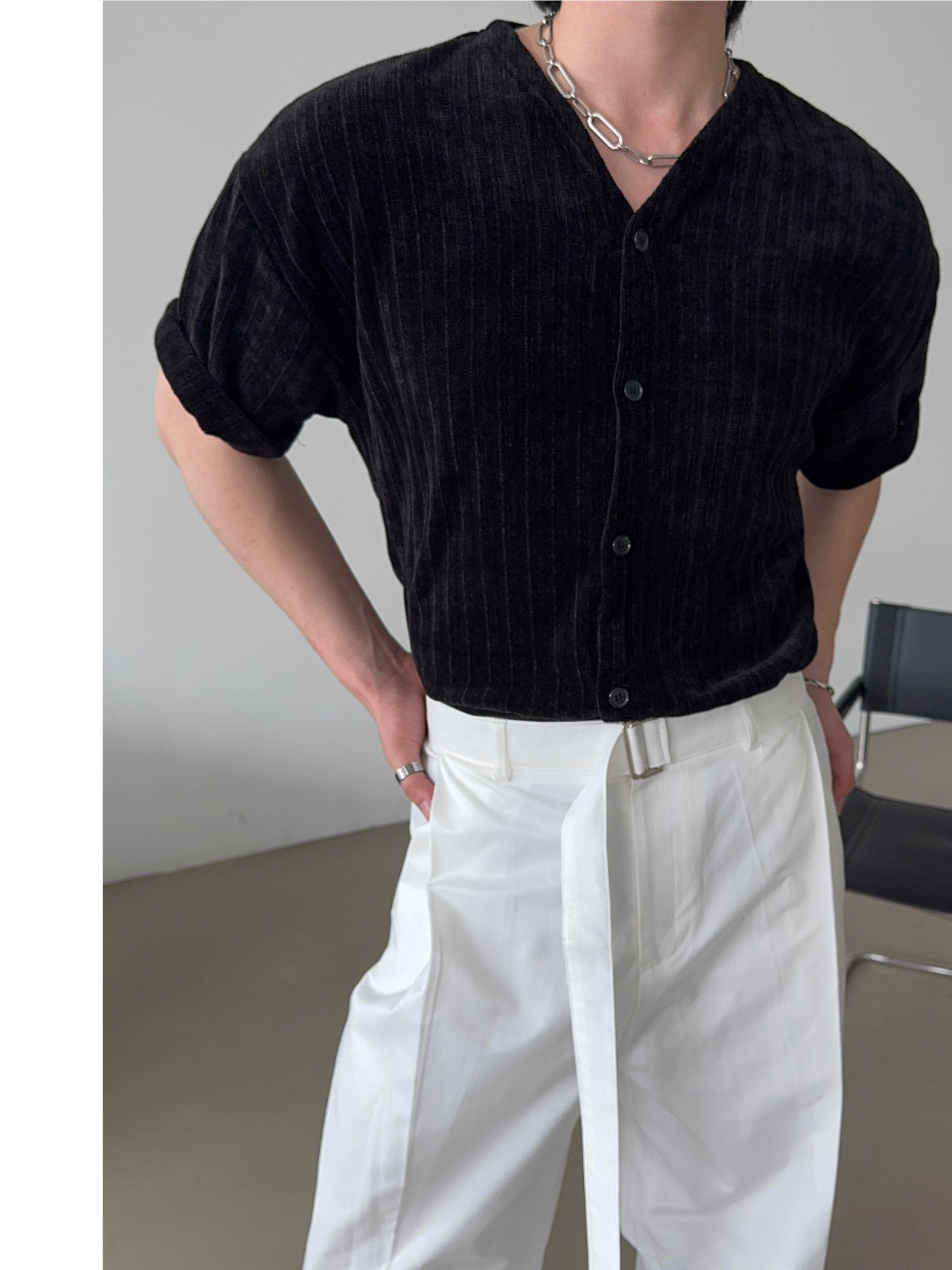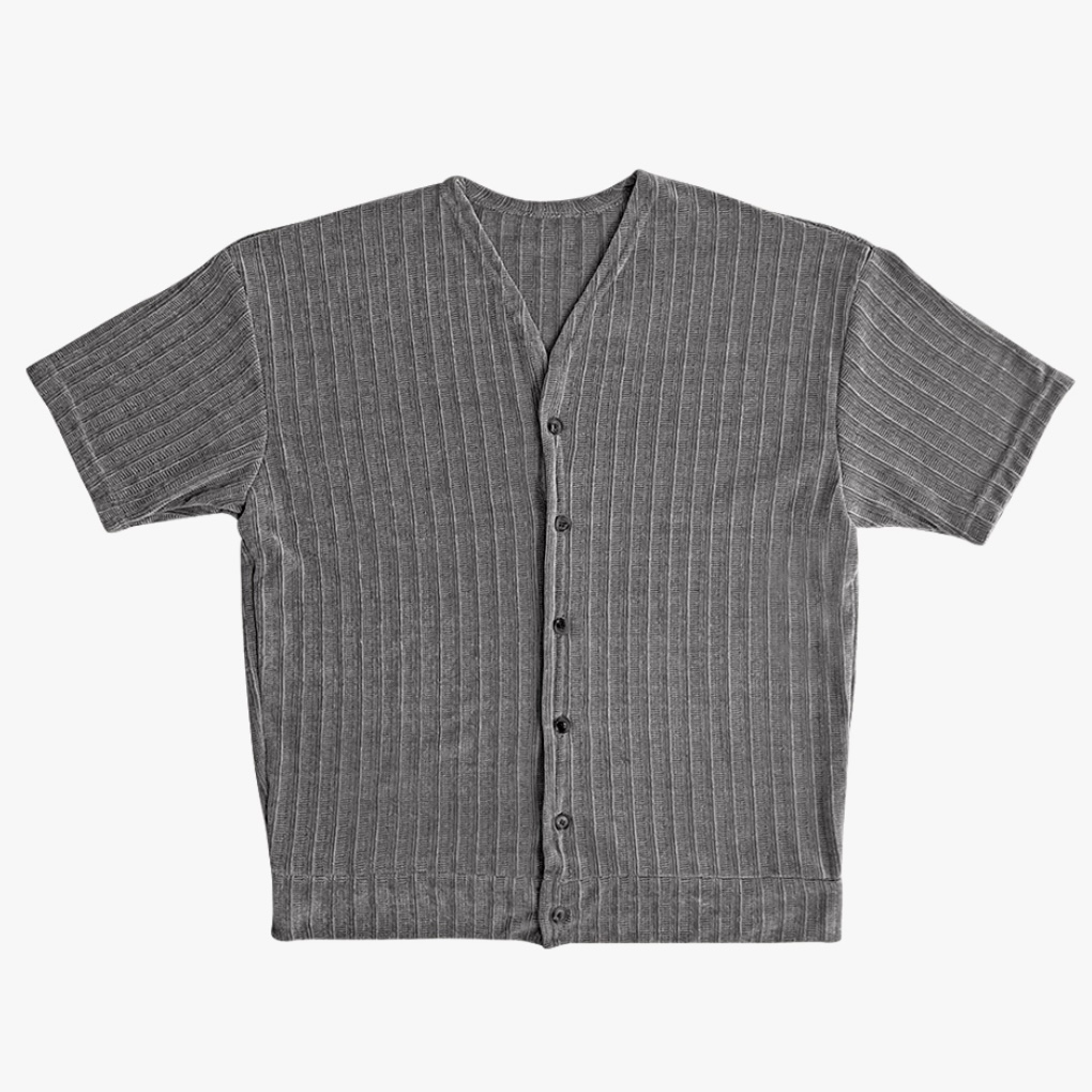 -소재가 돋보이는 벨로아 소재로 제자된 반팔 가디건