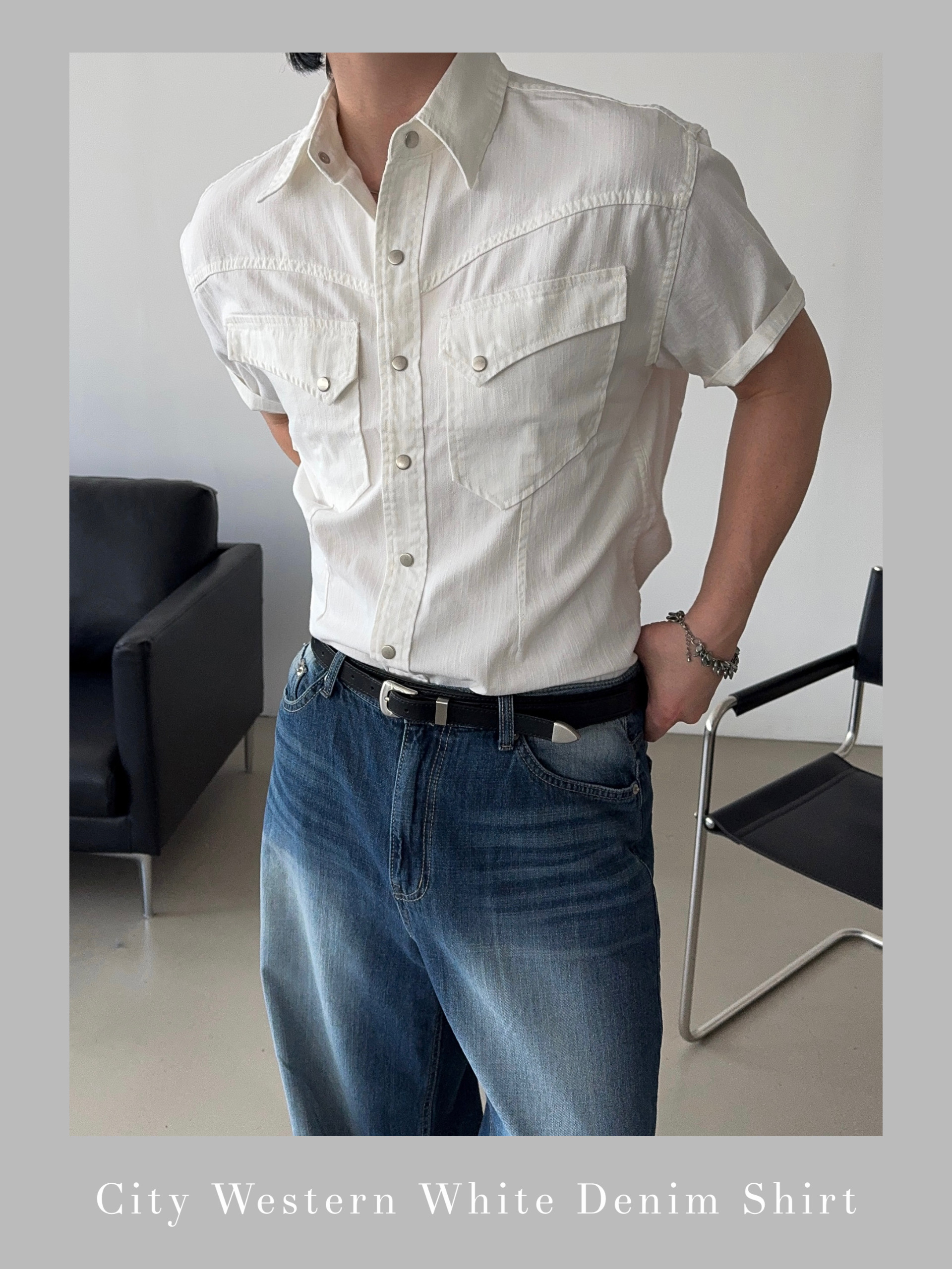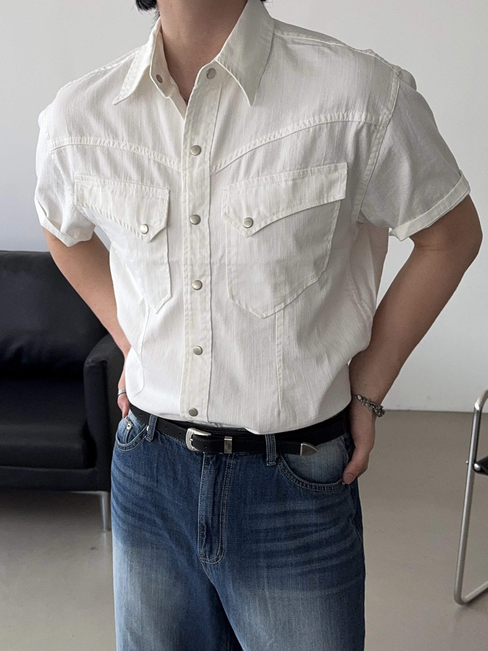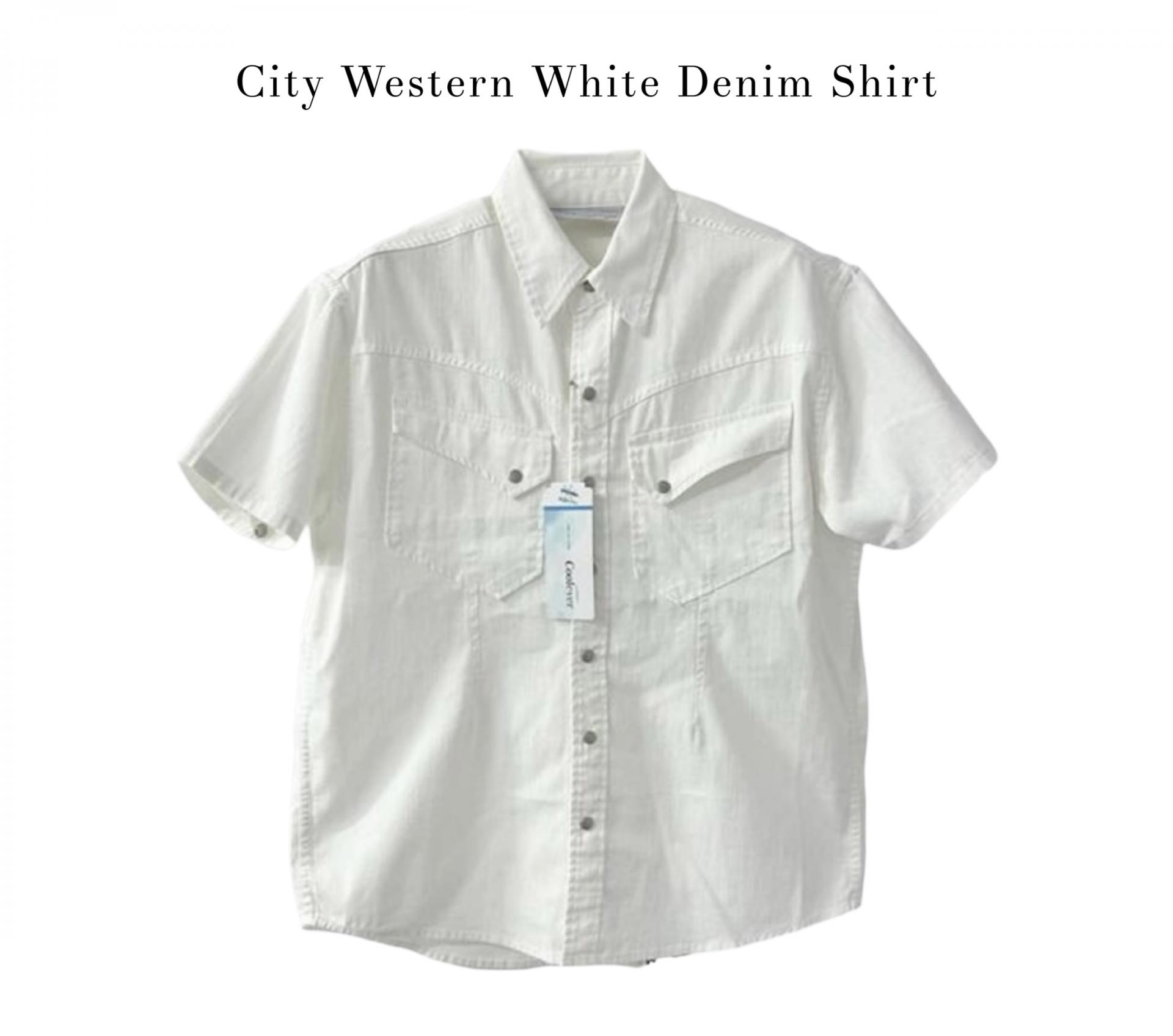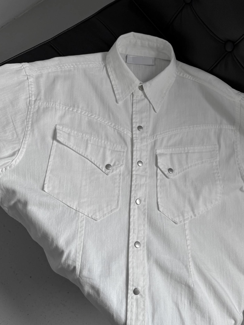 -화이트 컬러로 제작된 탄탄한 소재의 웨스턴 셔츠