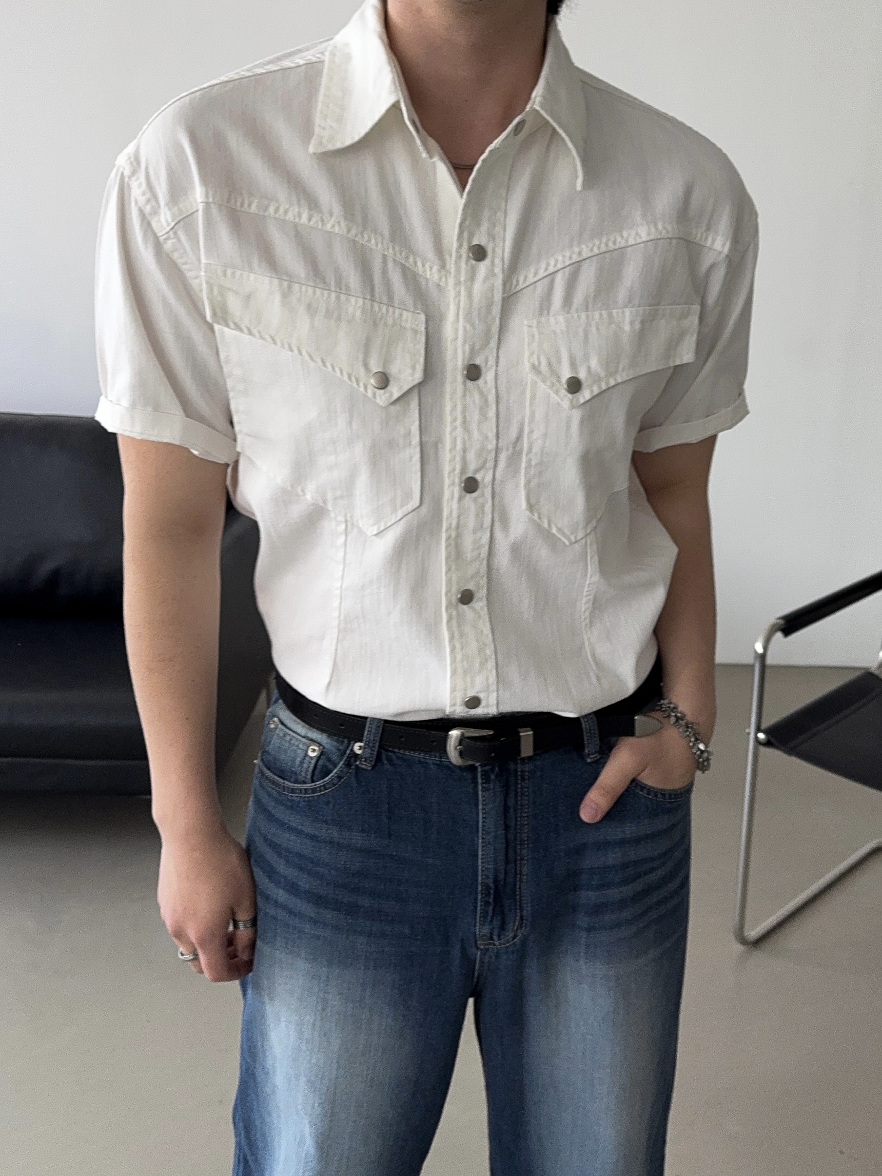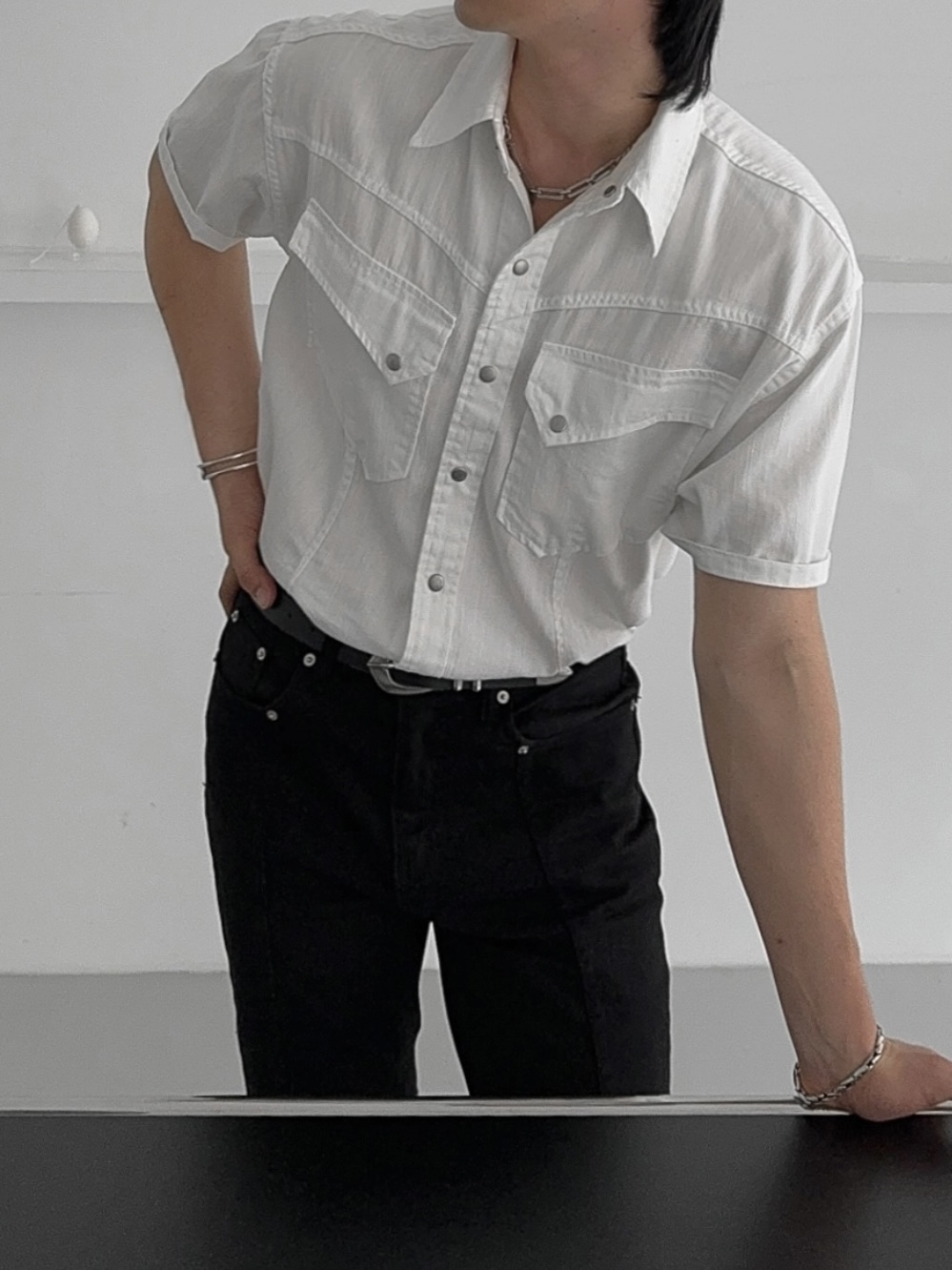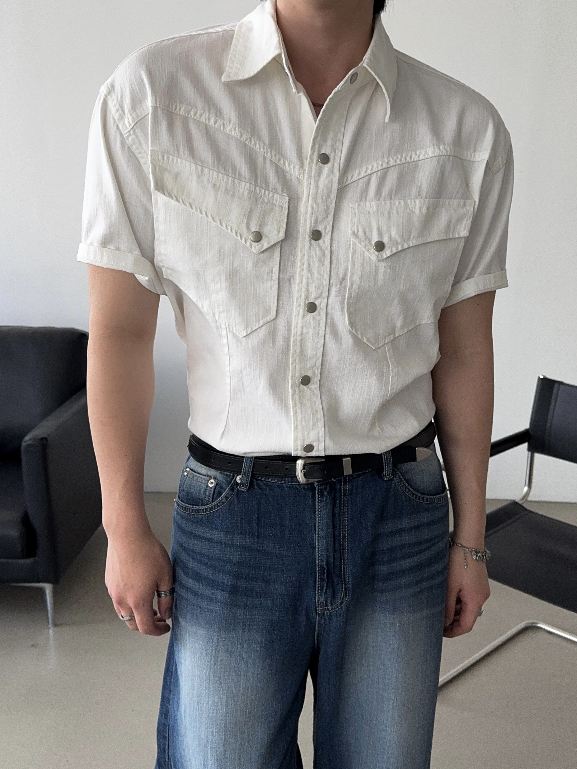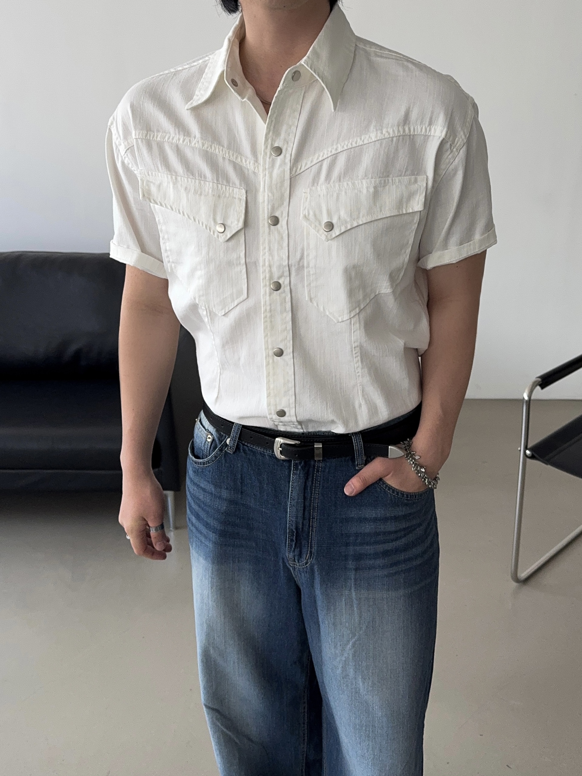 -화이트 컬러로 제작된 탄탄한 소재의 웨스턴 셔츠