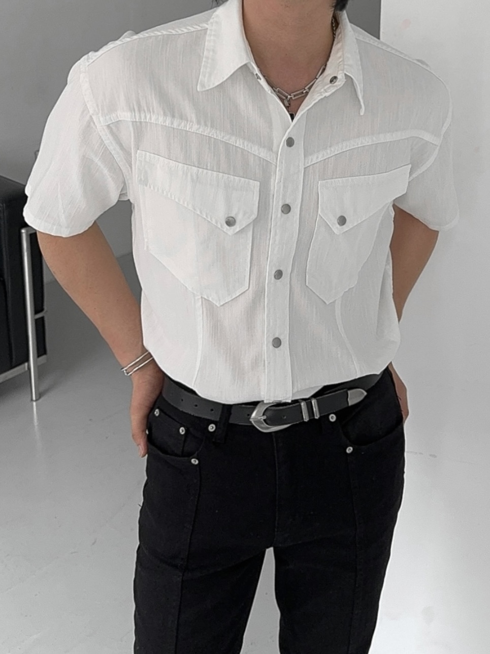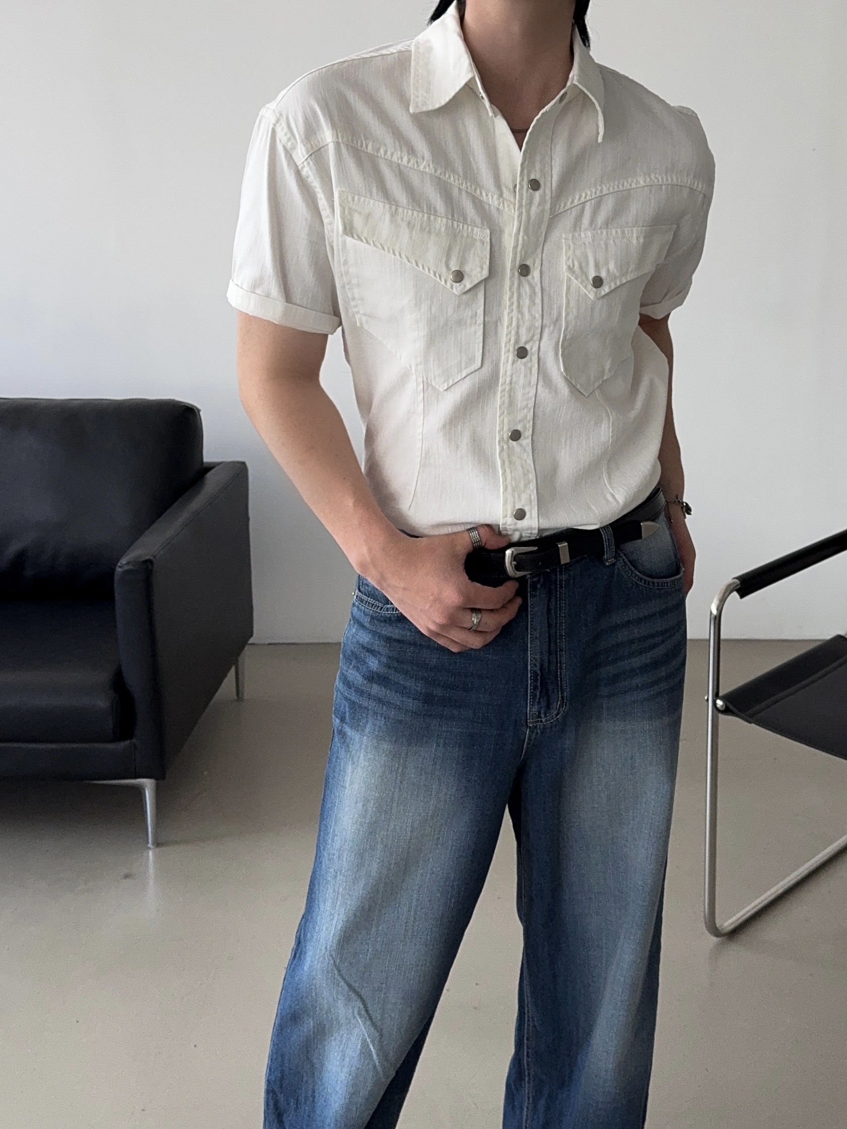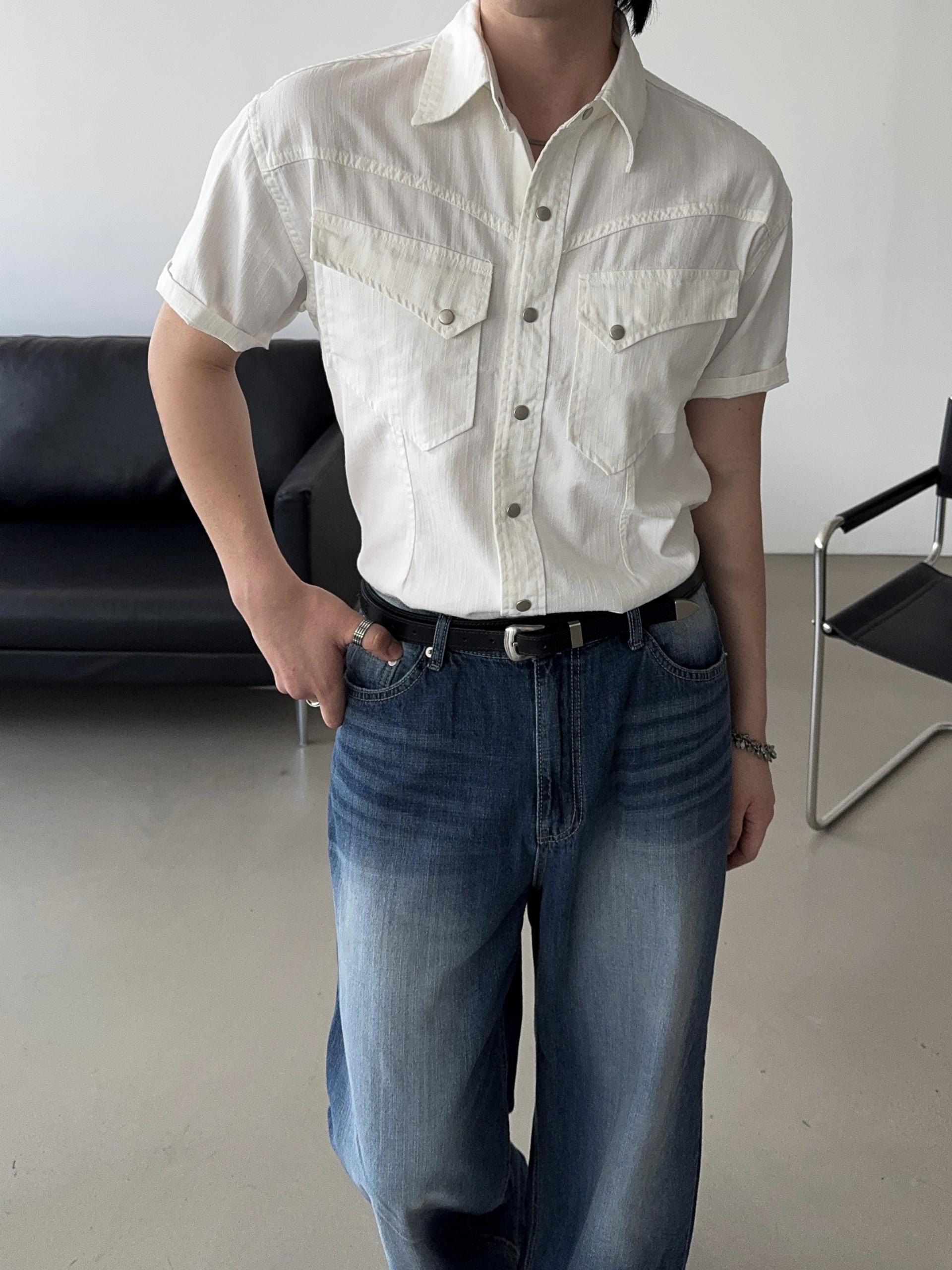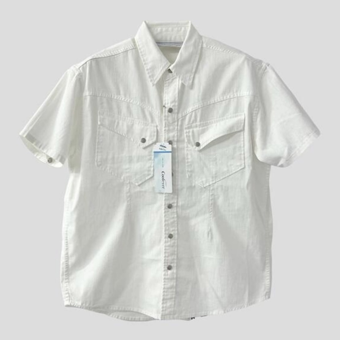 -화이트 컬러로 제작된 탄탄한 소재의 웨스턴 셔츠