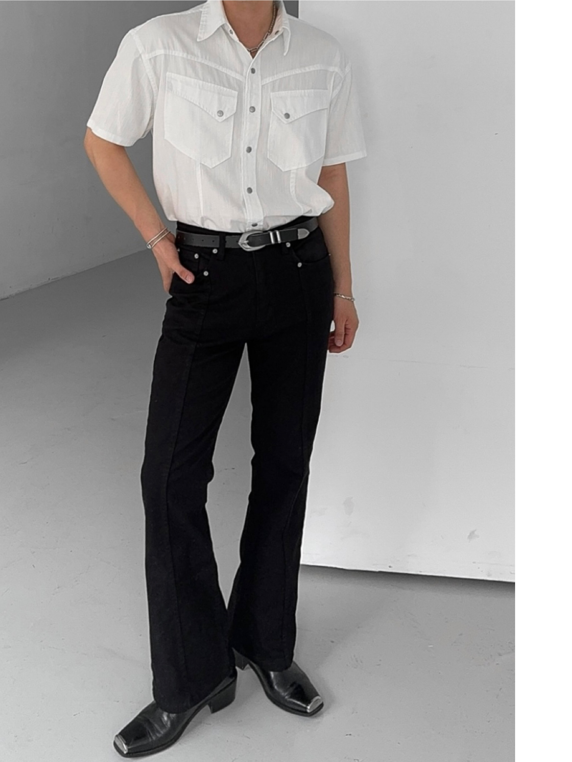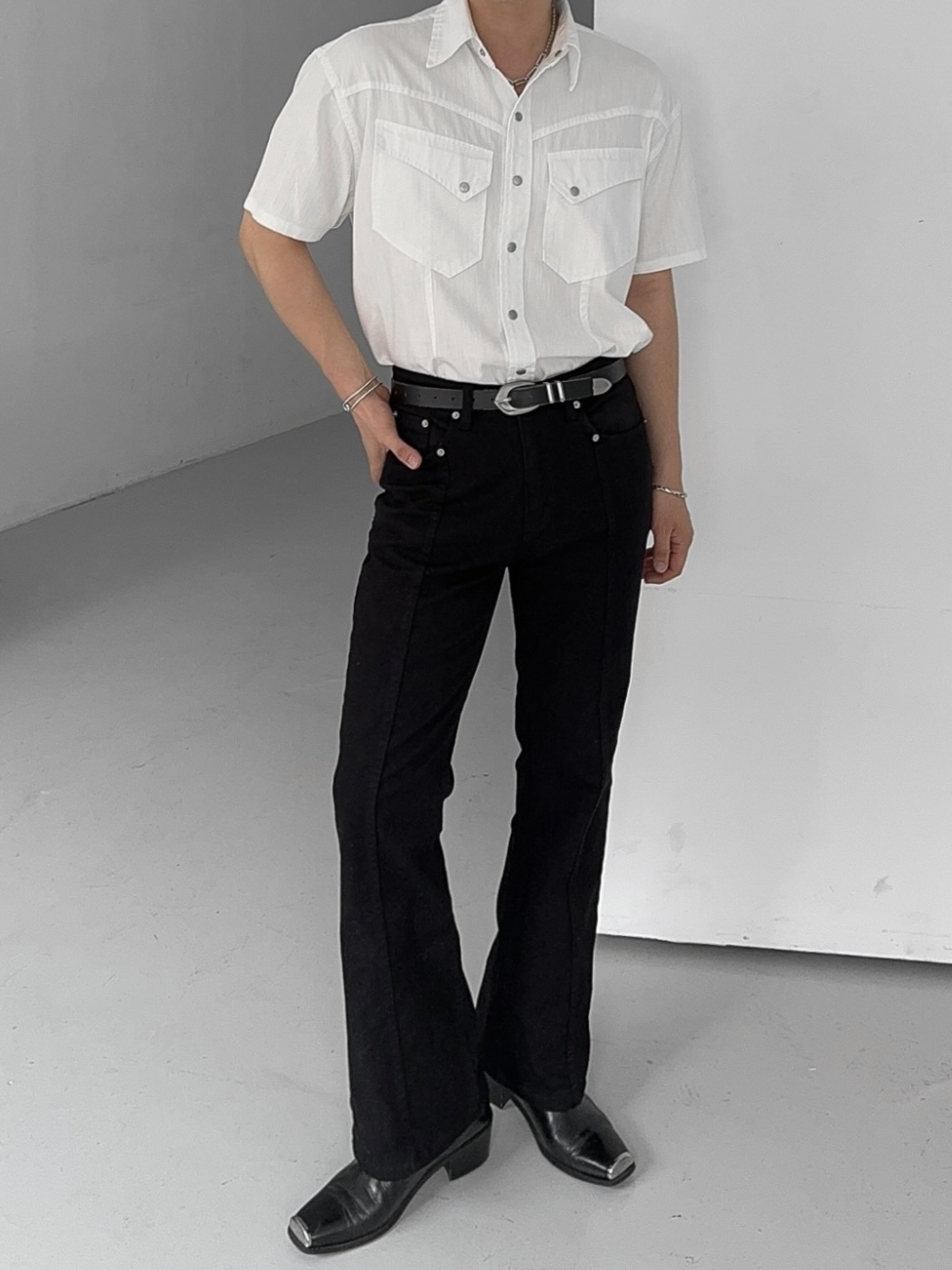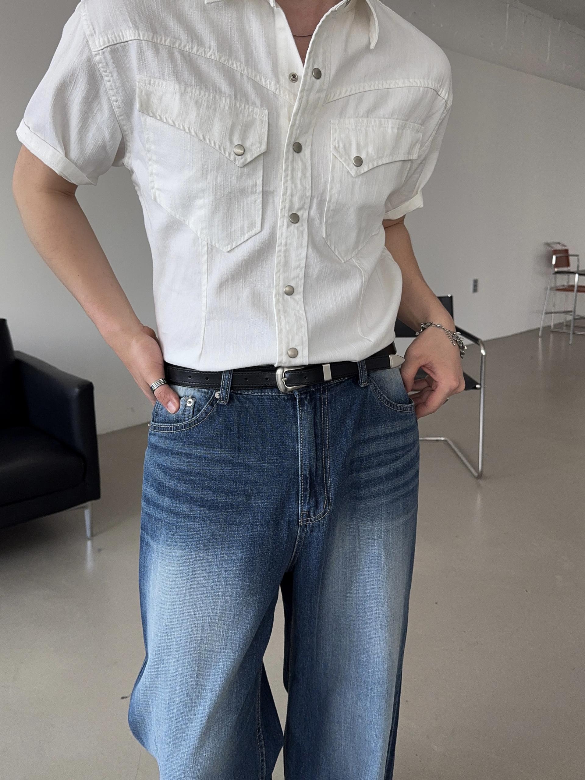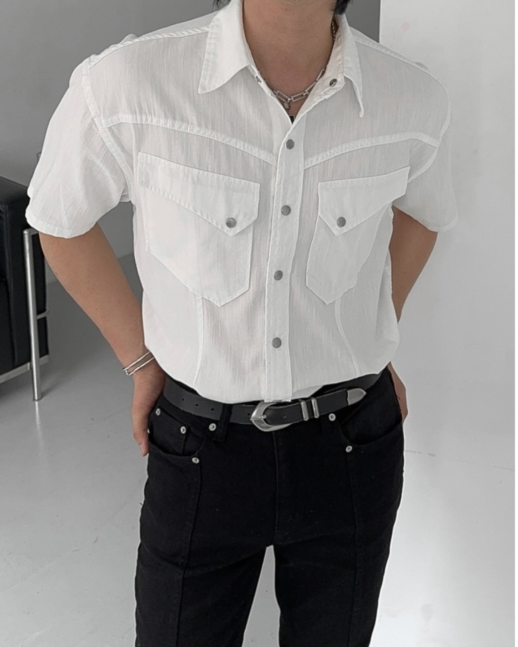 -화이트 컬러로 제작된 탄탄한 소재의 웨스턴 셔츠