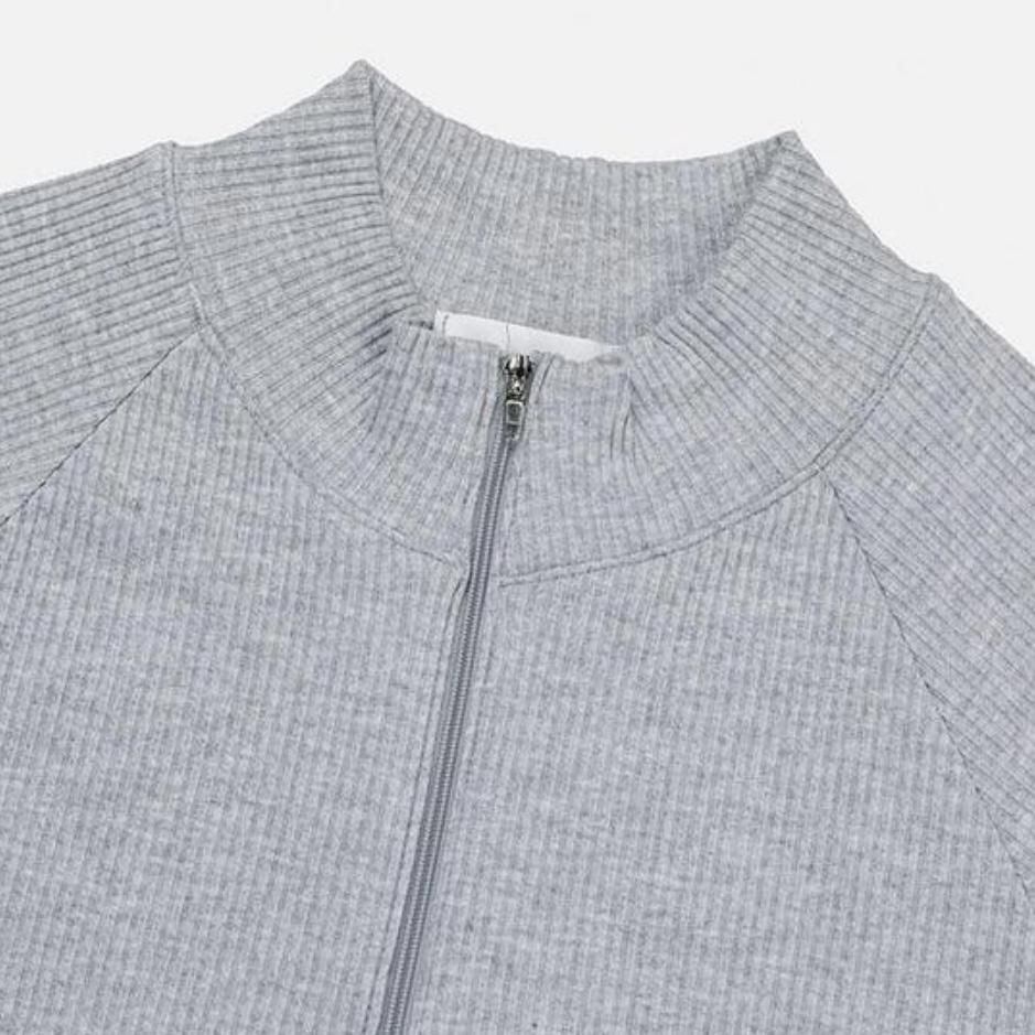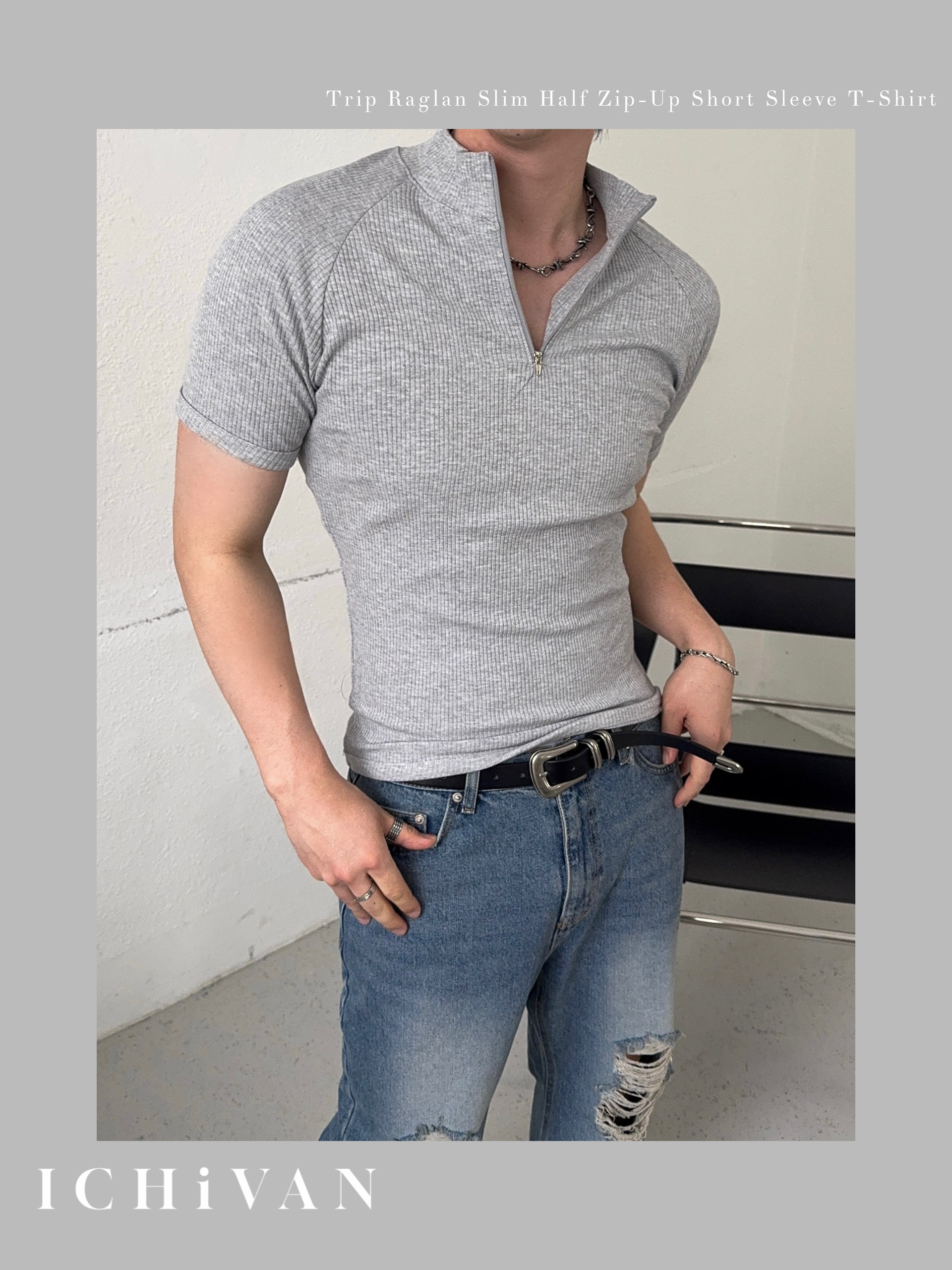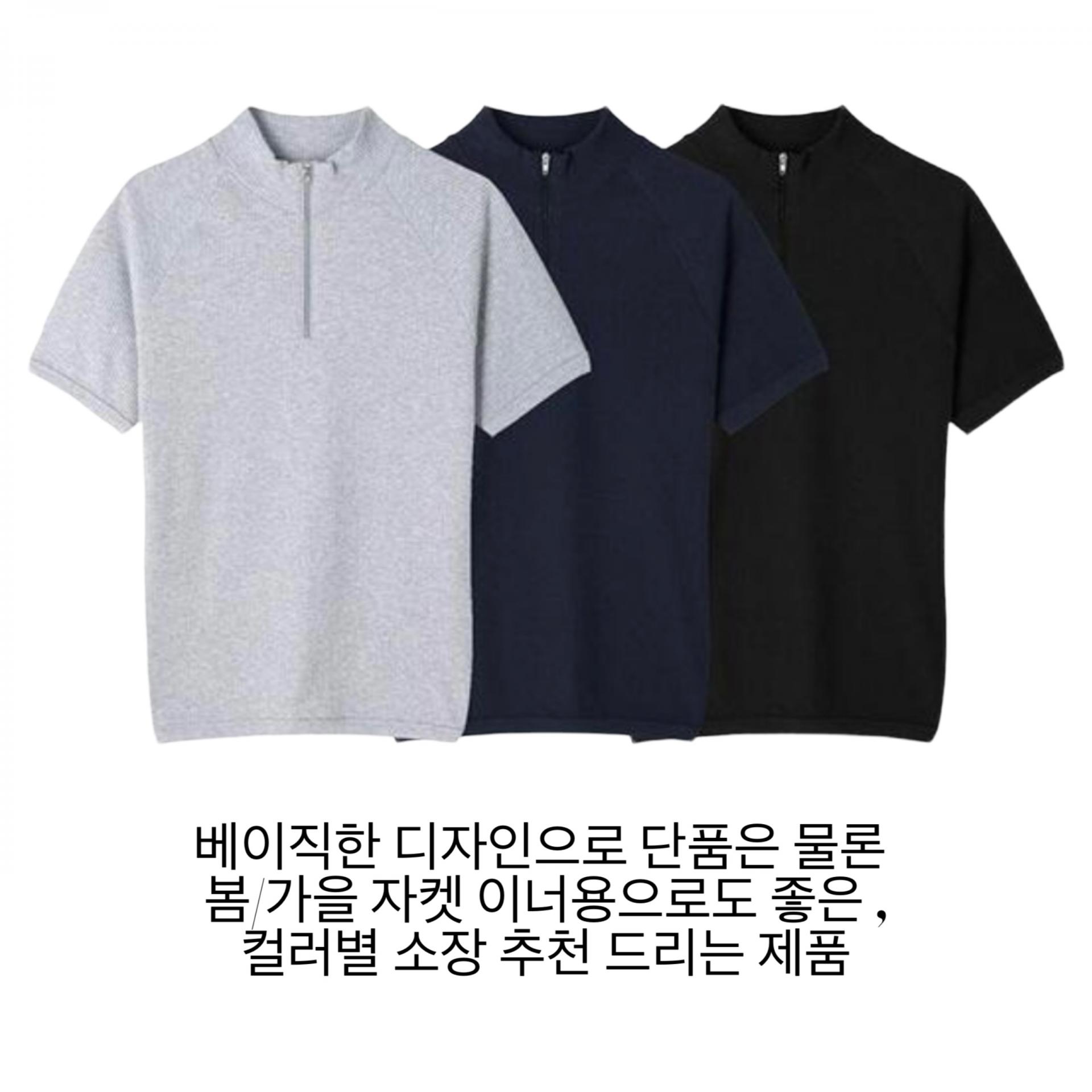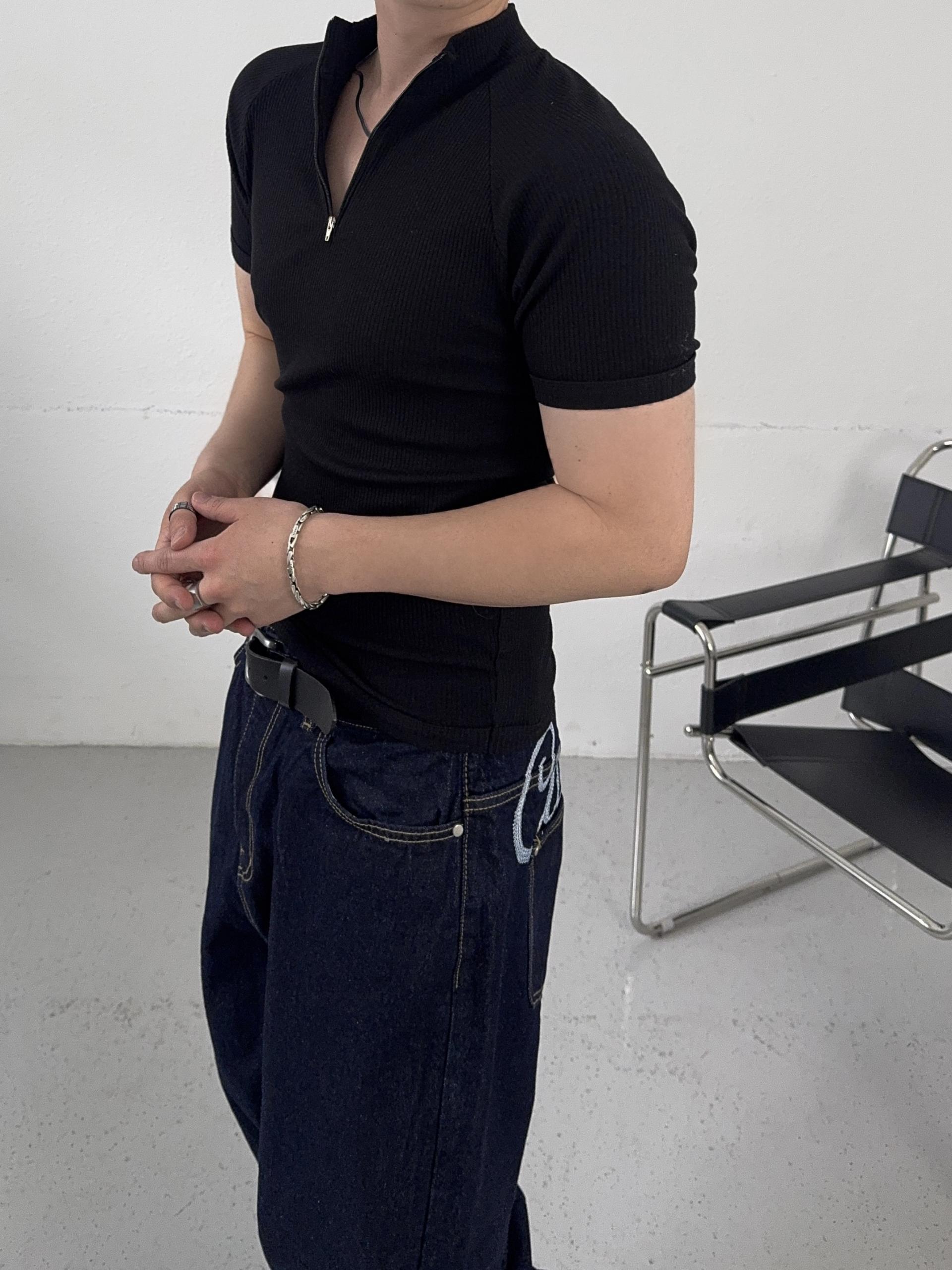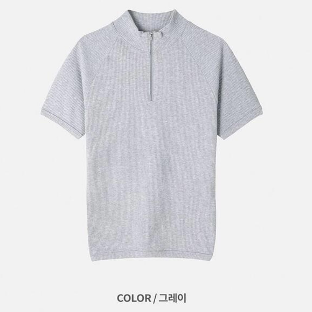 -신축성이 좋은 골지 소재로 제작된 슬림한 실루엣의 반집업 티셔츠
