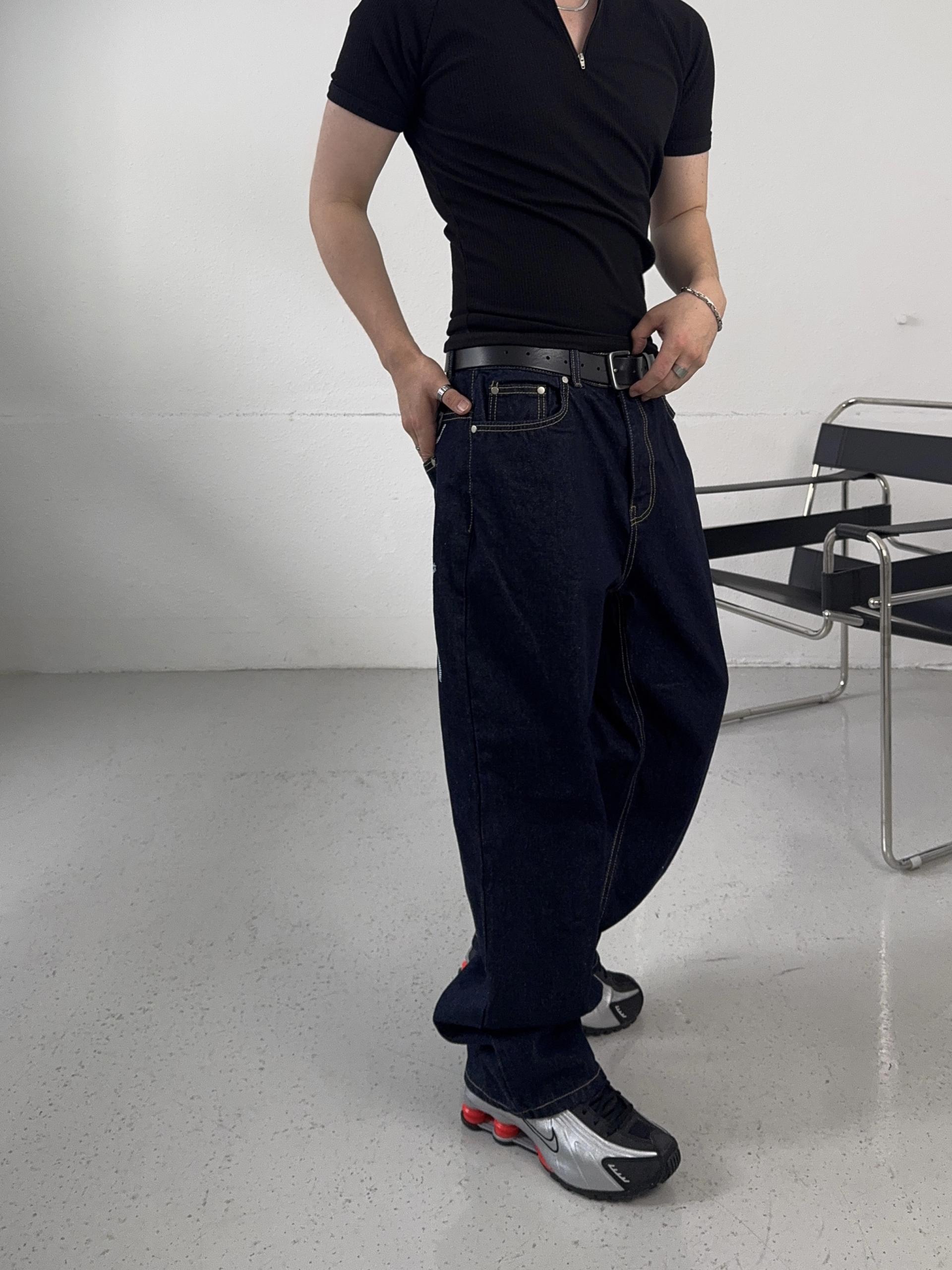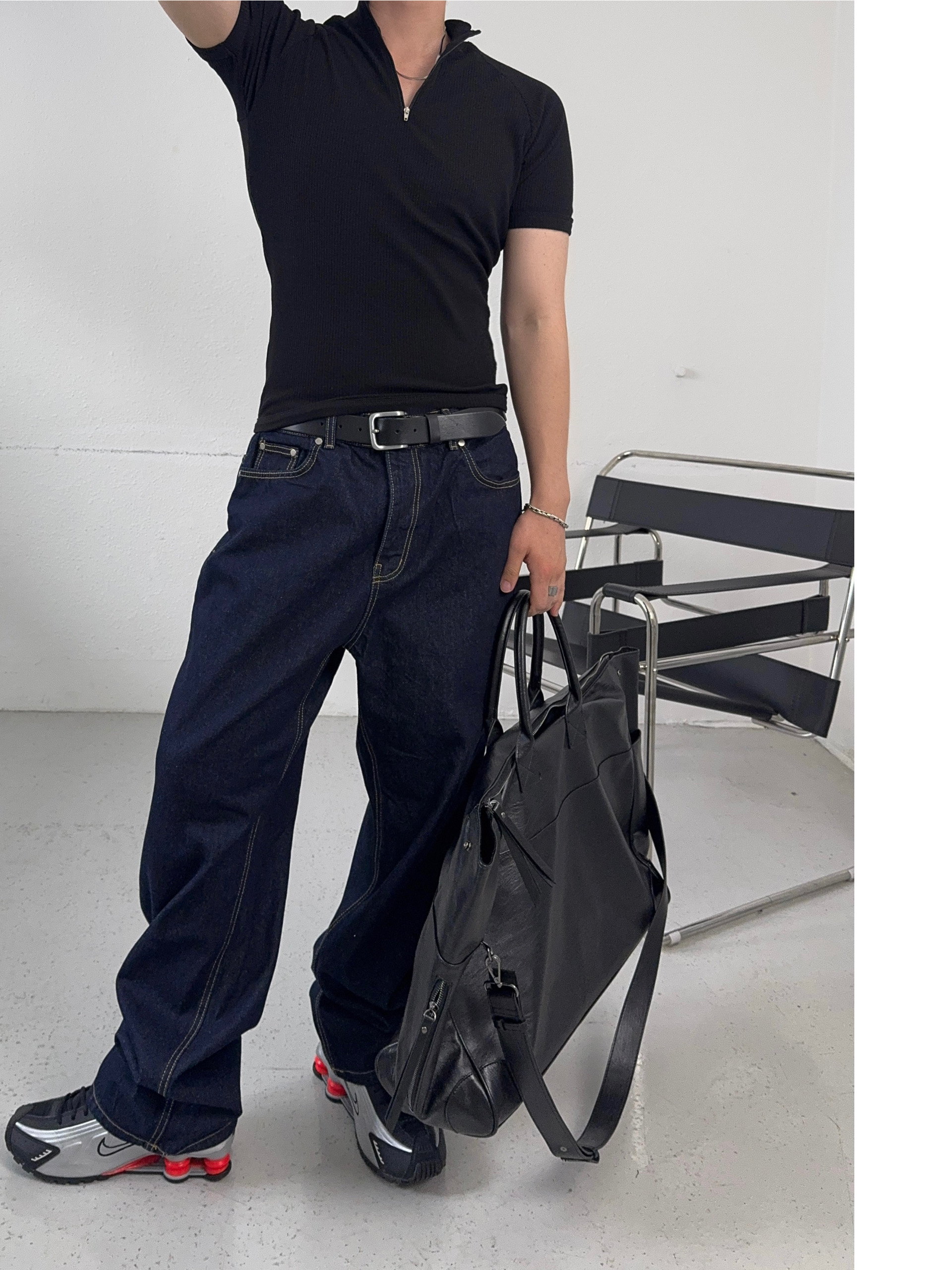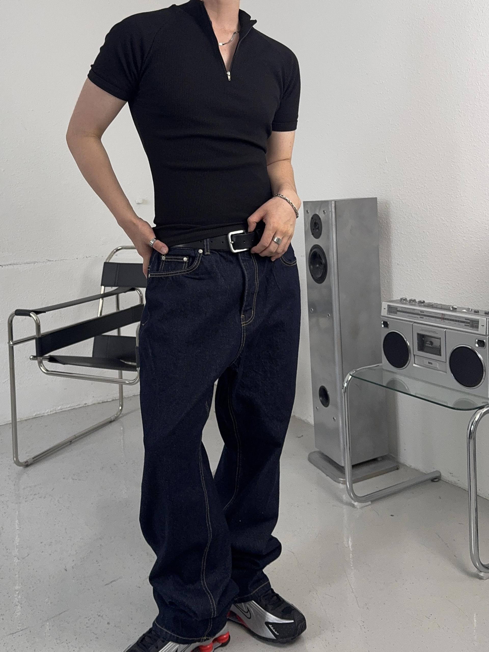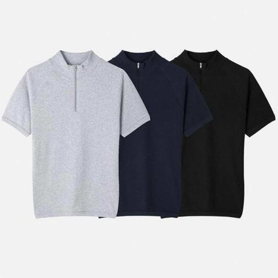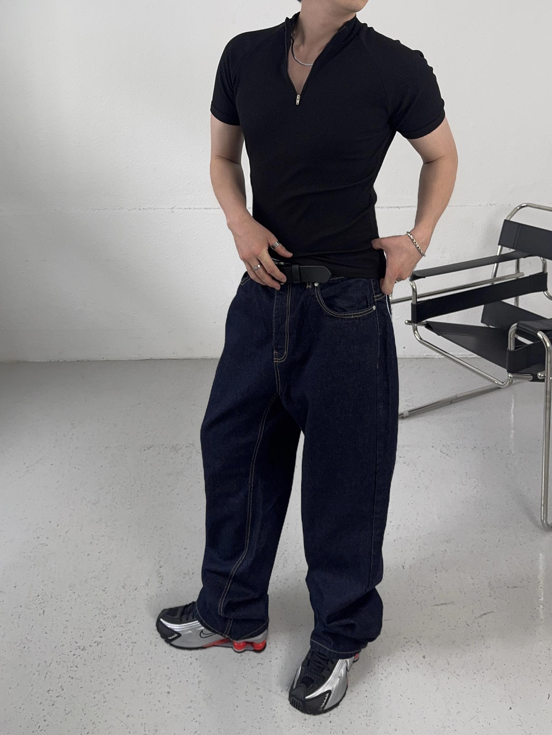 -신축성이 좋은 골지 소재로 제작된 슬림한 실루엣의 반집업 티셔츠