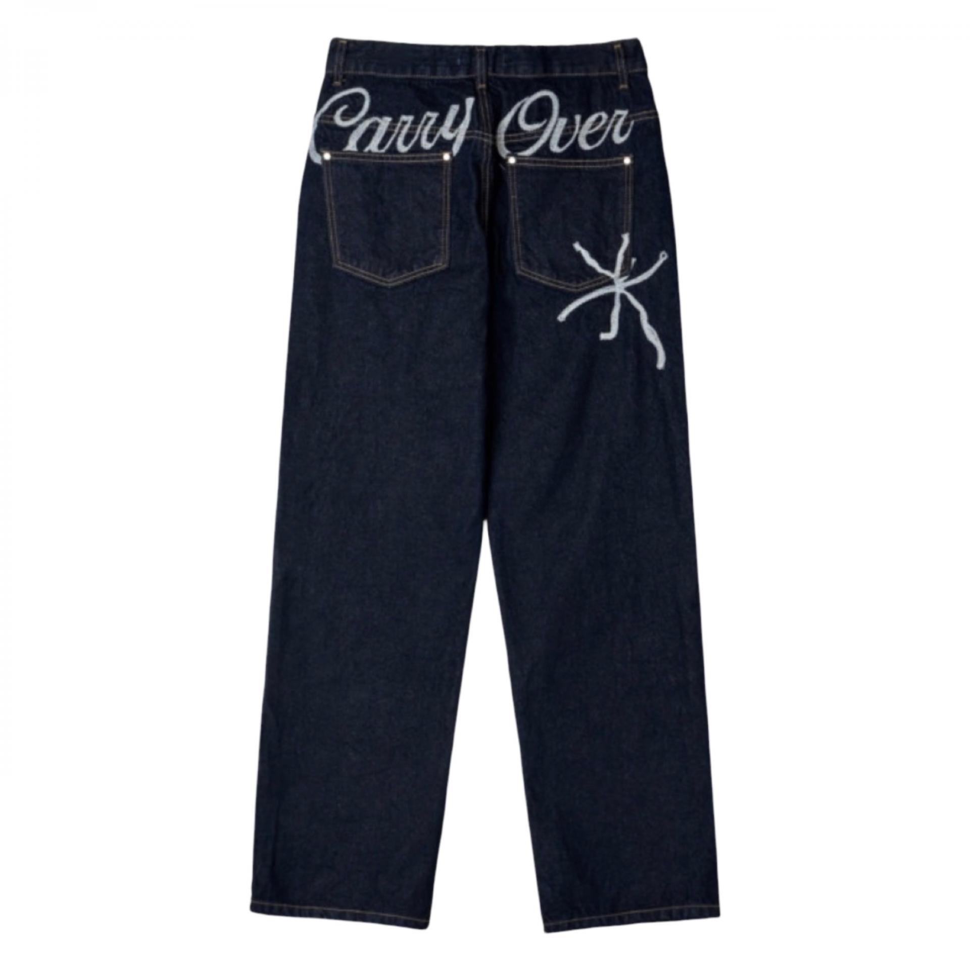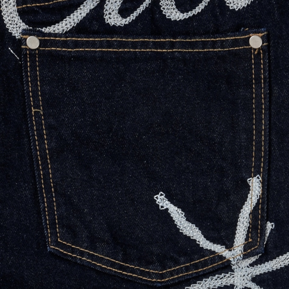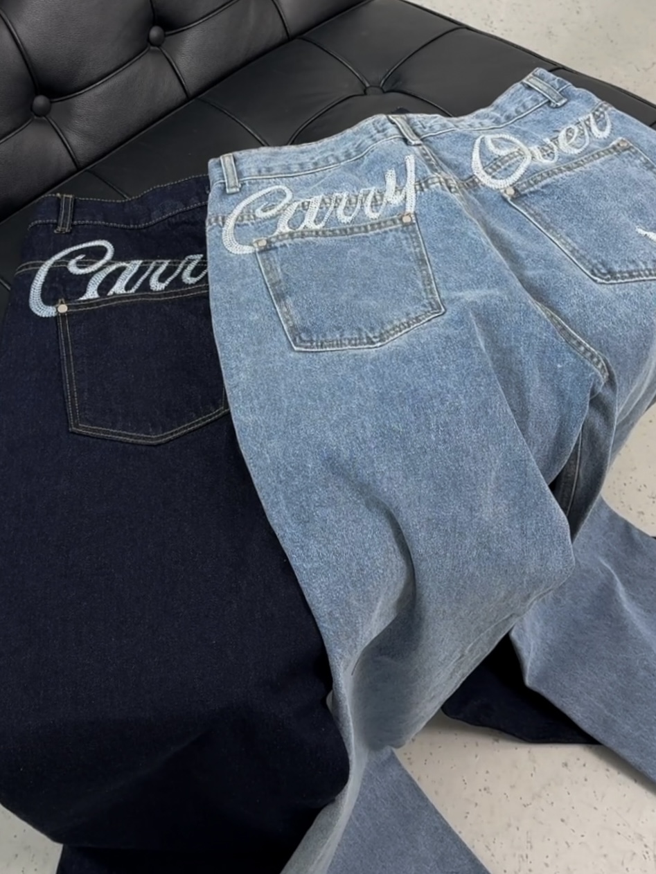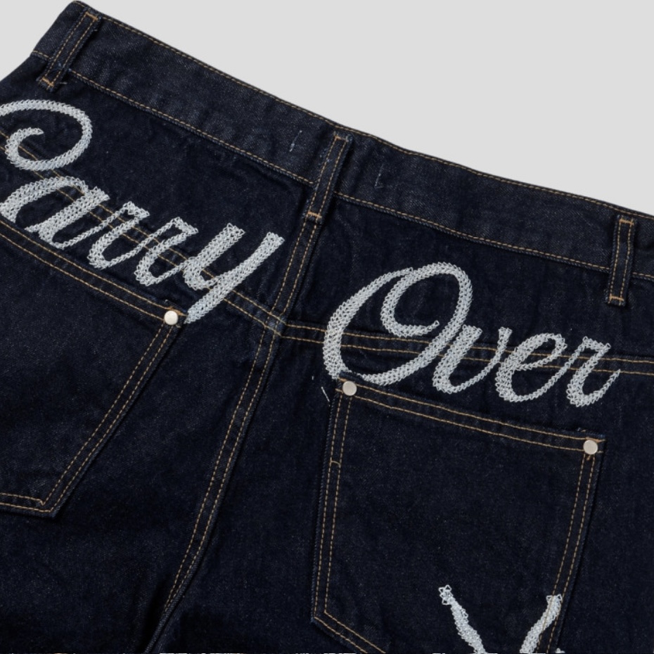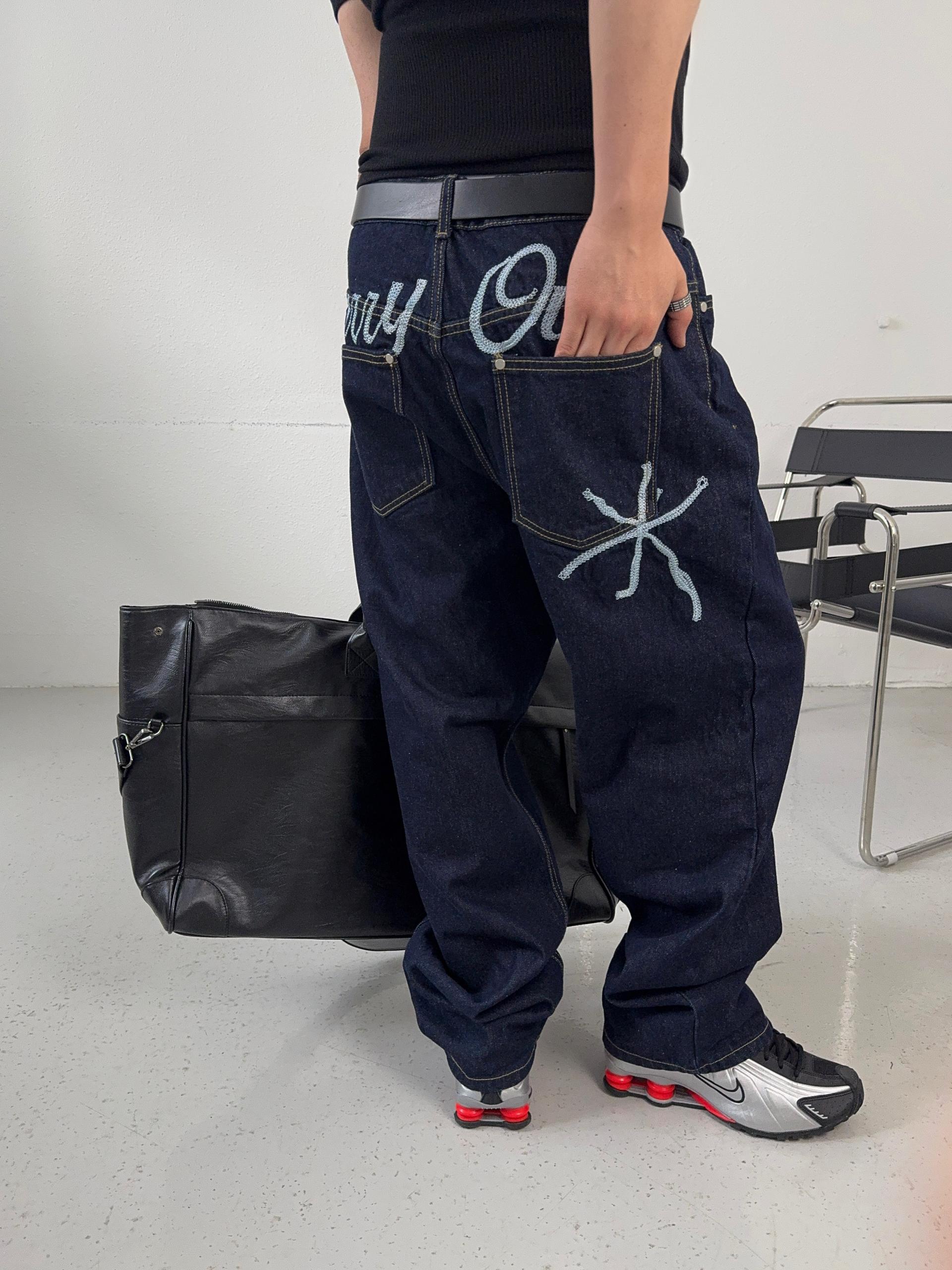 -탄탄한 데님 원단으로 제작된 와이드 팬츠