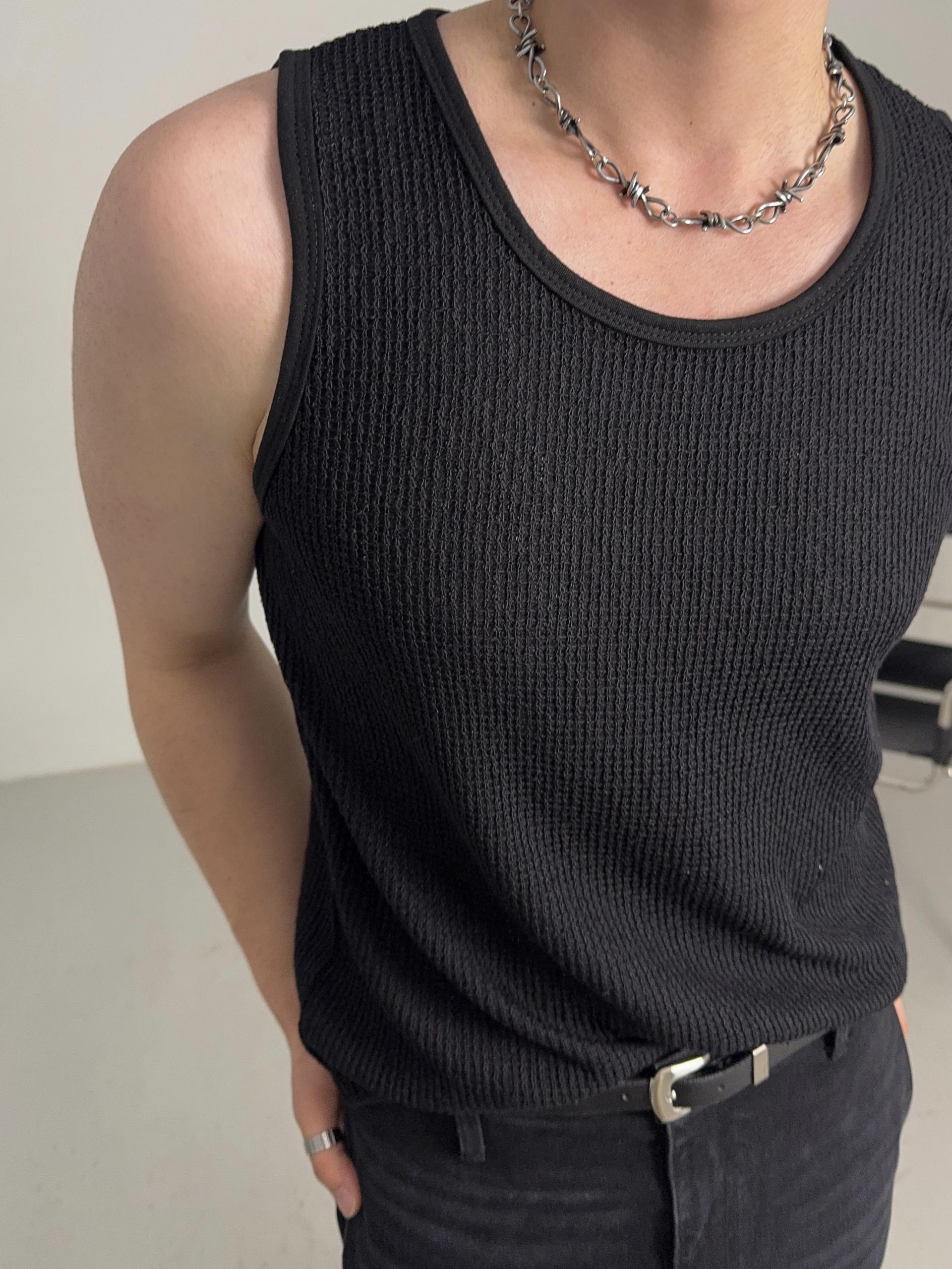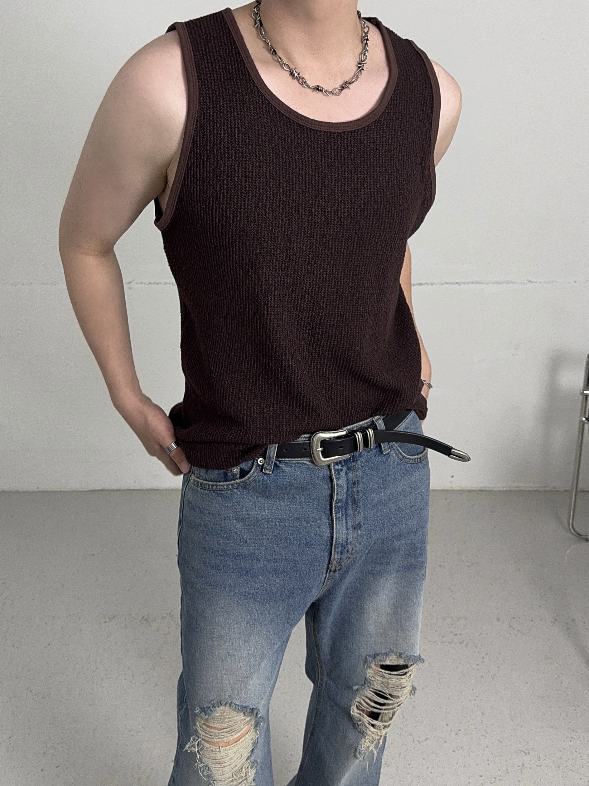 -비침이 없는 니트 소재로 제작된 슬리브리스