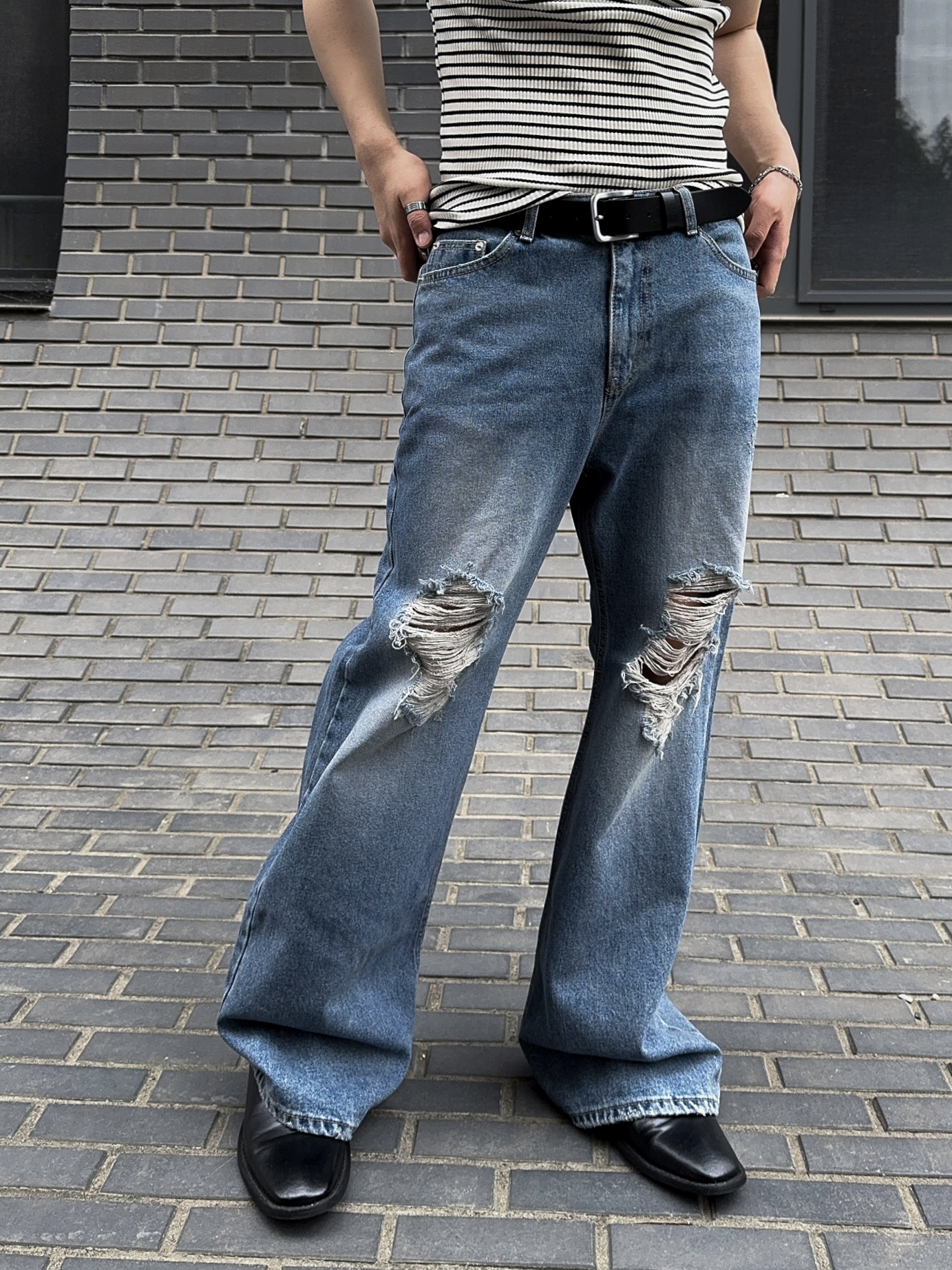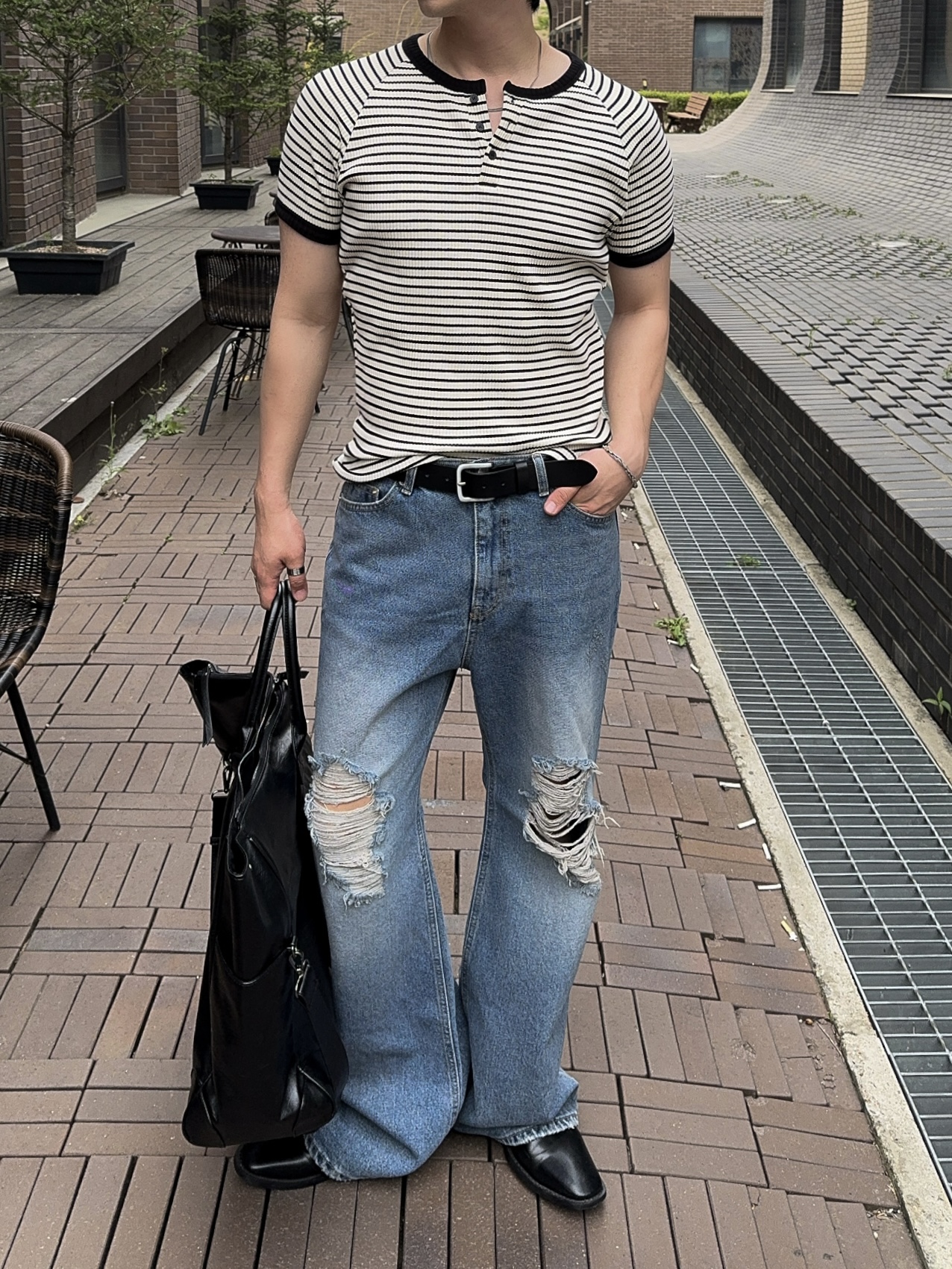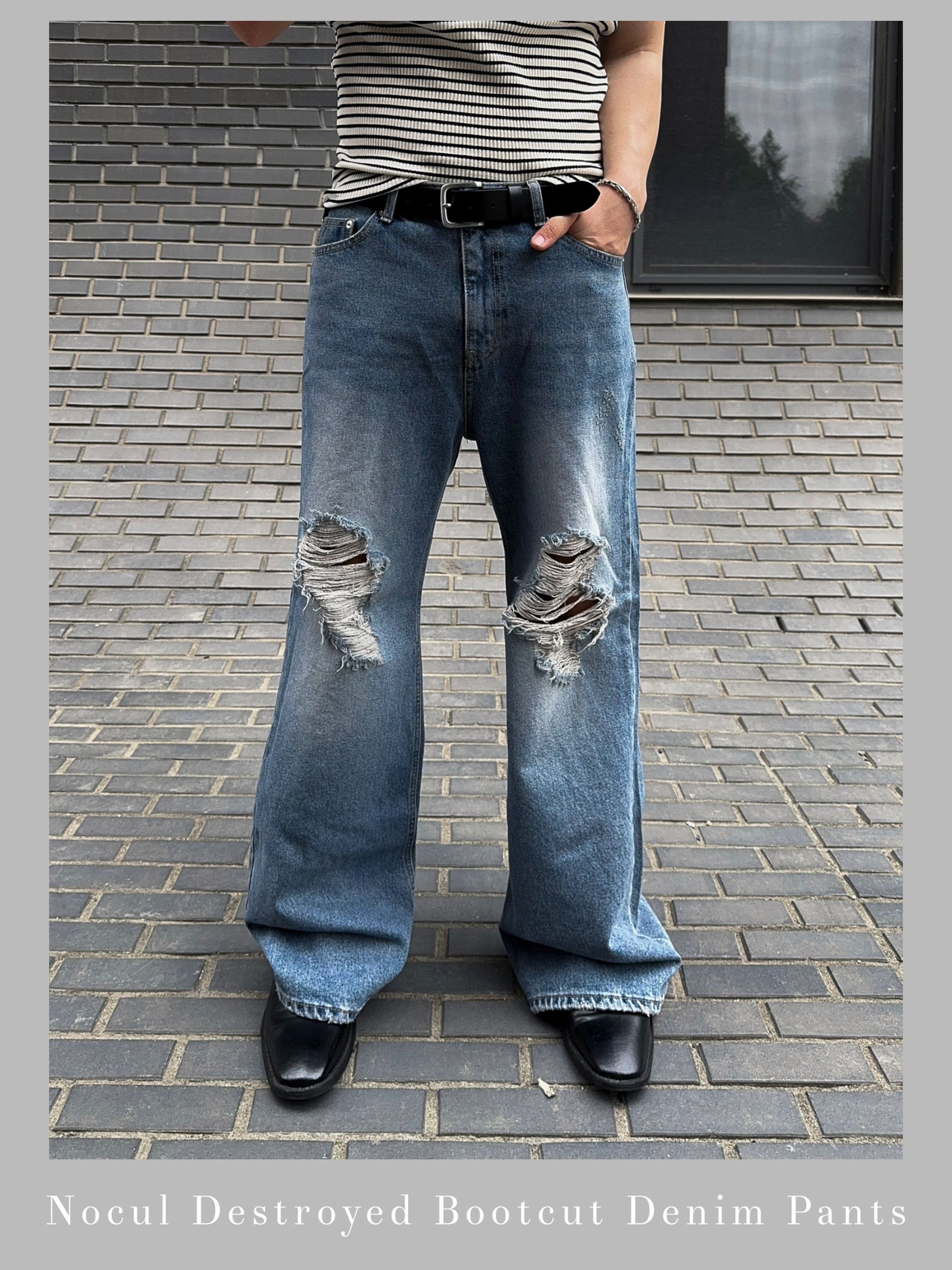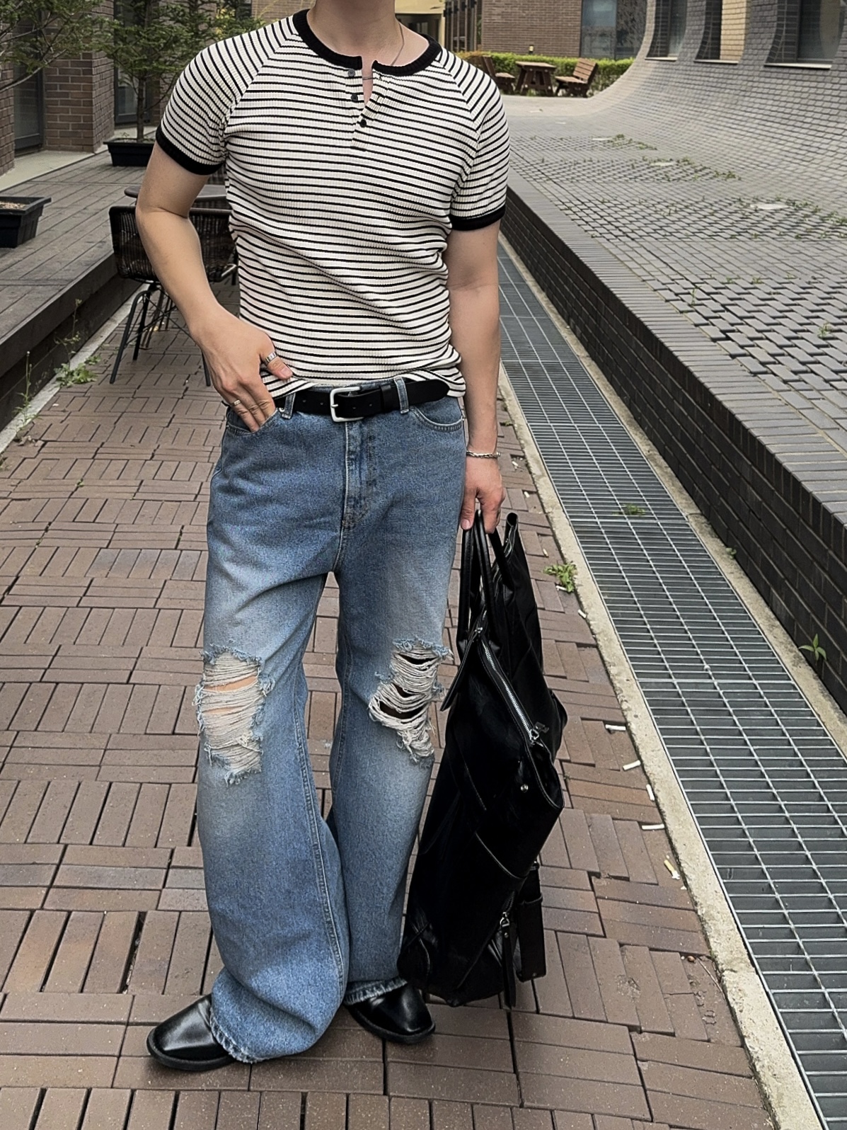 -무릎 , 밑단 디스트로이드 디자인으로 멋스러운 아웃핏