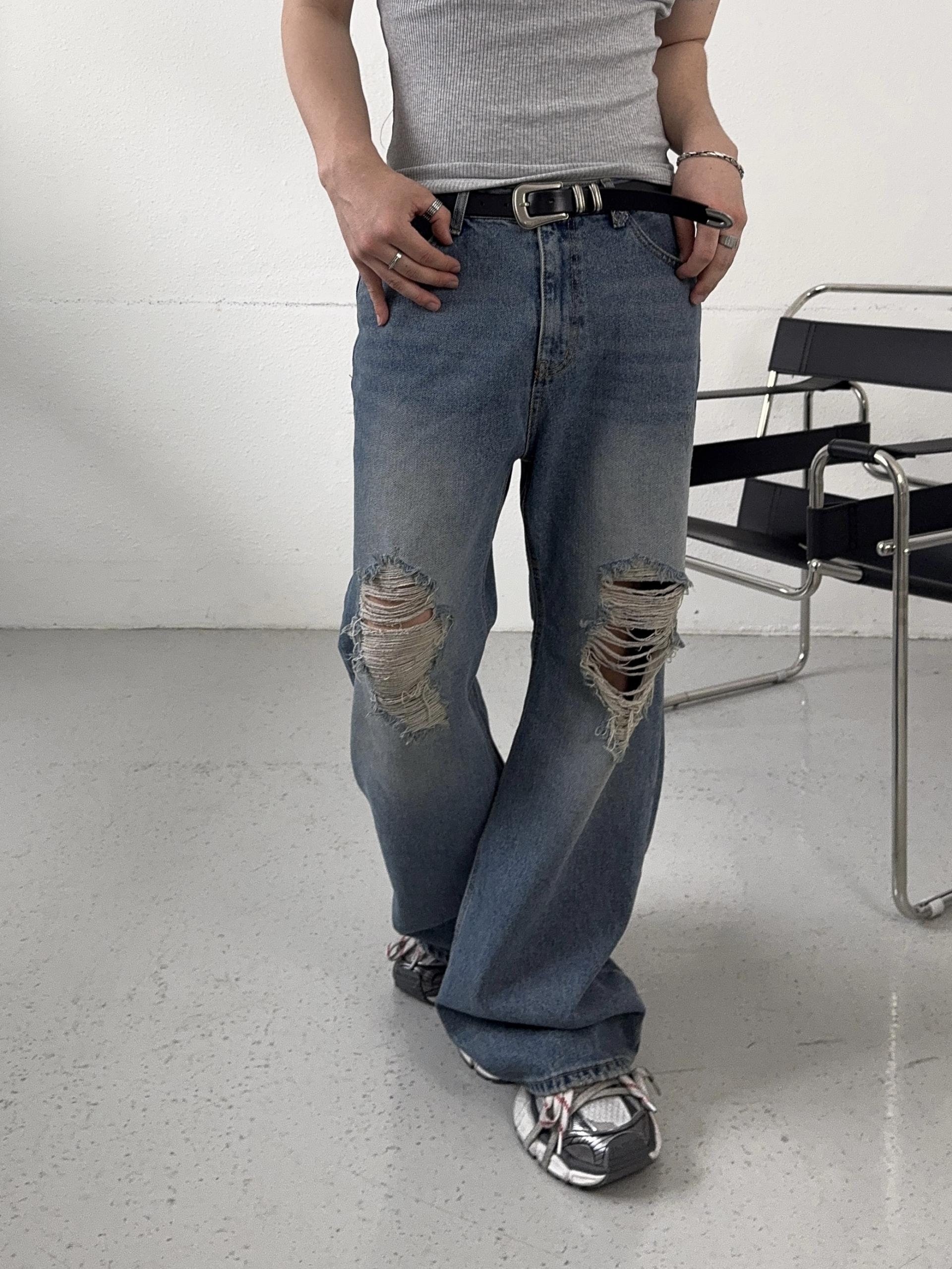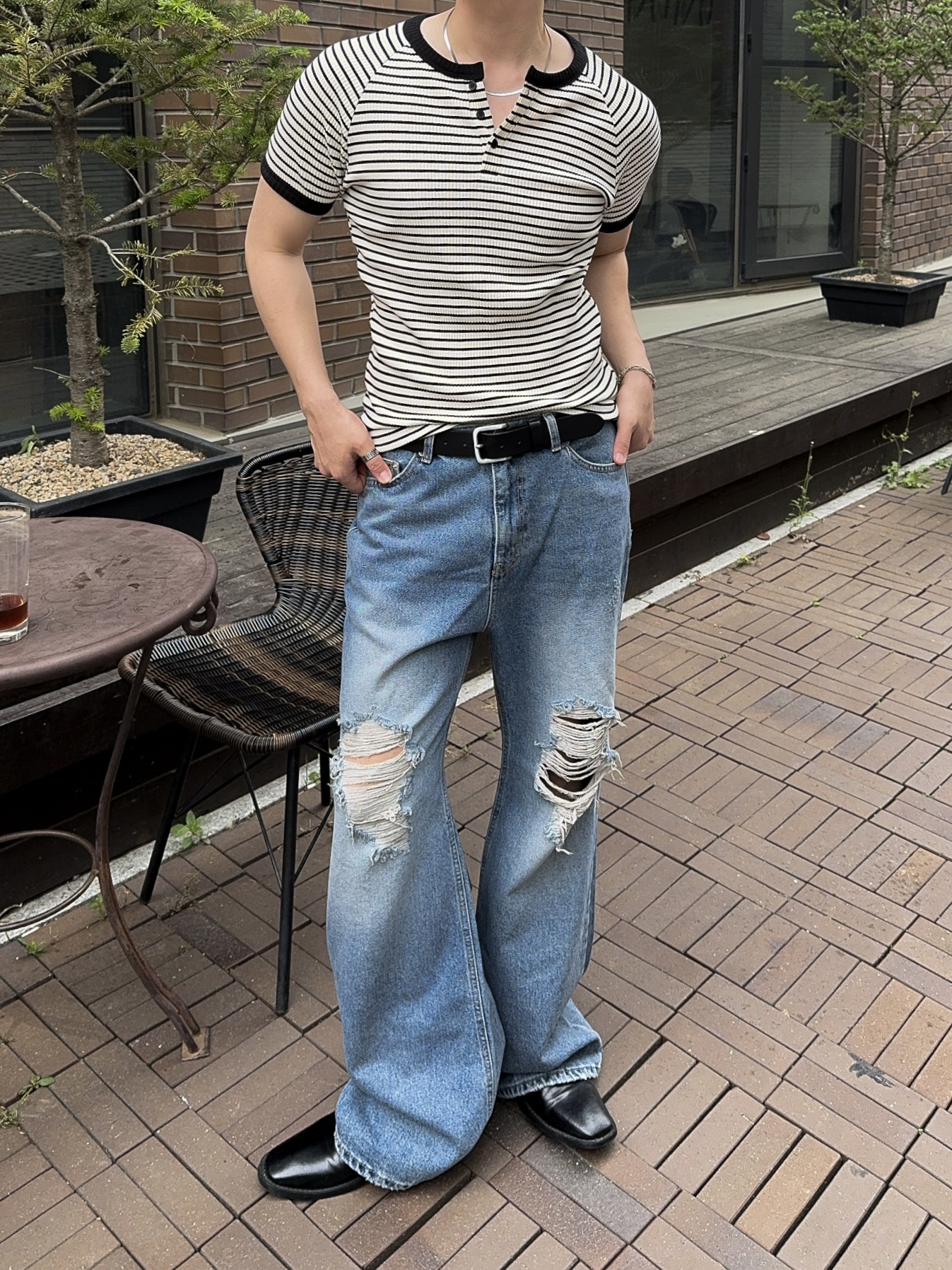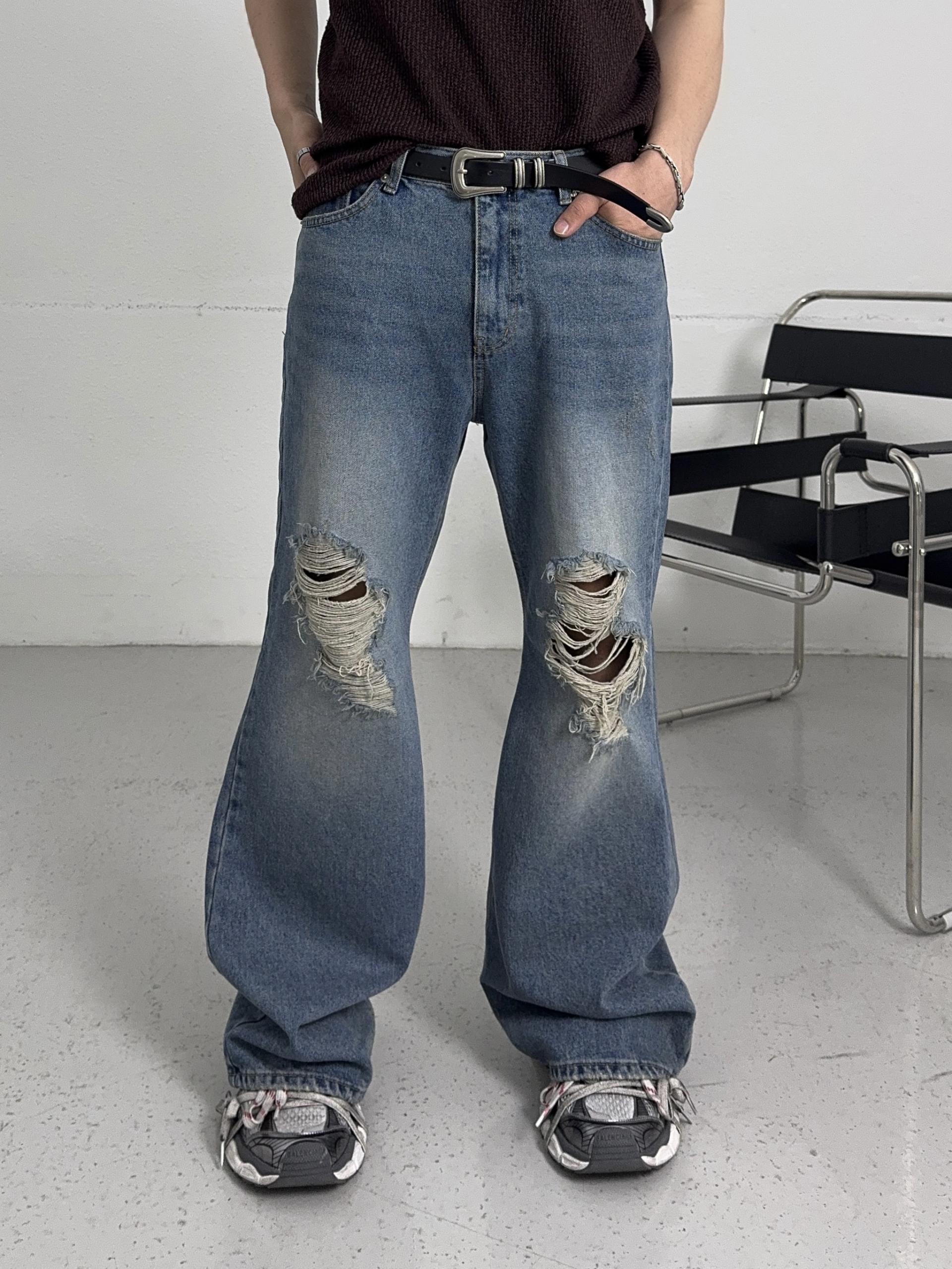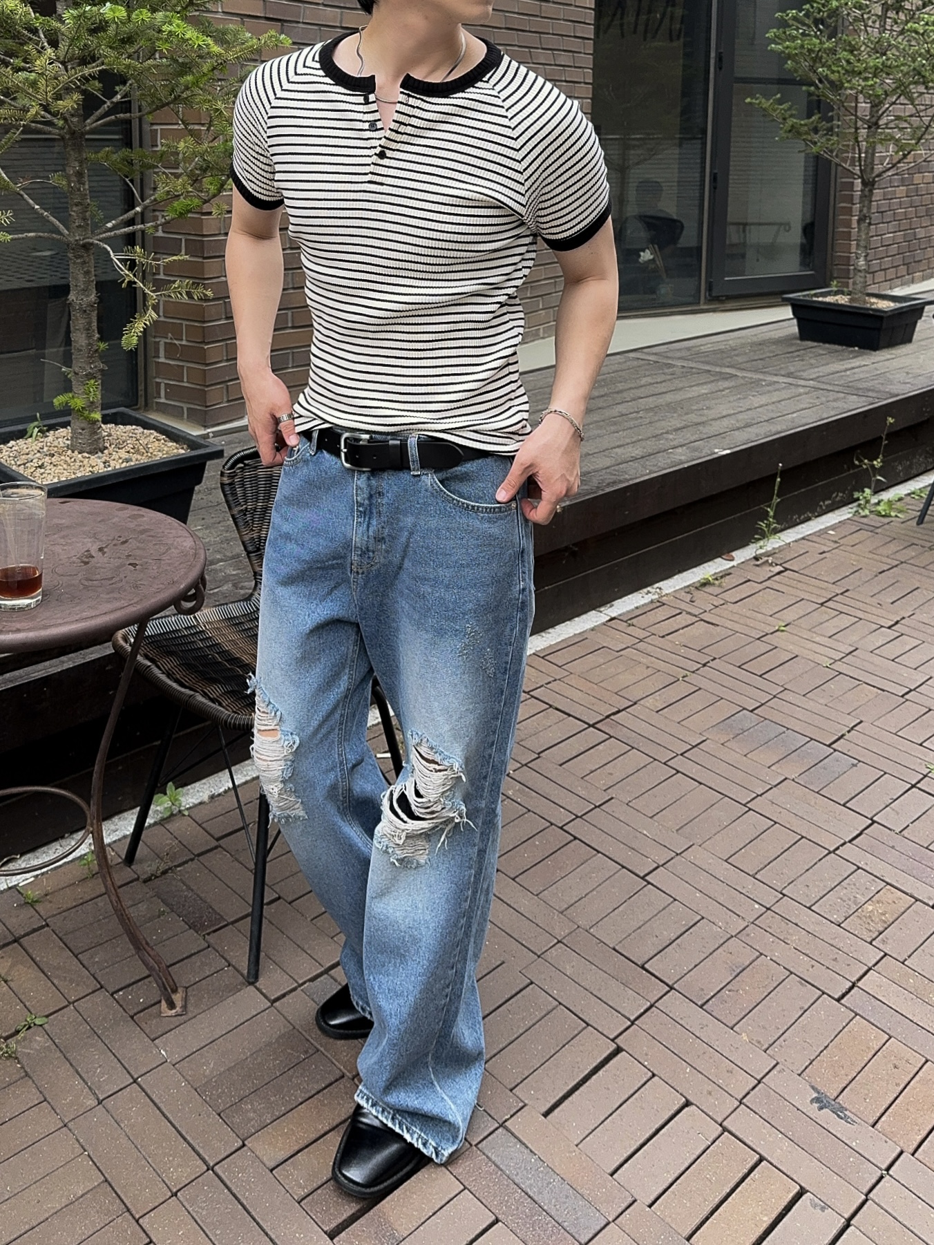 -무릎 , 밑단 디스트로이드 디자인으로 멋스러운 아웃핏