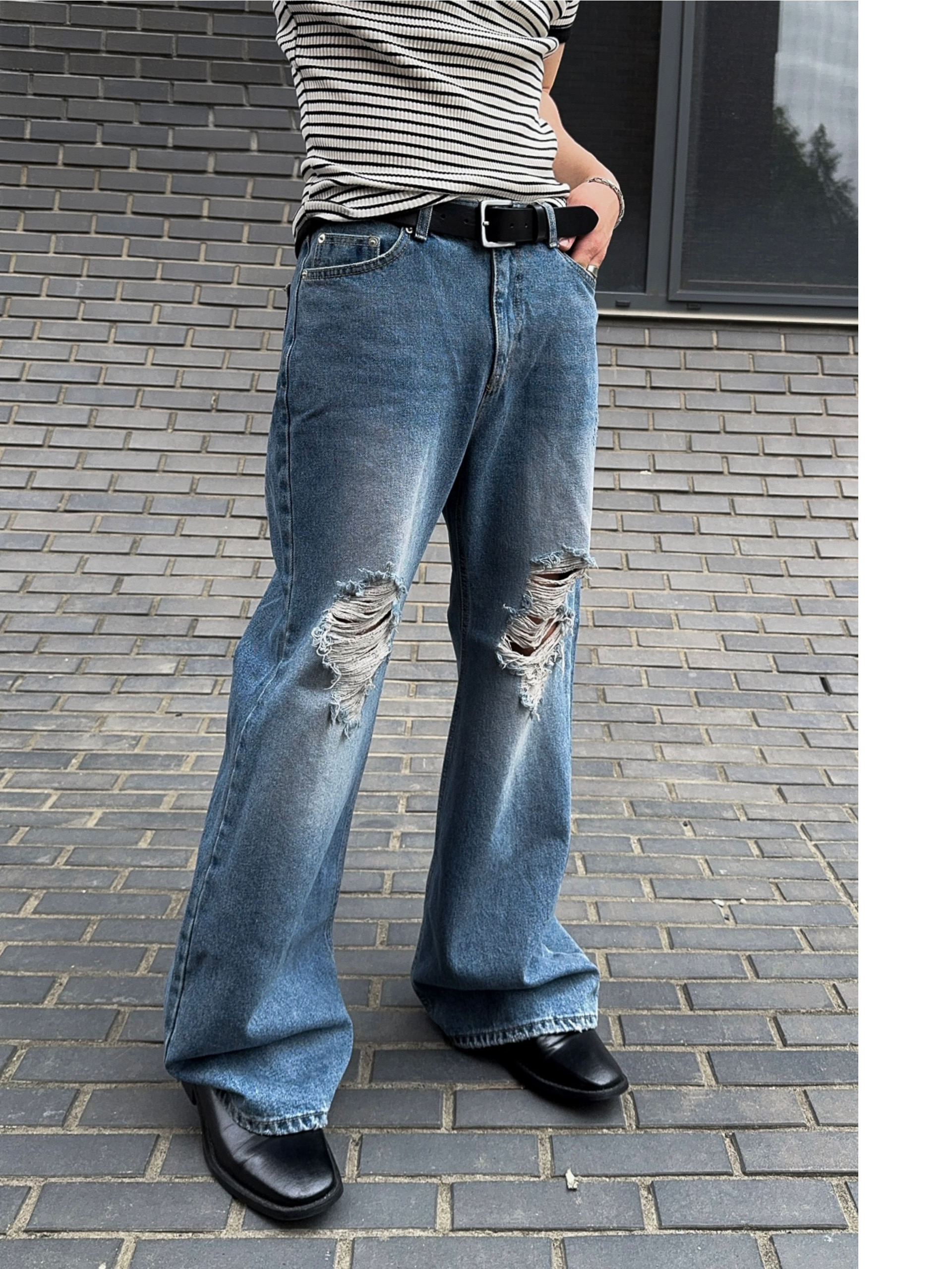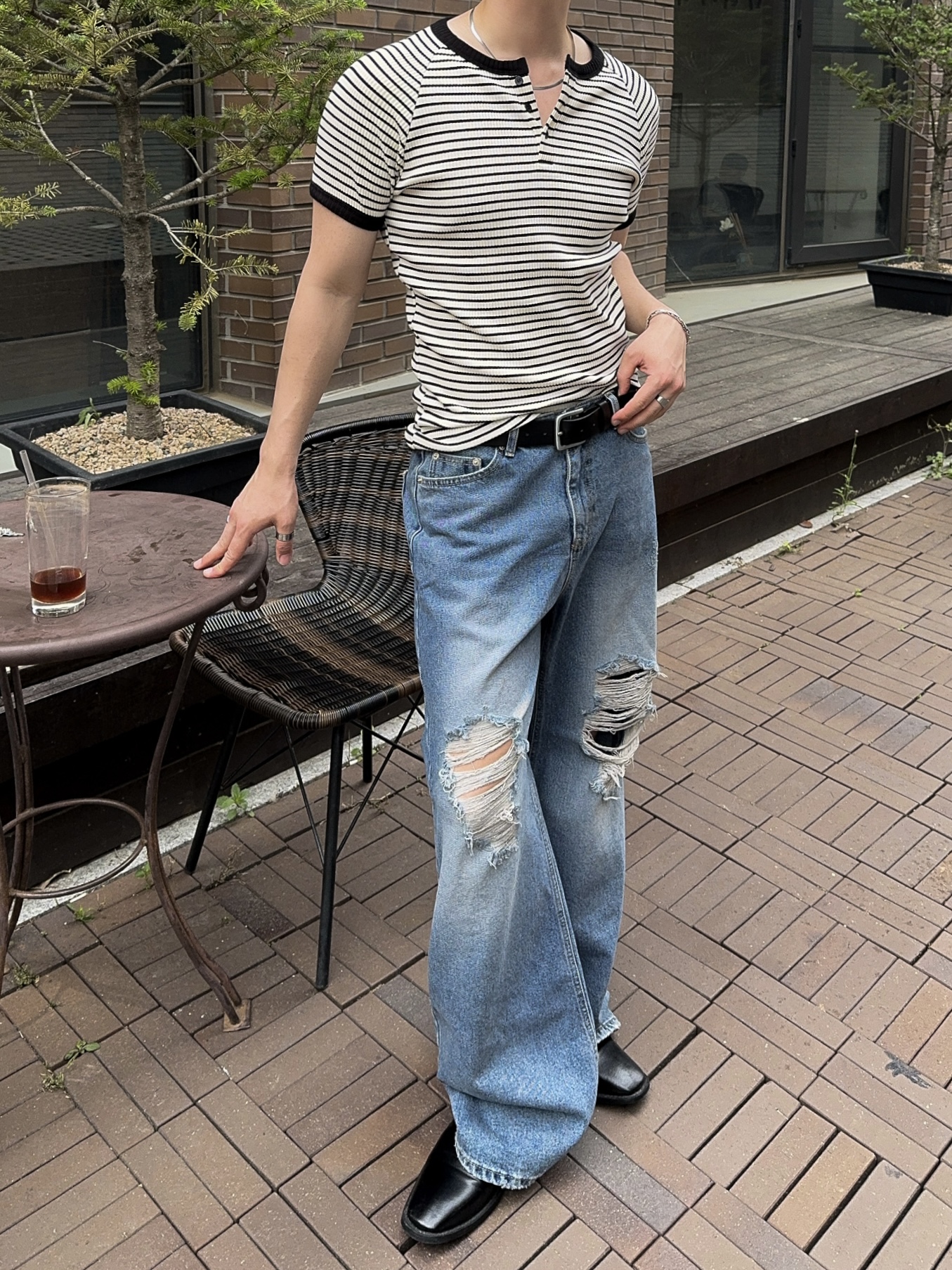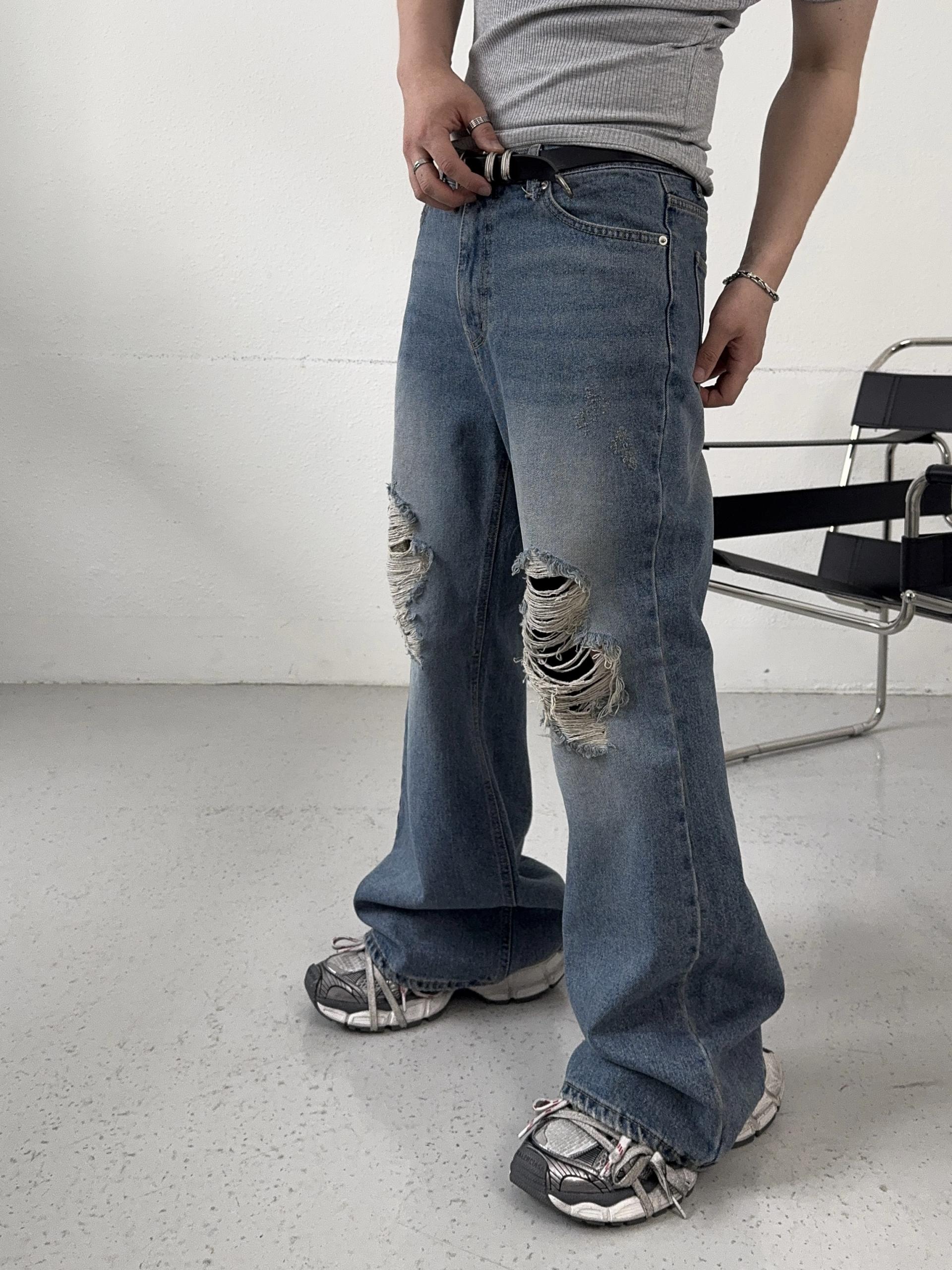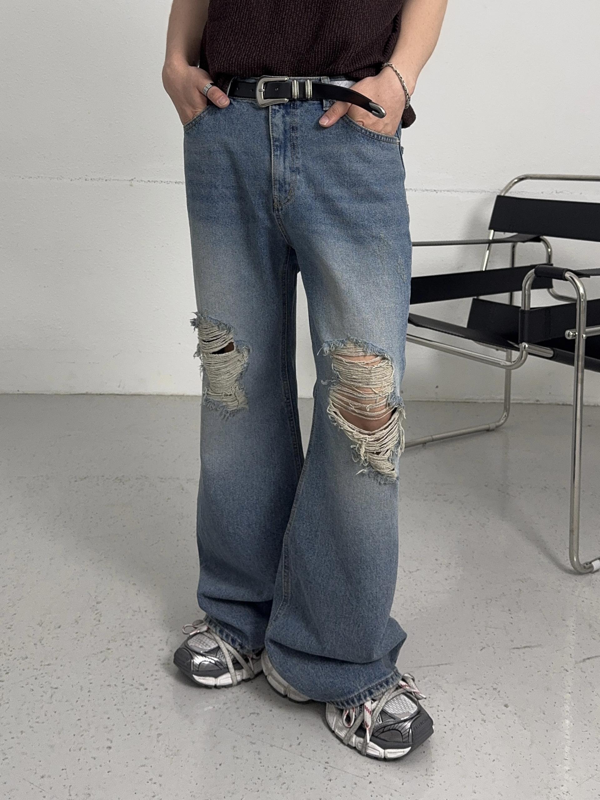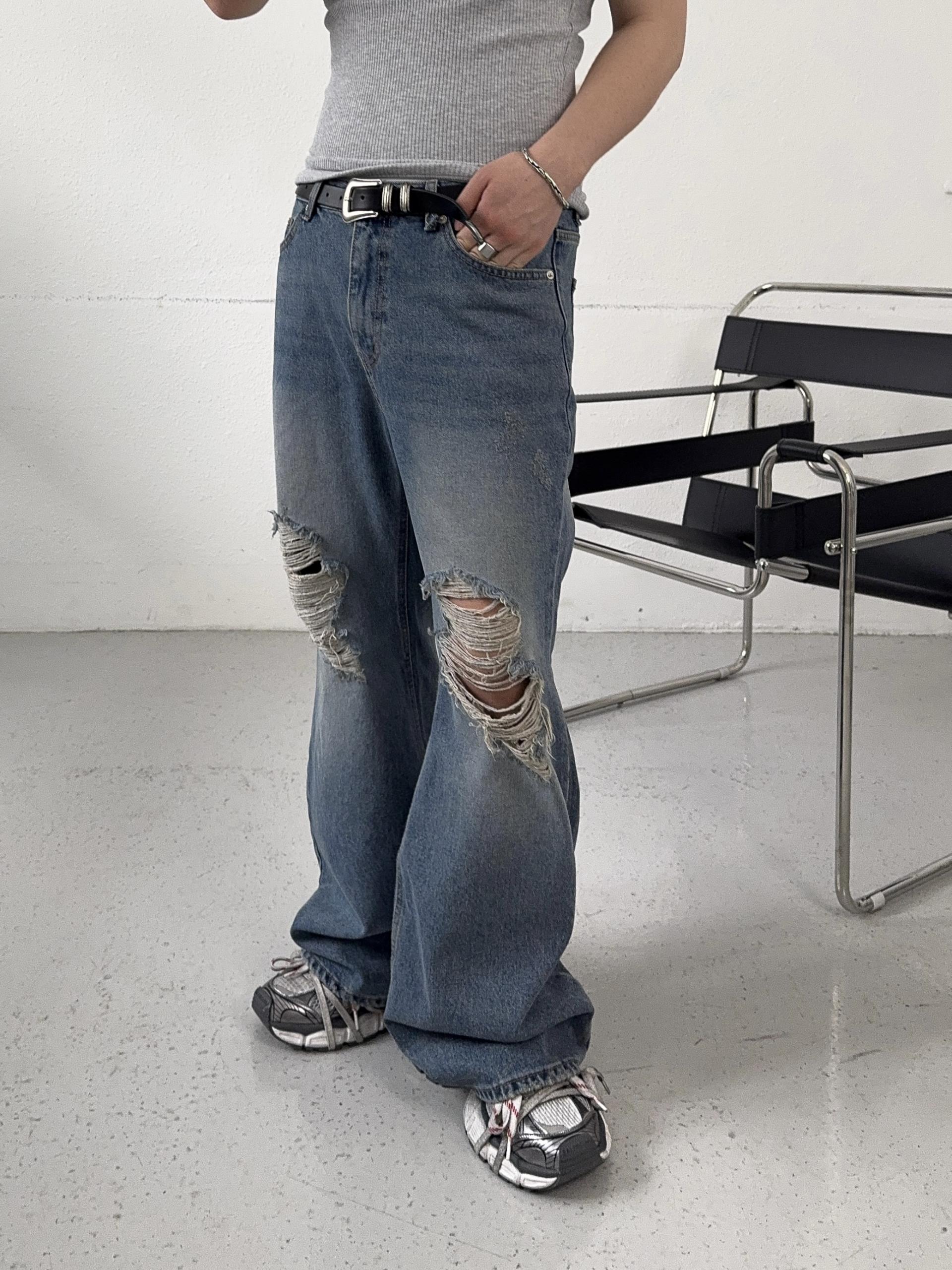 -무릎 , 밑단 디스트로이드 디자인으로 멋스러운 아웃핏