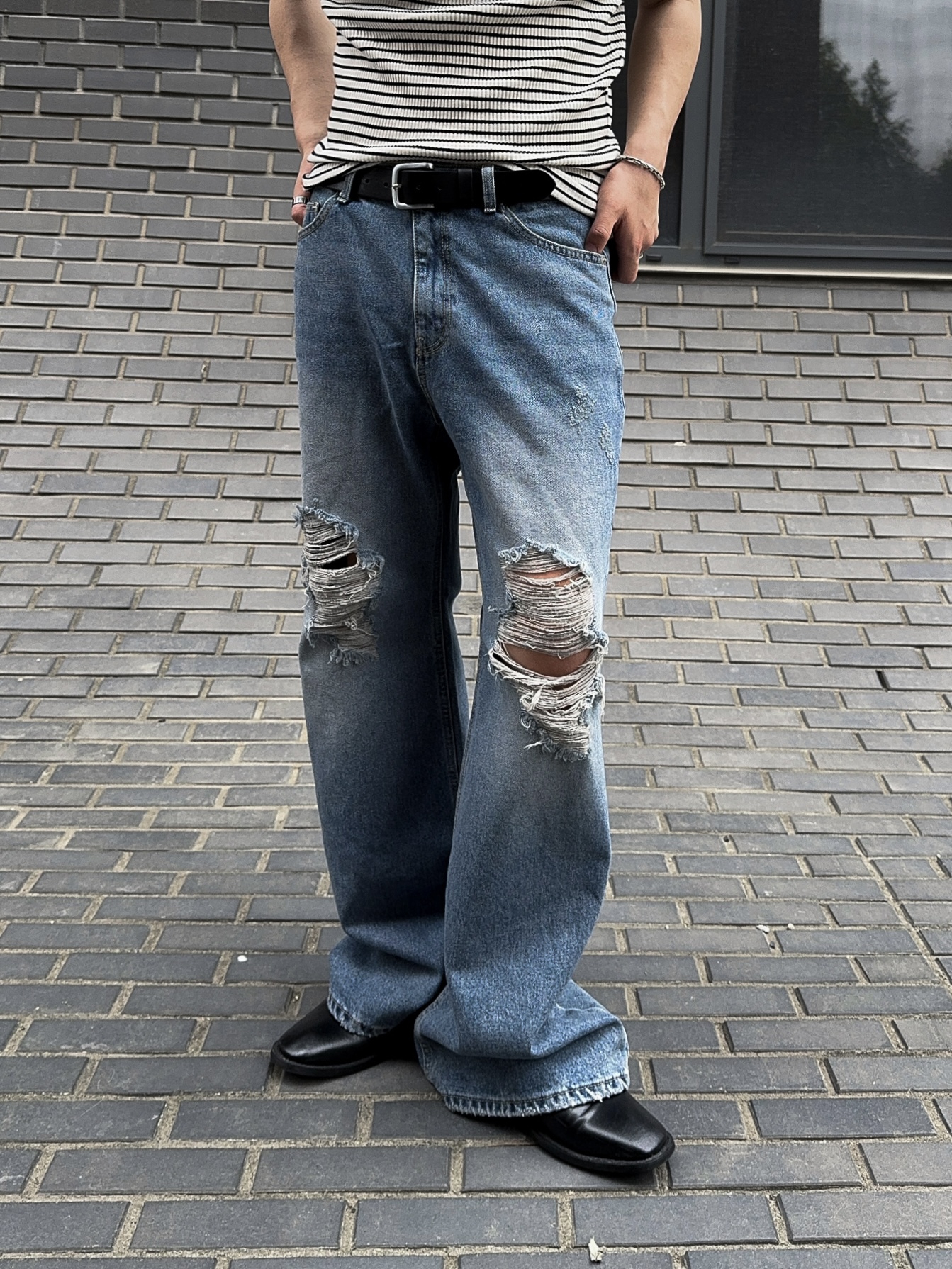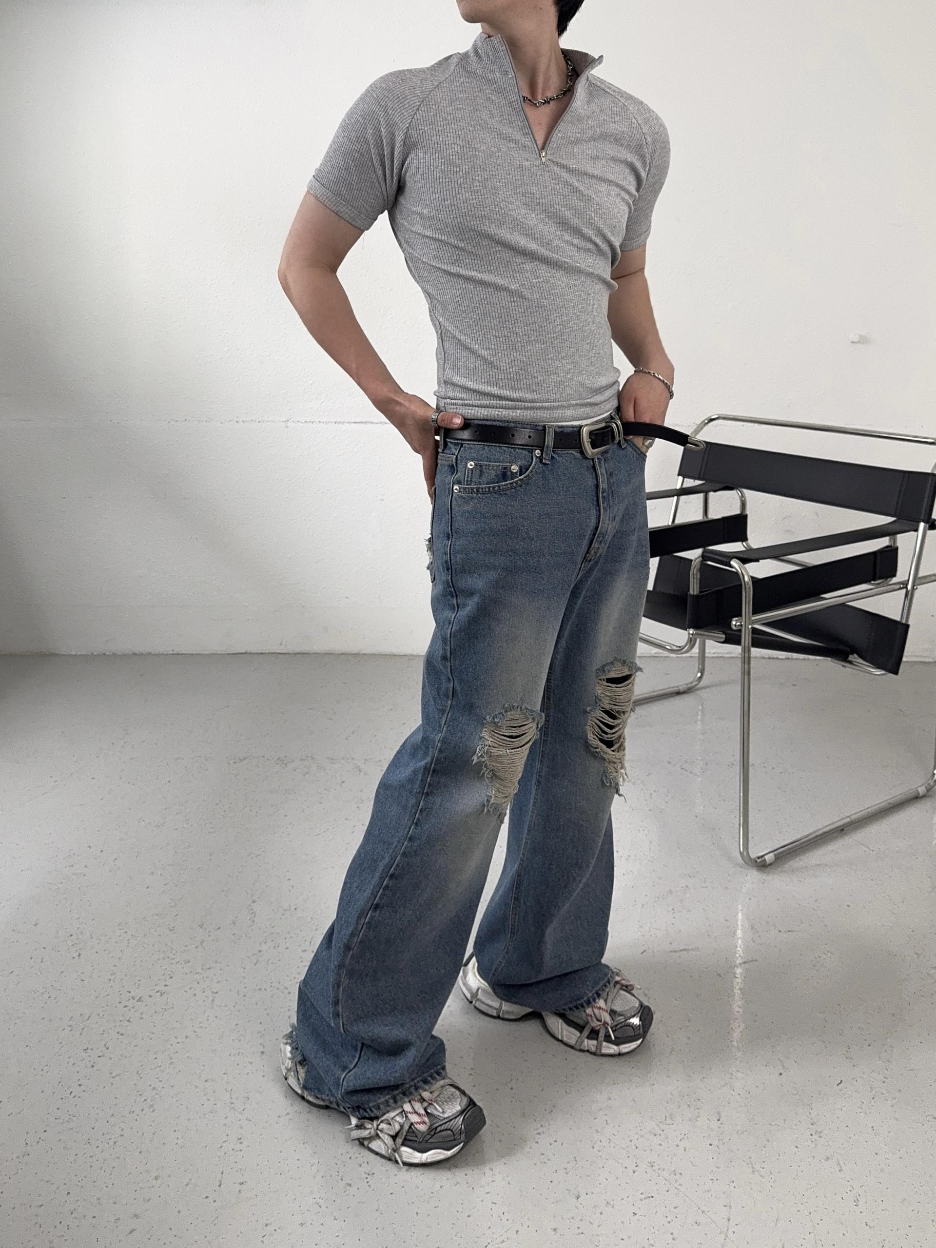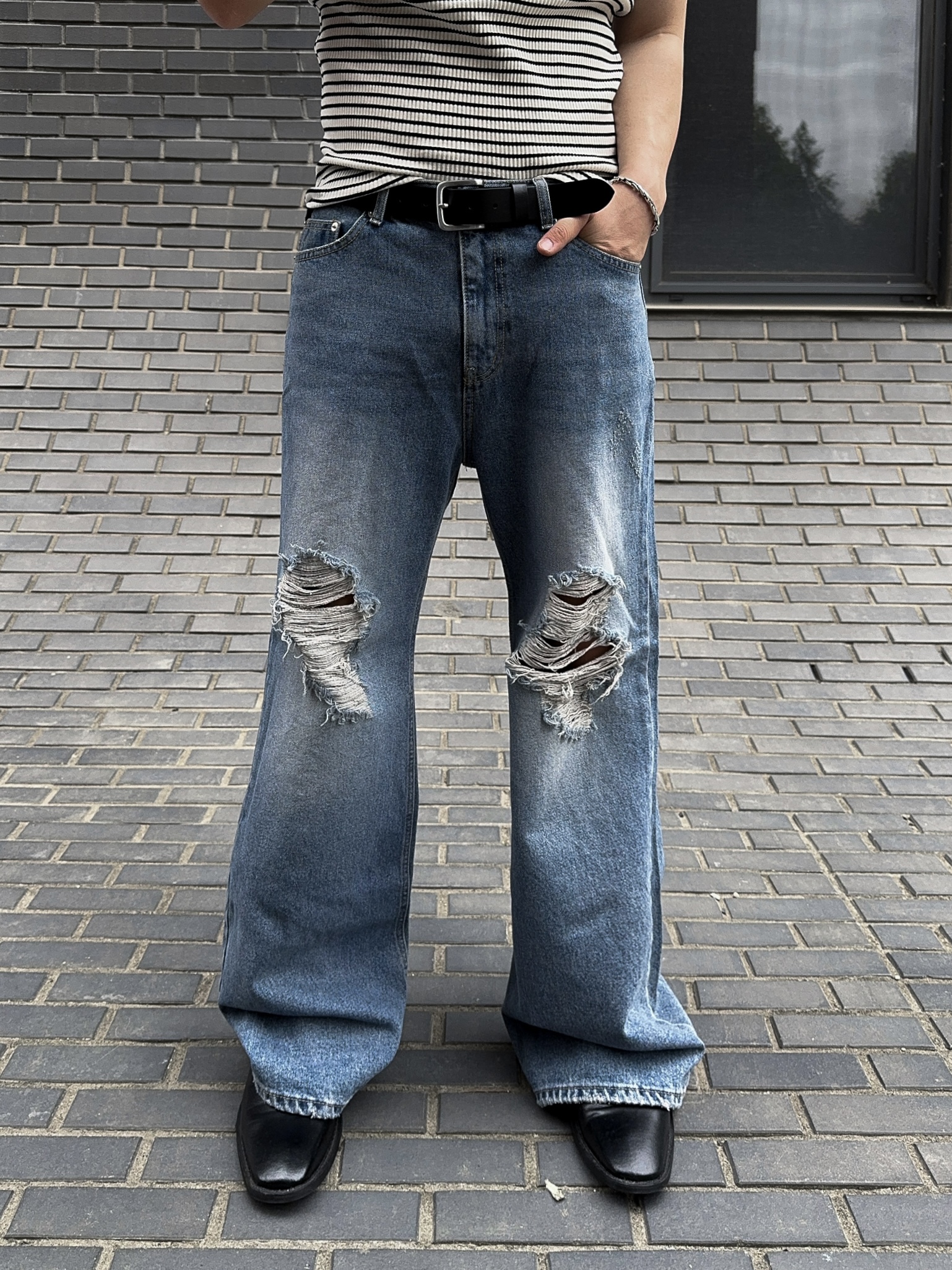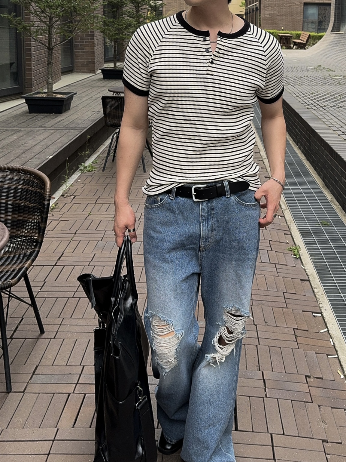 -무릎 , 밑단 디스트로이드 디자인으로 멋스러운 아웃핏