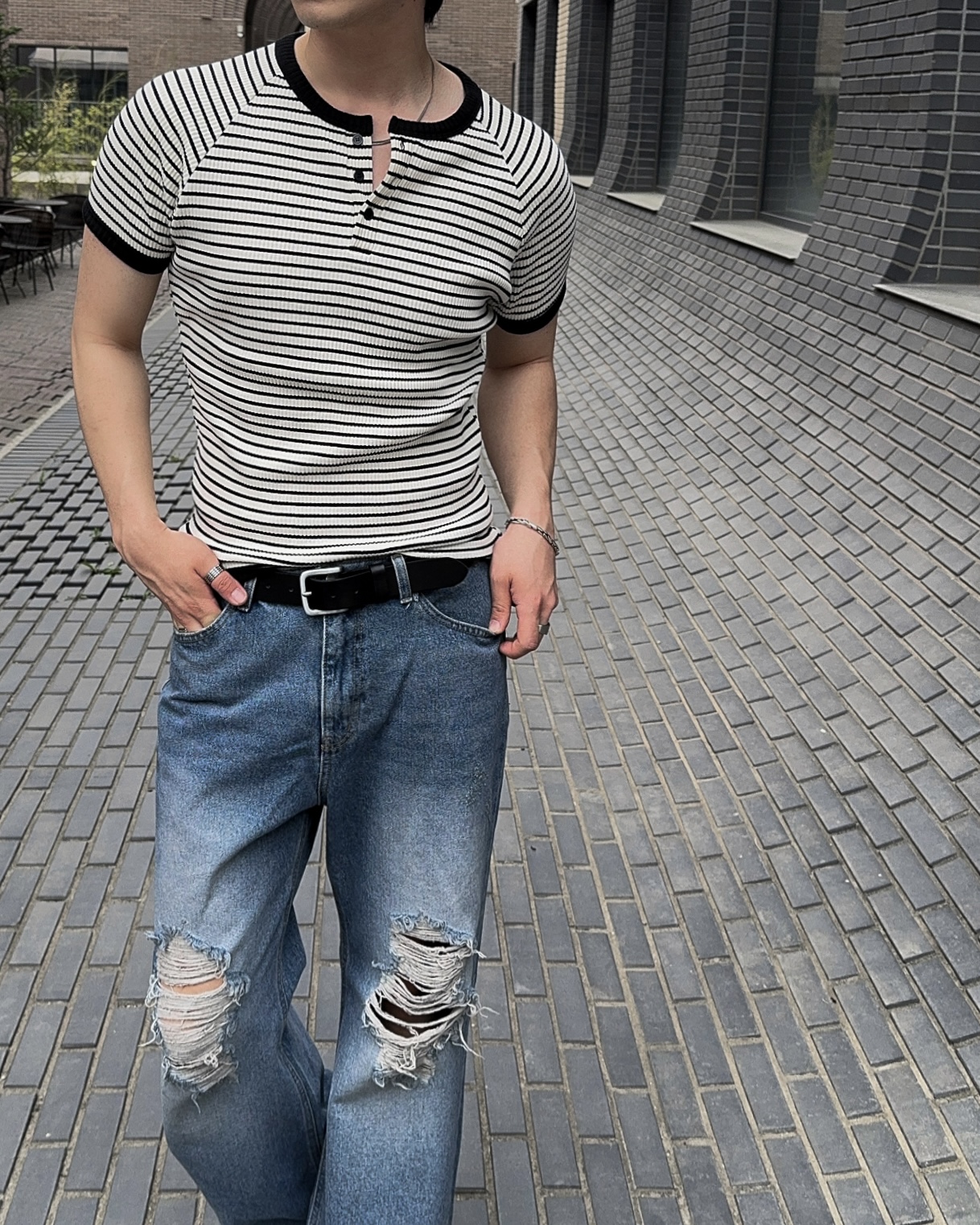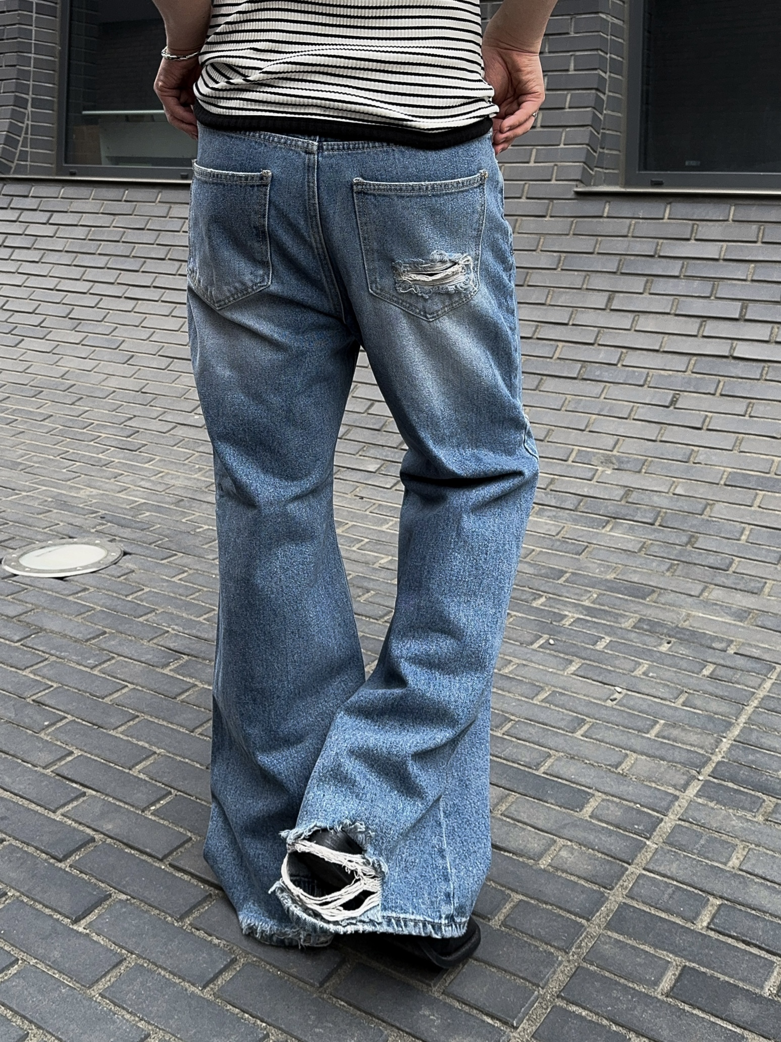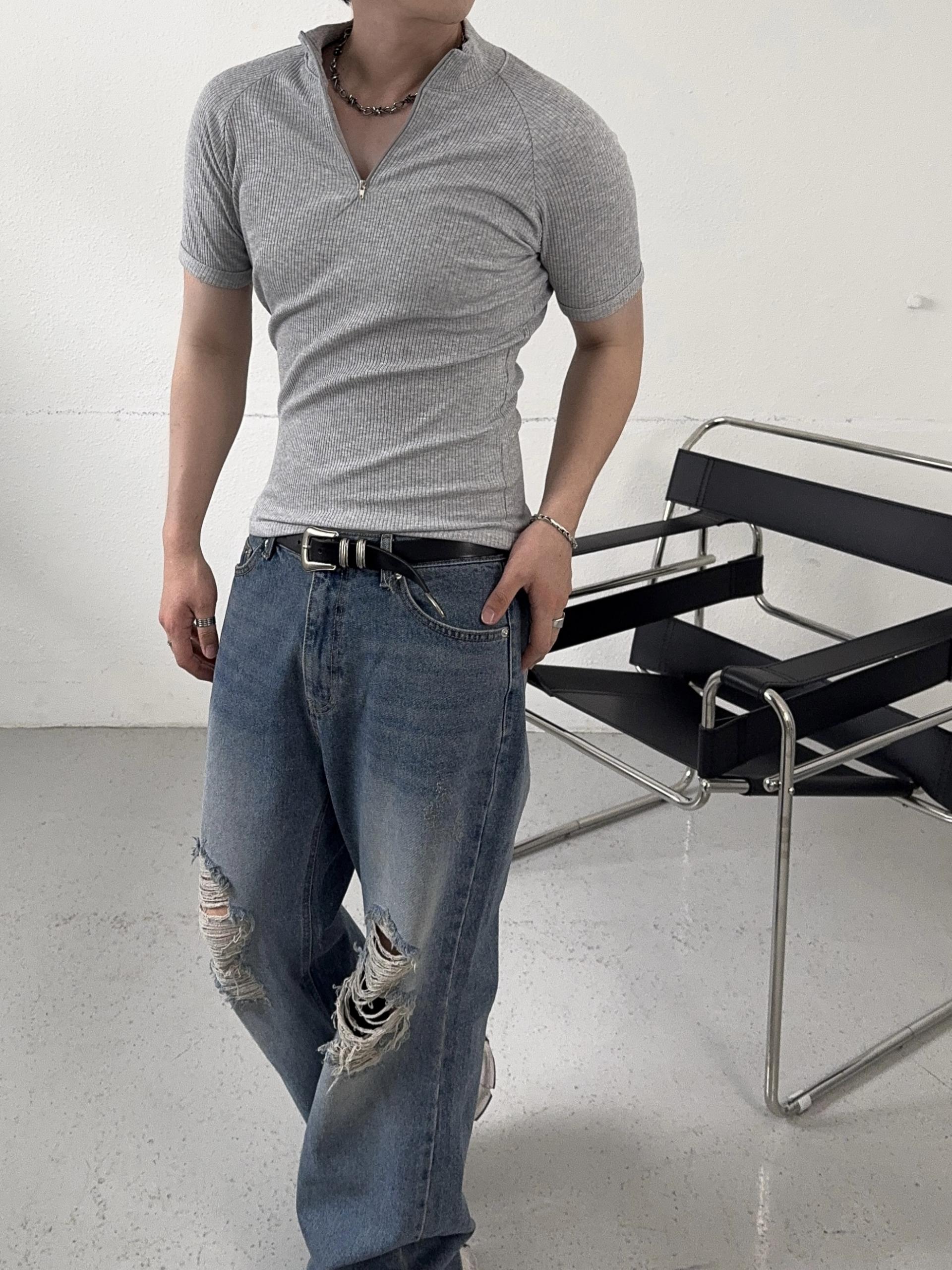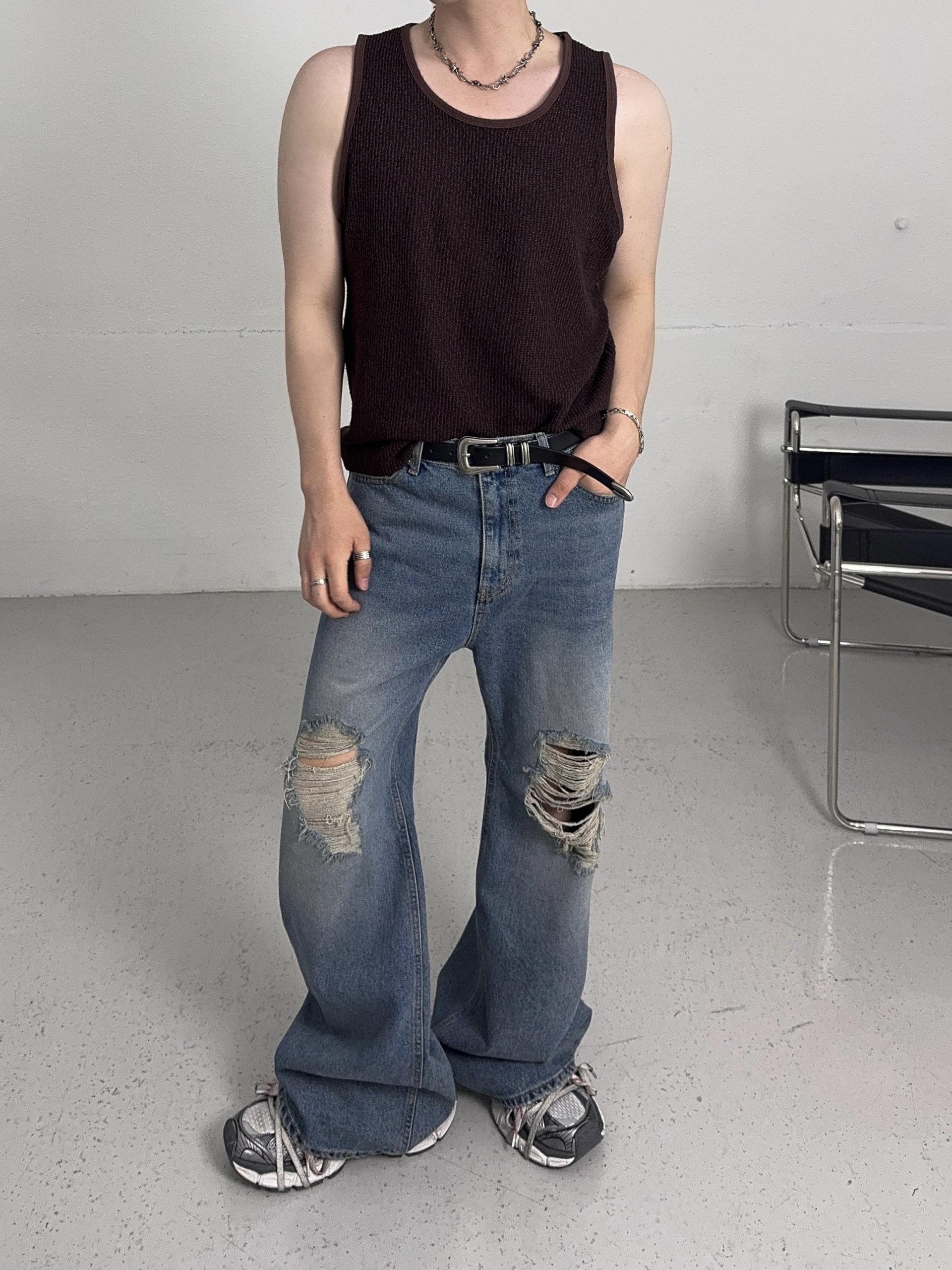 -무릎 , 밑단 디스트로이드 디자인으로 멋스러운 아웃핏